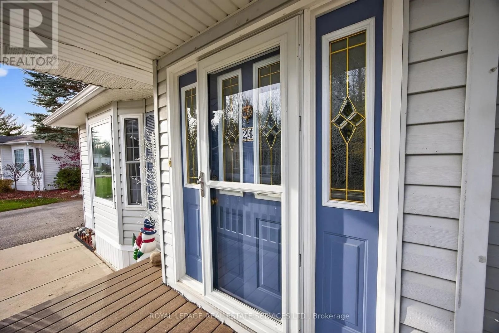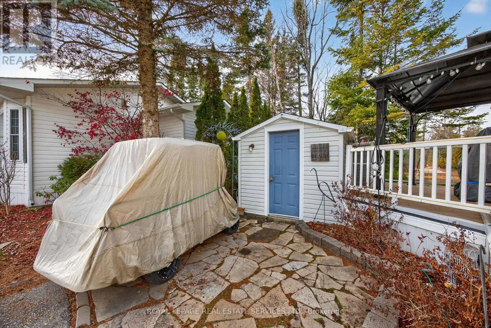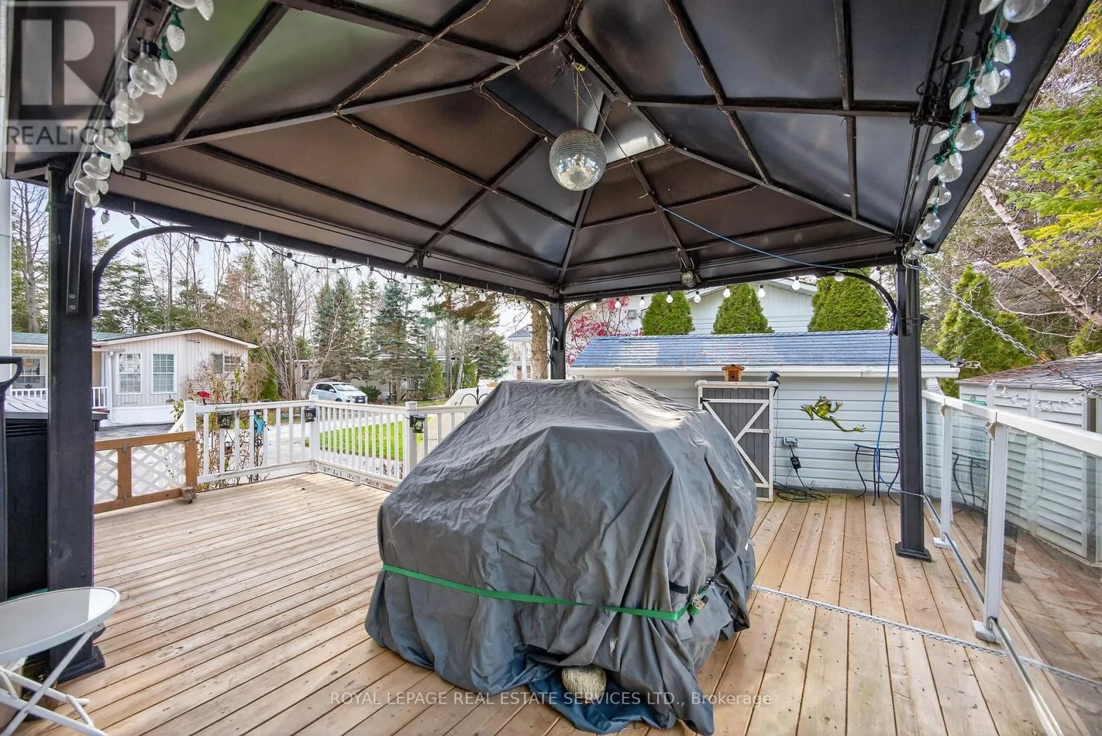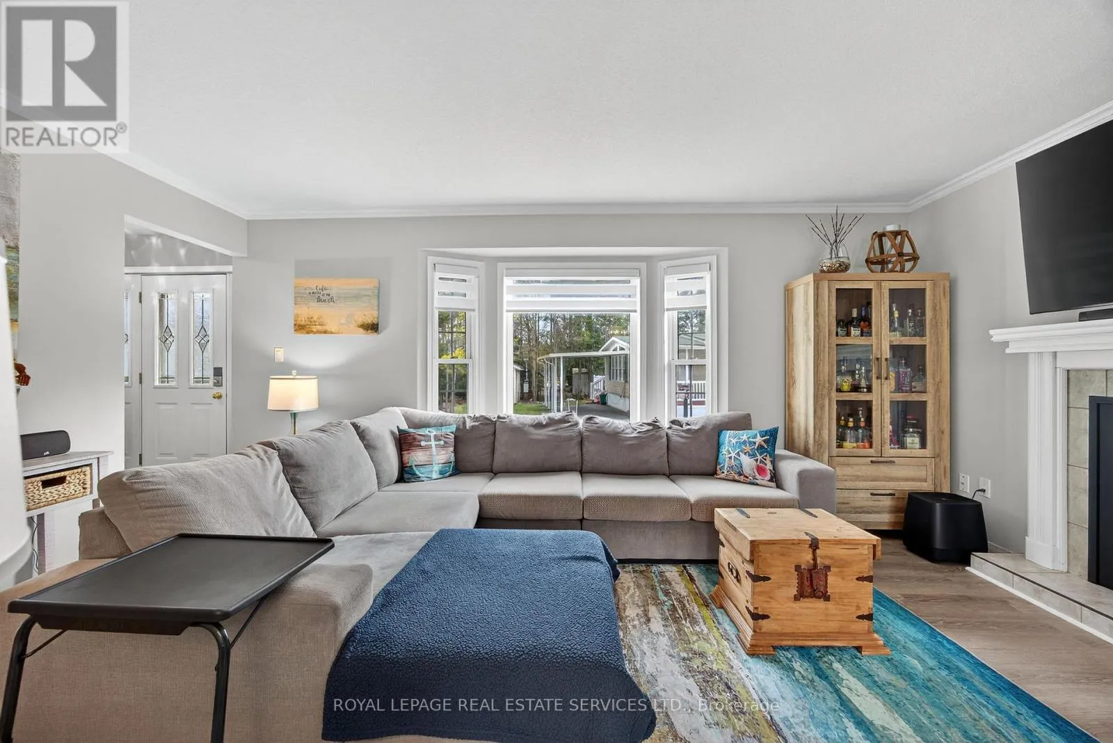 Mosley Street to Theme Park Drive to 24 Topaz (Need Access Code) Welcome to this beautiful home in Wasaga CountryLife Resort, offering peaceful pond views & exceptional privacy in a tranquil, nature-filled setting. This well maintained 2-bedroom, 2-bath home features a spacious eat-in kitchen with refaced cabinets, quartz countertops, updated appliances & an undermount sink. The freshly painted living room is warm & inviting w/ a cozy gas fireplace & large windows overlooking the water. The home has seen many updates throughout, including refreshed flooring, newly painted bathrooms, upgraded decking, a composite front deck, glass railing, & more. Beyond the home itself, residents of Wasaga CountryLife Resort enjoy an impressive range of amenities, including indoor & outdoor heated pools, a splash pad, playgrounds, mini-golf, sports courts, walking trails, ponds for catch-and-release fishing, and a community clubhouse offering seasonal events & entertainment. Located just minutes from the world's longest freshwater beach, this property offers the perfect blend of relaxation, recreation, and resort-style living; ideal for year-round enjoyment or a seasonal getaway. Land Lease $531.59, Property tax $82.88, Water/sewer billed quarterly, per usage. (id:27476)