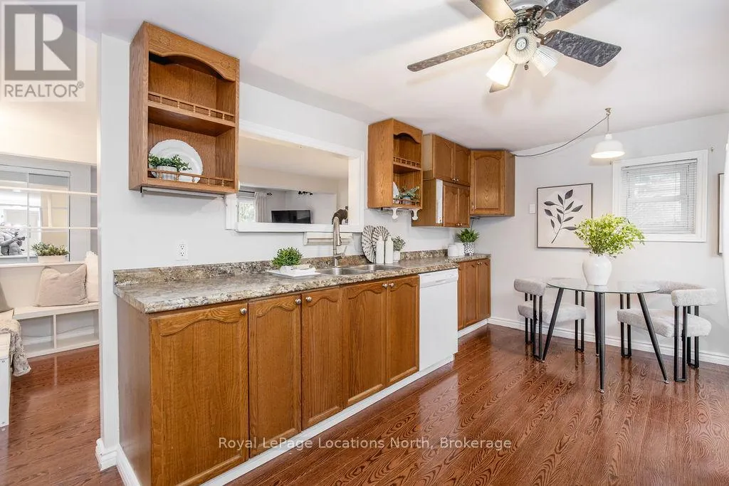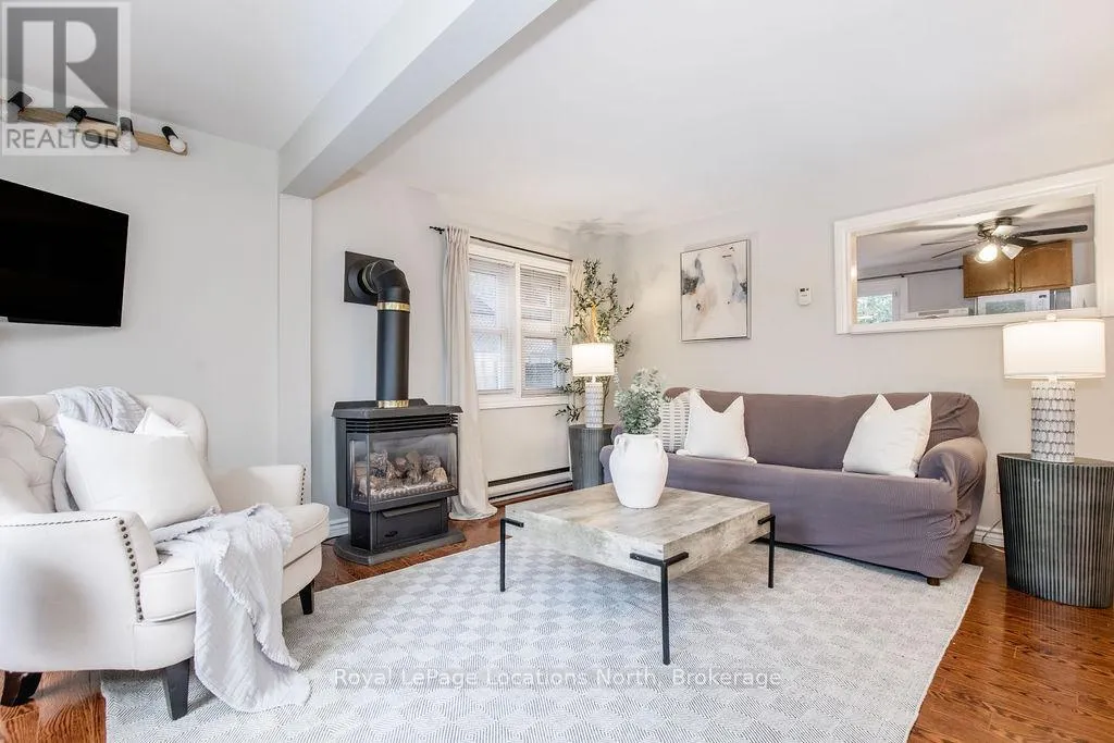 Cross Streets: 47th Street N and Mosley Street. ** Directions: Mosley Street to 47th Street N. Just Steps to the Beach - The Perfect 4-Season Getaway or Year-Round Home. Welcome to a cozy 3-bedroom, 1-bathroom ranch bungalow tucked on a private 50 x 120 ft lot, only a short stroll to the sandy shores. Whether you're dreaming of a weekend cottage, your first home, or a comfortable place to retire, this property fits beautifully into every stage of life. Inside, the living room invites you to curl up by the gas fireplace after a day at the beach or on the ski hill. The spacious kitchen gives you plenty of room to cook and entertain, with a walkout that leads to a back deck overlooking a private, tree-lined yard , complete with a firepit for those warm summer nights with family and friends. Three large sheds provide extra storage options. There's also a laundry hook-up ready to go. Location is everything, and here you're in the heart of it all: walk to Starbucks, Tim Hortons, restaurants, and local shopping. Enjoy the ease of gas/baseboard heat, municipal water and sewer, and true 4-season living. And when winter rolls around? Blue Mountain is just a quick 15-minute drive. A simple, comfortable home in the perfect spot and exactly where you want to be. (id:27476)