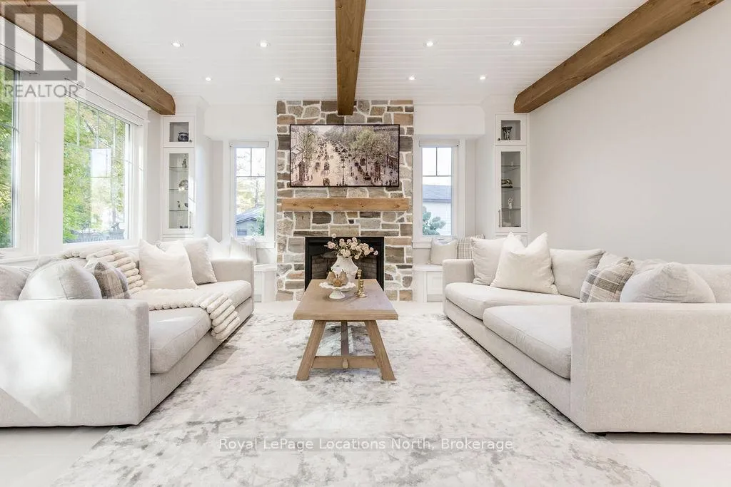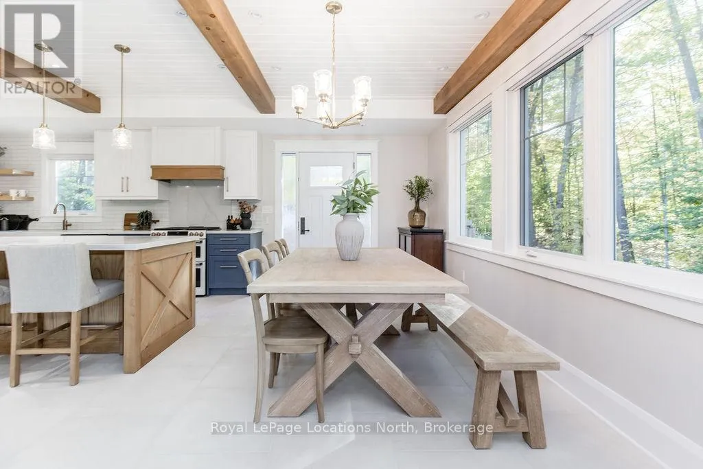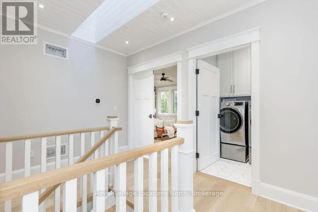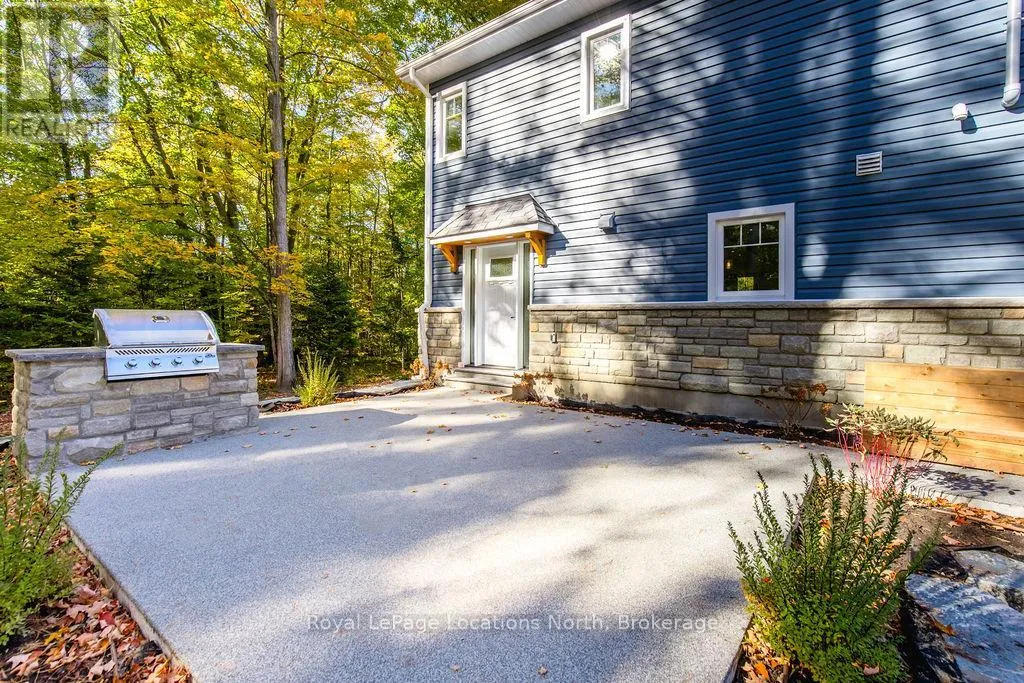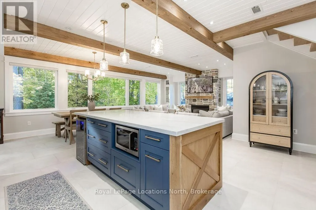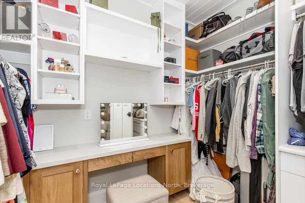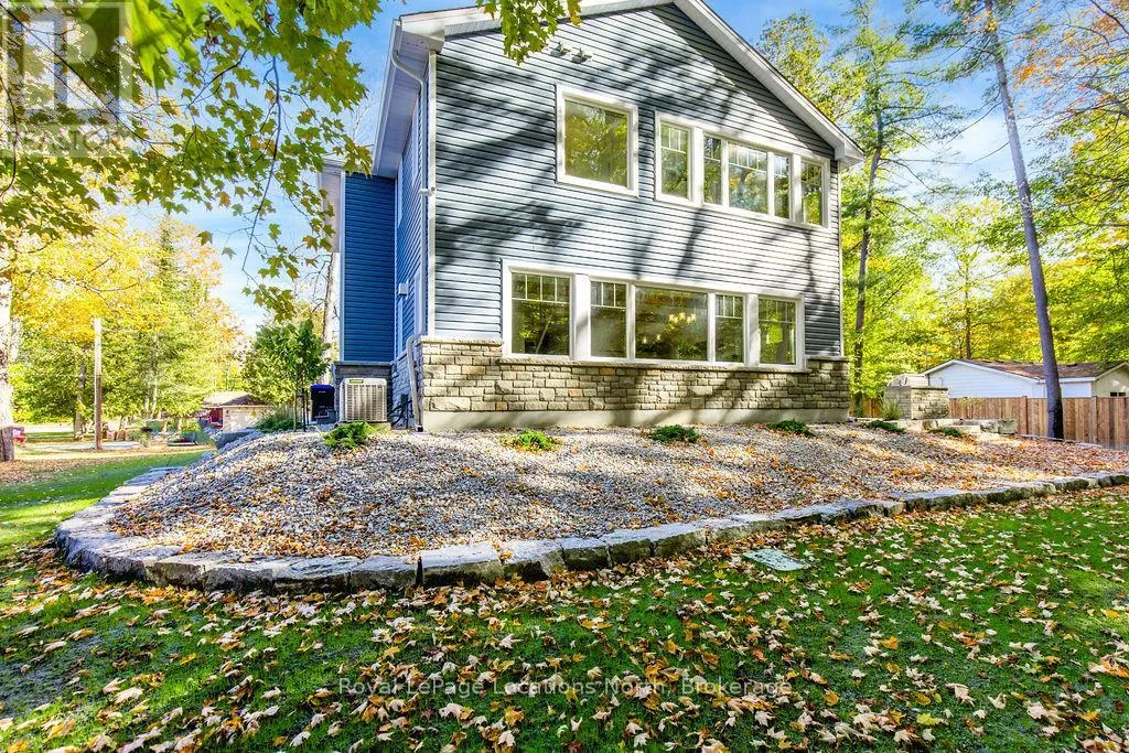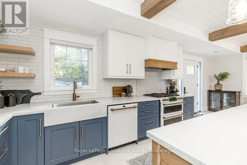 Cross Streets: Mosley Street and Oxbow Park Drive. ** Directions: Mosley Street to Oxbow Park Drive. DREAM HOME - Welcome to this stunning, custom-built 3-bed, 3-bath home showcasing exceptional craftsmanship, built in 2023, perfectly positioned backing onto protected land & directly across from the river in beautiful Wasaga Beach. Designed w/ a mix of modern luxury & timeless character, this home captures a century-home feel with its large mouldings, custom doors, & wood beams with a custom-built stone fireplace accenting the main floor. Inside, the bright open-concept layout features wall-to-wall windows overlooking the forest, flooding the space w/ natural light. The custom kitchen is a true showpiece, showcasing a large quartz island, blue and white cabinetry, a mini wine fridge, & a full quartz backsplash. It's finished w/ a high-end signature line of Wi-Fi-enabled appliances, combining elegance & smart convenience for the modern homeowner. The dining area sits beside large windows, while the living room offers aged wood ceiling beams and tongue-and-groove ceilings that bring warmth & texture throughout along w/ the wide-plank white oak hardwood. Upstairs the hardwood stairs, lead to spacious bedrooms, each w/ custom walk-in closets, built-in desks, shiplap ceilings, & designer touches like wallpaper accents & skylights. The primary suite feels like a retreat, featuring a cozy fireplace, luxurious ensuite w/ floating tub, double quartz sinks, black cabinetry, & a walk-in closet w/ custom cabinetry & make up desk perfect for getting ready for the day.Luxury features include- Inside entry to garage with epoxy flooring + custom storage, hydronic in-floor heating, heated driveway & walkways while outdoors, enjoy the built-in BBQ, rubberized surfacing on patios w/ hot tub hook up, sprinkler system, & tranquil forest backdrop w/ cedar trees surround the patio for privacy.Interior features include motorized blinds, smart home system, security cameras, spray-foam insulation, high-efficiency boiler system, & a hard-wired generator. One to remember! (id:27476)