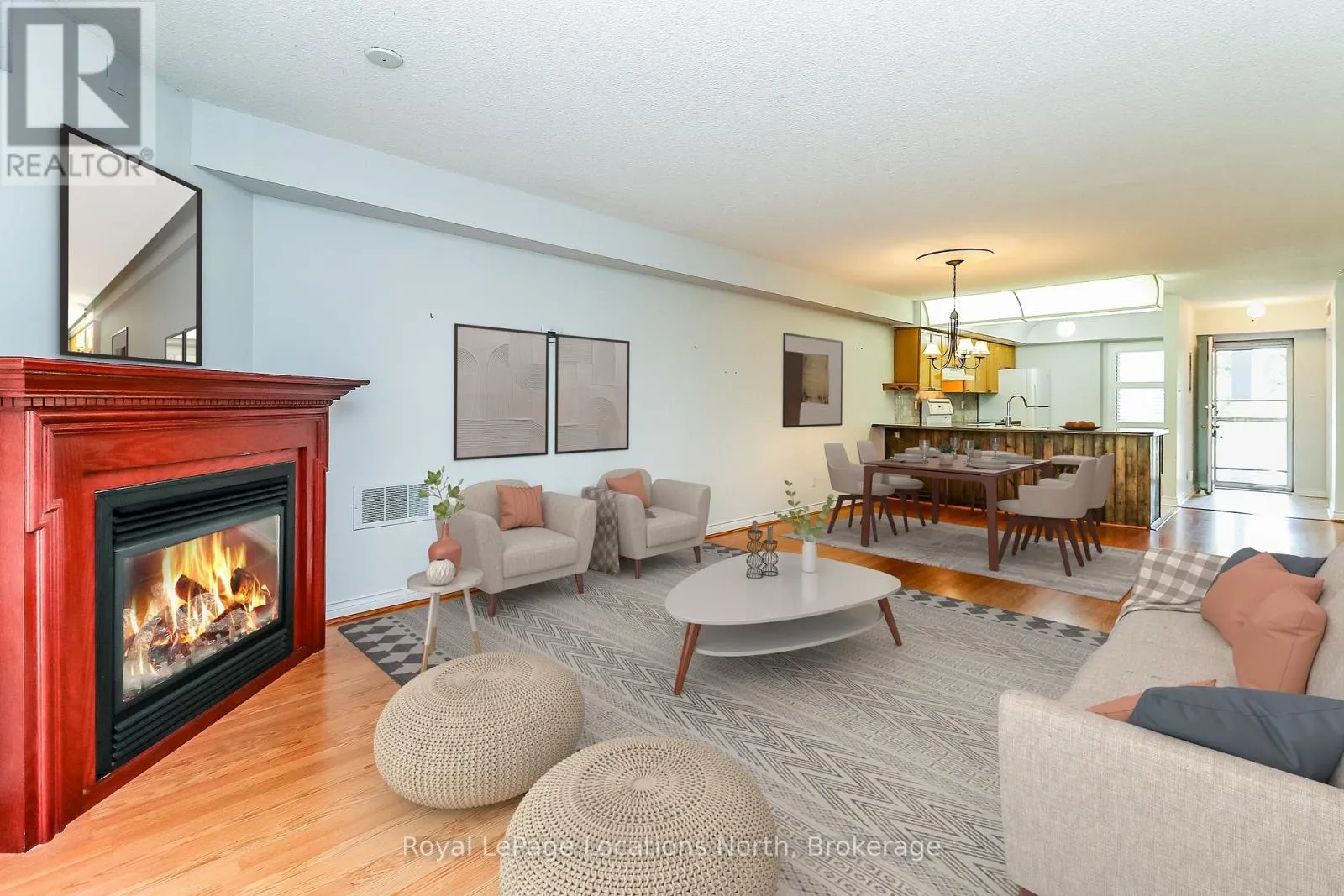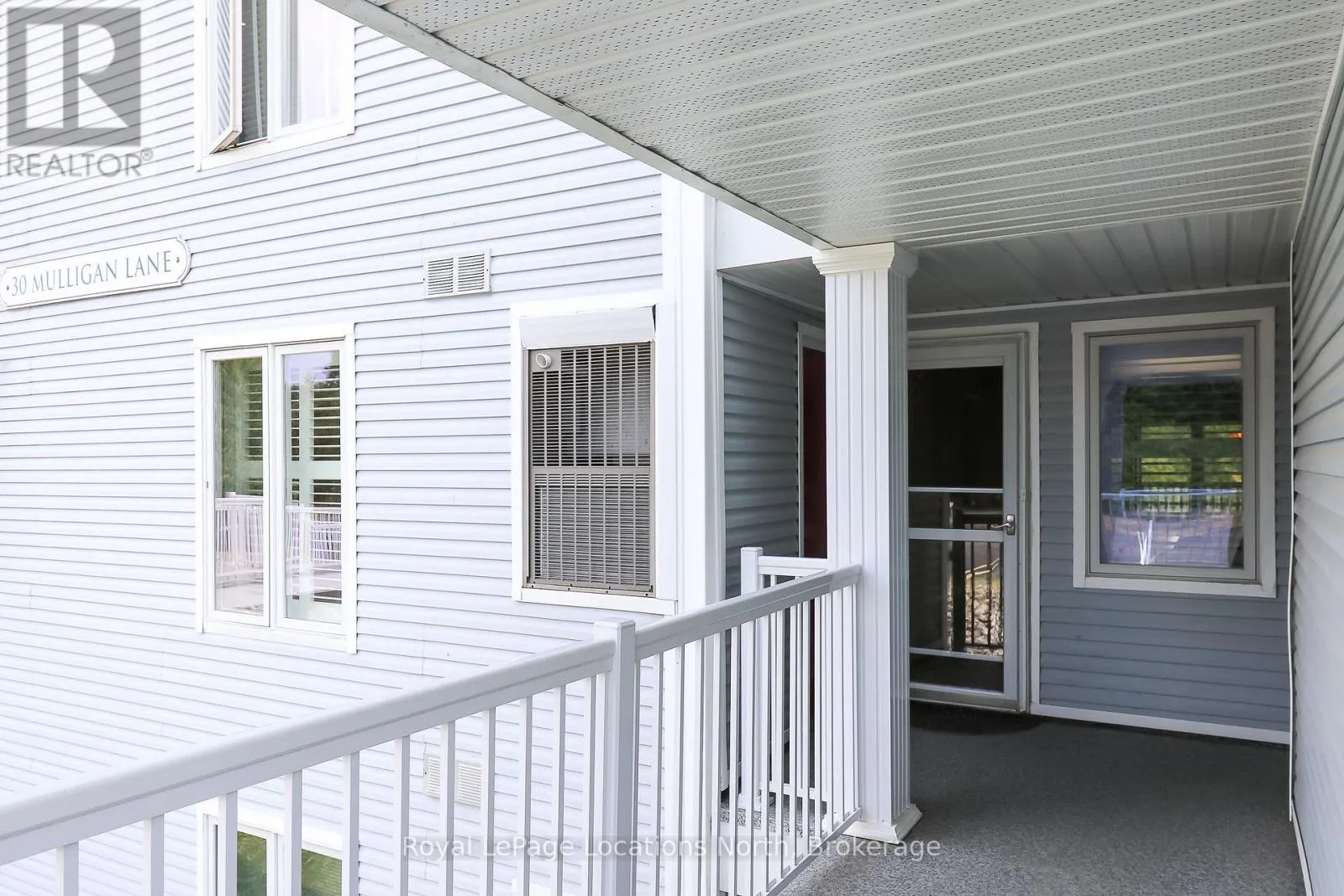 Cross Streets: Fairway Crescent & Mulligan Lane. ** Directions: River Road West to Zoo Park Road (turn south) to Golf Course Road (turn right) to Fairway Crescent (turn left) to Marlwood Condominiums (near 90 Fairway) to 30 Mulligan Lane Building. Look for Door #8 on right side ramp/stairs to 2nd floor. Amazing opportunity to own a large, open-concept condominium in the VERY popular Marlwood Golf Course Community of Wasaga Beach. At just shy of 1,200 sq. ft., this 2-bedroom, 2-bath condo offers a lot of space. You'll love the open-concept design of the kitchen (with breakfast bar) that overlooks both the dining area and the living room (with corner gas fireplace). This particular design also has a huge (13' x 21') covered and screened-in deck/balcony (accessed from the living room sliding glass doors), which also overlooks the private, mature-treed rear yard. There is also a set of stairs at the back of the building if you wish to easily walk your pet and/or wiggle your toes in the luscious, grassed area out back too. Laminate flooring adorns all rooms (except the kitchen, bathrooms, laundry & foyer), and other amenities of this condo include its own in-suite laundry with a new stackable washer/dryer, central vac, economical gas heat & central air-conditioning. This 2nd-floor "interior unit" has a condo above, below, and on each side of it, so it is also one of the most economically efficient (for heating and cooling) locations in the building. And speaking of great locations, this condo also has easy access to its front door thanks to the gently sloping ramp/stairs with only 5 gradual steps from the parking lot to the condo, so no long flight of stairs to navigate. Your designated parking spot is directly out front, with ample guest parking and a conveniently located mailbox nearby. The condo fees are $659.42/month & property taxes are $153/month. Located just a short drive from the sandy shores of the world's longest freshwater beach, this condo offers easy access to the Marlwood Golf Course and nearby walking & biking trails. You're also minutes from east-end Wasaga Beach amenities, including shopping, dining, the Stonebridge/Walmart commercial area, the new arena, and the library, making this quiet, well-connected location truly unbeatable. (id:27476)