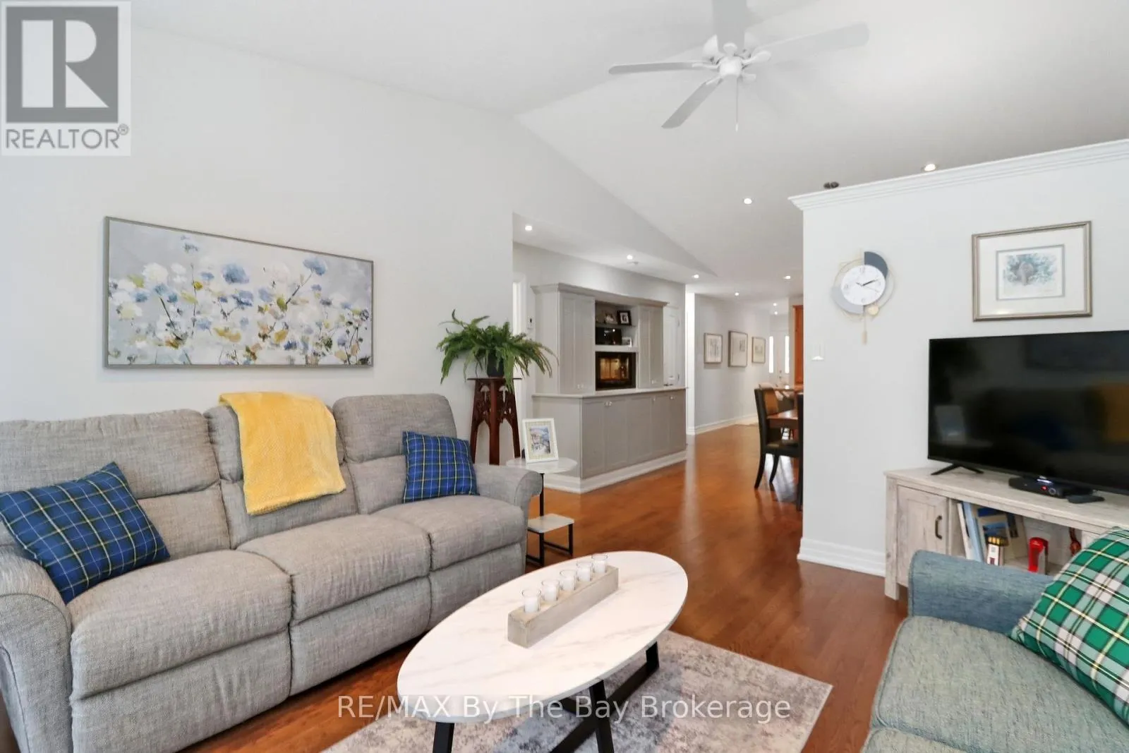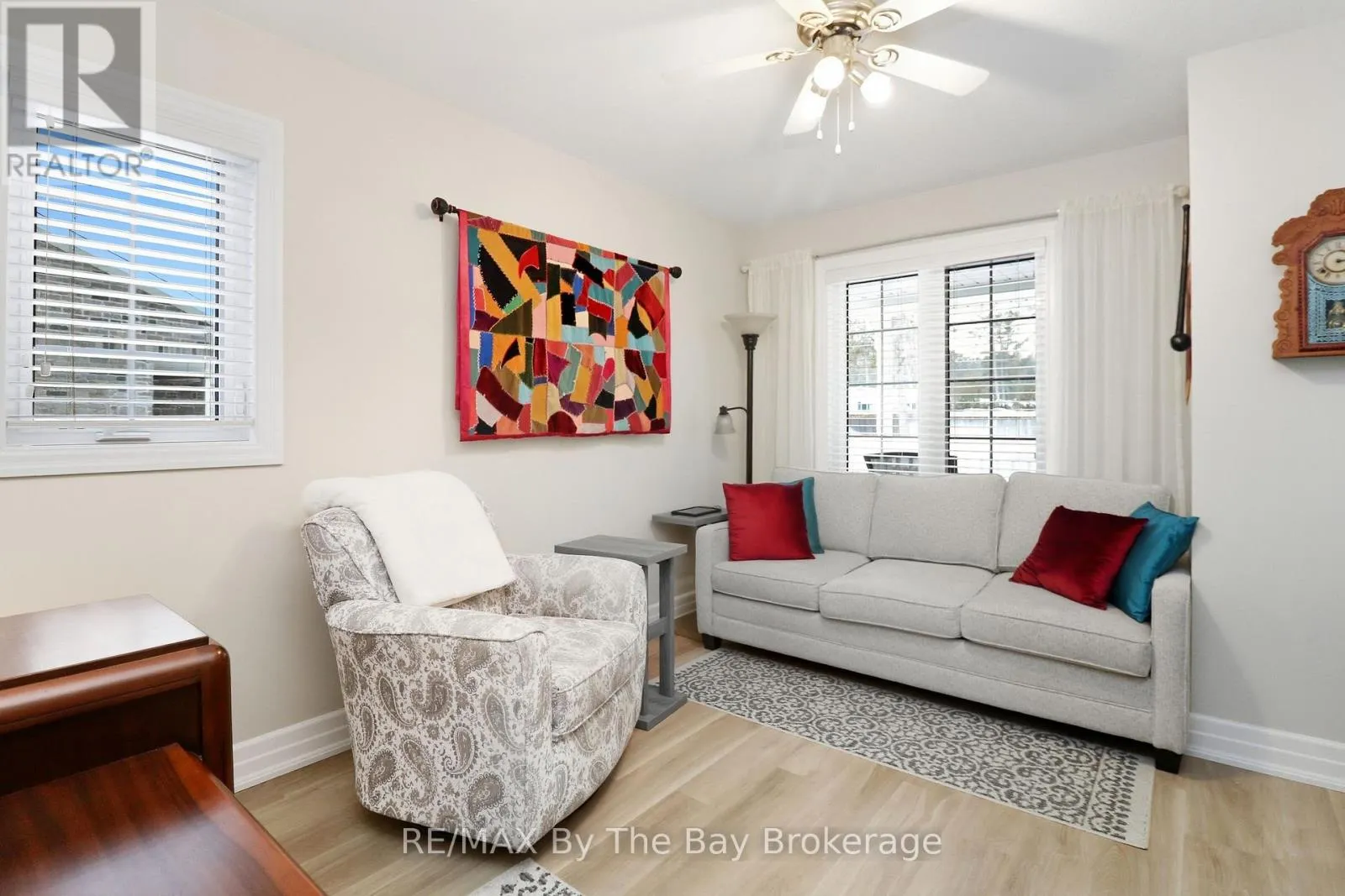 Cross Streets: Golf Course Rd and Greenway. ** Directions: Golf Course Rd to Greenway. Stunning, mint condition end unit with all the extras! Enjoy the natural light from the extra windows, hardwood flooring, vaulted ceiling, beautiful upgraded eat in kitchen with quartz counters, loads of extra cupboards and lovely island, freshly painted, upgraded bathrooms (jet tub in one, gorgeous step in shower in the other) inside entry from extra deep drywalled garage, 2 bdrms, 2 bathrooms, unique very attractive division wall between dining and living room which features a walk out to deck overlooking nature with gas bbq connection, terrific awning and inground sprinklers. Play 9 holes at the on-site private golf course and take a dip in the inground pool too! Come and see for yourself! Don't miss this one, there's no work to do here, just move in and ENJOY! Land lease fee $800/mo + land tax $40.57/mo + structure tax $141.82/mo = $982.39 month for a new owner. (id:27476)