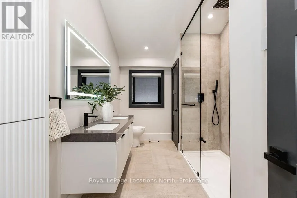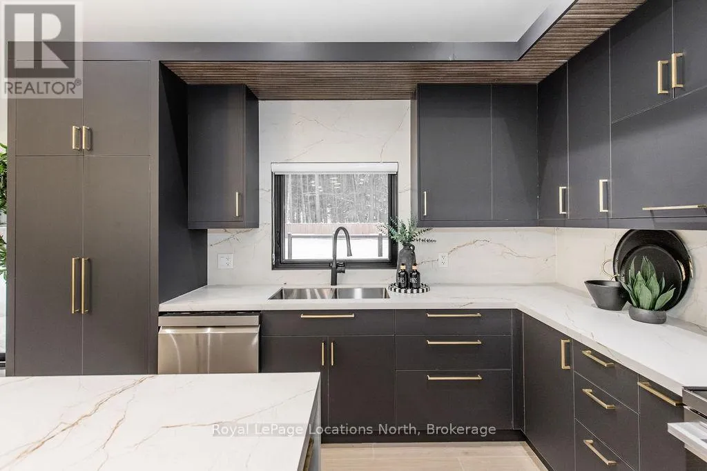 Cross Streets: River Road W and Bells Park Road. ** Directions: River Road W to Bells Park Road to Golf Course Road. This true ranch-style bungalow offers effortless, stair-free living with oversized sliding glass doors stretching across the family room, framing views of a large, fully fenced backyard that backs directly onto 56 acres of Crown land. With no rear neighbours, this is a rare setting where privacy, nature, and everyday convenience meet.The home offers over 2,300 sqft of living space on a generous 100' x 200' lot. An oversized garage with inside entry, paired with an open concept layout, makes this an ideal forever home. Outdoor enthusiasts will love the location- snowmobile trails just down the road, Marlwood Golf Course across the street, nearby hiking/snowshoeing trails and the world's longest freshwater beach only a 7-min drive. The primary bedroom is a true retreat, featuring vaulted ceilings, a cozy fireplace, sliding doors leading directly to the rear deck, and a high-end ensuite complete with a glass shower, floating soaker tub, and walk-in closet.The home has undergone extensive renovations throughout, including a brand new roof, soffits, fascia, exterior siding, windows, garage doors, and a new high-efficiency furnace with in-floor heating. Electrical, lighting, pot lights, and all interior flooring have been fully updated.The renovated kitchen showcases quartz countertops/backsplash, oversized island, custom cabinetry with pull-out organizers, a dedicated coffee bar, a built-in full-size wine fridge, and all new stainless steel appliances. Every bathroom has been fully renovated with modern fixtures and finishes.Upgrades include expansive new rear sliding doors, custom blinds, upgraded main-floor laundry with inside entry to garage, loft with a full bathroom and second family room with new TVs, an updated fireplace with custom built-ins, cathedral ceilings, skylights, and brand new tiered decks spanning the entire back of the home. The property is fully fenced with custom stone walkways, creating a private outdoor retreat you'll enjoy year-round. (id:27476)