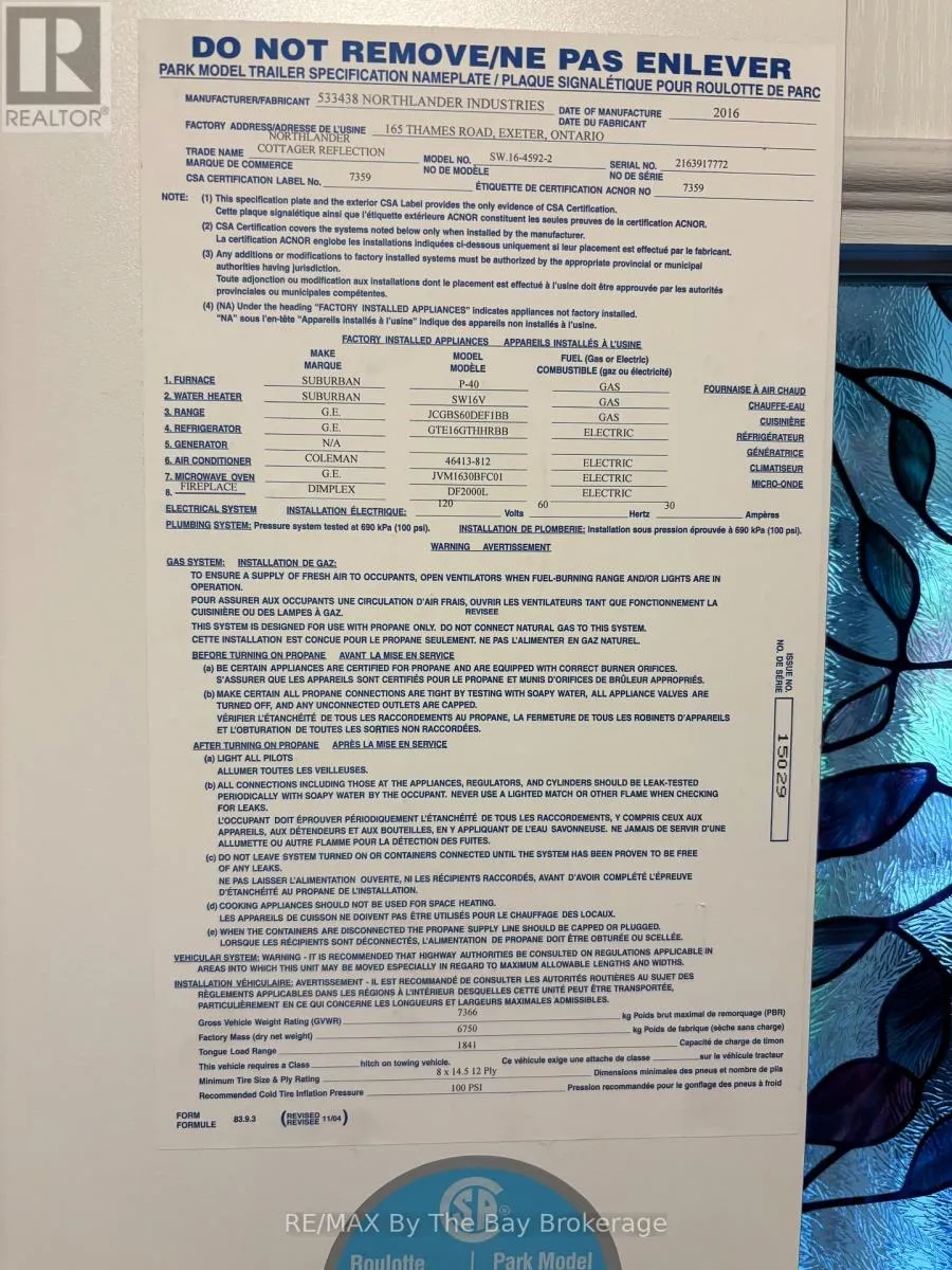 RIVER ROAD WEST TO THEME PARK DRIVE Escape to your ideal summer retreat at Wasaga Countrylife Resort with this immaculate 2016 Northlander Cottager Reflection model. Available seasonally from April 25th to November 16th, this fully furnished 2-bedroom, 1-bathroom cottage is perfectly situated on a quiet street just a short walk from the sandy shores of Georgian Bay. Inside, the bright, open-concept layout features vaulted ceilings, modern appliances, and abundant cabinetry, creating a welcoming and functional space for both relaxing and entertaining. The primary bedroom offers a comfortable queen-size bed and generous closet space, while the second bedroom includes bunk beds with convenient under-bed storage perfect for families. Outside, enjoy an oversized covered deck, a low-maintenance yard with a firepit, and a spacious storage shed, all set on a fully engineered concrete pad with clean, dry storage underneath and a paved driveway. This turnkey unit is ready for immediate enjoyment and is located within a vibrant, gated resort community that offers outstanding amenities including five inground pools, a splash pad, clubhouse, tennis court, playgrounds, mini-golf, and easy beach access. Seasonal site fees for 2026 are $6,740 plus HST. Don't miss this opportunity to own a carefree summer getaway schedule your showing today! (id:27476)
