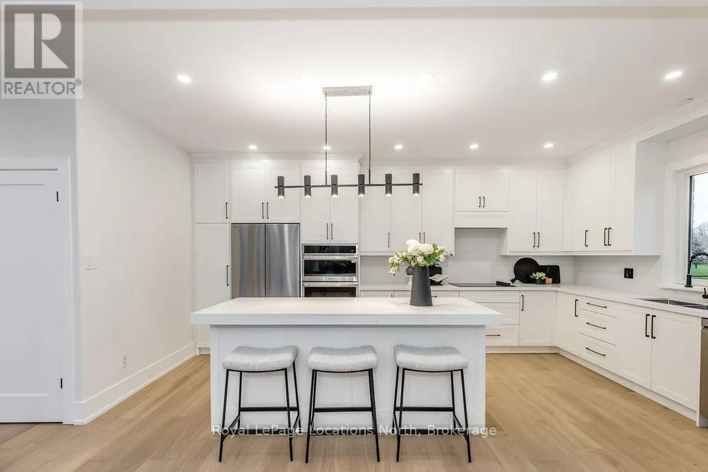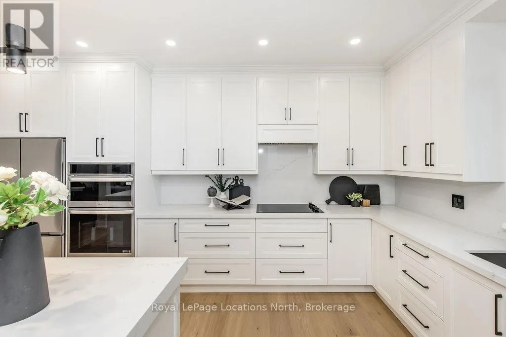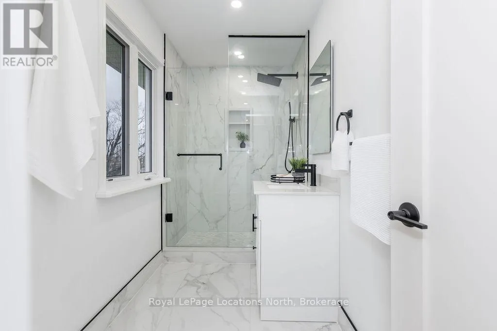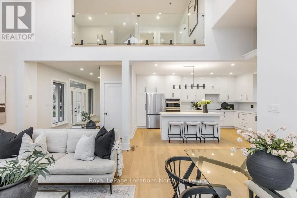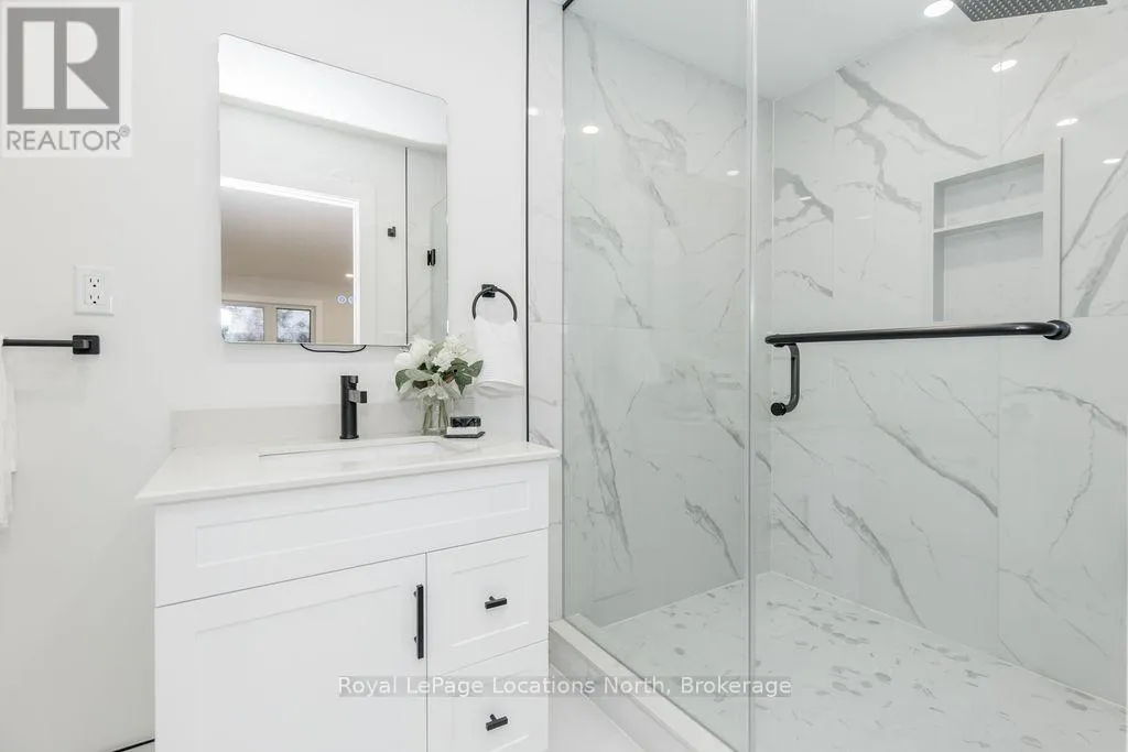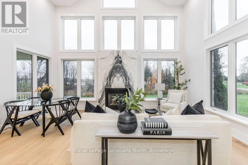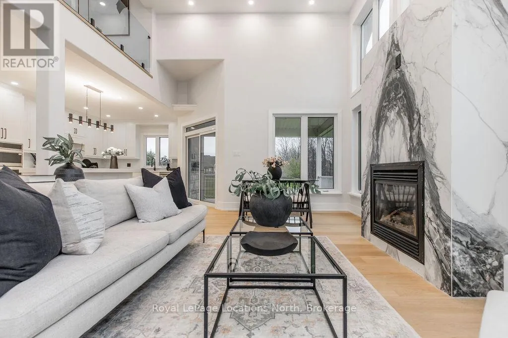 Cross Streets: Sunnidale/Maple/Butternut. ** Directions: Sunnidale Road S to Maple Drive to Butternut Crescent. Welcome to 6 Butternut Crescent, a fully renovated estate home located in one of Wasaga Beach's most sought-after areas, Wasaga Sands. Sitting on a half-acre lot (131 x 216 ft) with no neighbour on one side, this property offers rare privacy and plenty of outdoor space. The custom stone and stucco home, built by Alan Timlock, stands out for its unique architectural design with vaulted ceilings and floor-to-ceiling windows that fill every room with natural light.Inside, you'll find an open and consistent flow across the main floor, featuring a spacious living area, brand-new kitchen with quartz counters and new stainless-steel appliances, and a modern 3-piece bathroom. There's also a main floor bedroom, laundry room with inside entry to the oversized double garage, and new engineered hardwood flooring throughout. Every detail has been updated from new doors, hardware, pot lights, glass railings, and a beautiful new fireplace surround.The finished lower level adds even more living space with 2 additional bedrooms, a full bathroom, and a large open area perfect for a rec room, gym, or guest suite. With 3+2 bedrooms and 4 bathrooms in total, this home offers the space and flexibility families are looking for.The property features 9-ft ceilings, forced-air gas heating, central air conditioning, municipal water, and a septic system.If you've been searching for a modern, move-in-ready home on a large lot in a quiet, high-end neighbourhood close to golf, schools, and the beach, this one checks every box. (id:27476)
