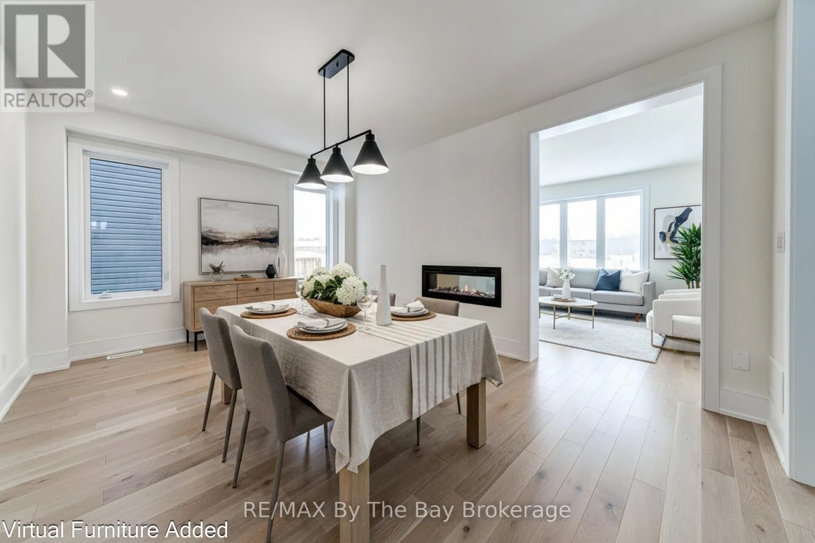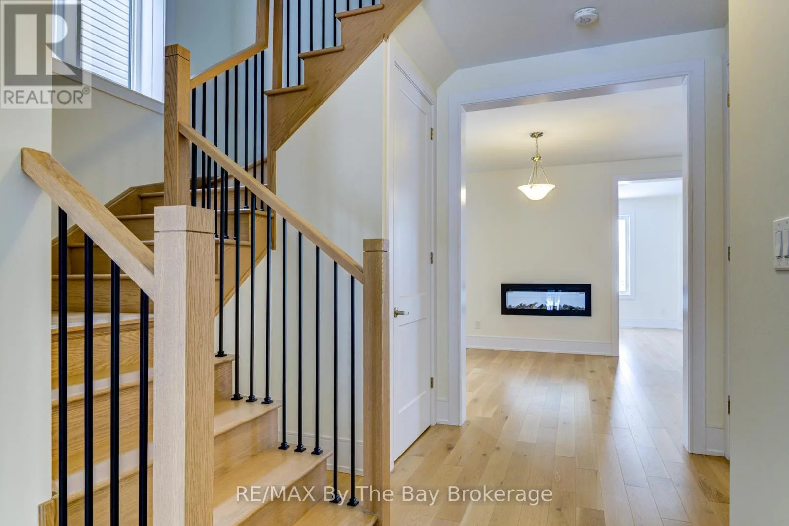 Cross Streets: Sun Valley Ave and Rosanne Circle. ** Directions: Sunnidale Rd to Sun Valley Ave to Rosanne Circle. This beautifully appointed 2,811 sq ft new build by Zancor Homes offers everything you've been searching for. Featuring the popular 'Marine' floor plan in Elevation B, this 4 bedroom, 3.5 bathroom home delivers an exceptional blend of space, style, and smart design. Main floor offers 8-foot doors, a semi open-concept layout where upgraded hardwood flooring flows throughout the main level and upstairs hallway, with smooth ceilings on both levels. The living and dining room are connected by a double-sided electric fireplace, creating a warm, inviting atmosphere perfect for entertaining or relaxing with family. The kitchen features upgraded two-tone cabinetry with pull-out garbage bins and complete with stainless steel appliances. A private main floor den provides flexible space for a home office, study, or playroom, while the garage entry mudroom keeps coats, shoes, and bags neatly organized. On the second floor, the primary bedroom provides a spacious walk-in closet and private 5pc ensuite with an upgraded floating vanity. The second bedroom has a private 3pc ensuite with upgraded glass shower, while the third and fourth bedrooms have a connecting 5pc bathroom. The second floor laundry with linen closet means no more hauling baskets up and down stairs, which provides extra convenience for busy households. The River's Edge neighbourhood offers the perfect combination of location, layout, and livability. Walking distance to elementary school, future high school and trails! (id:27476)