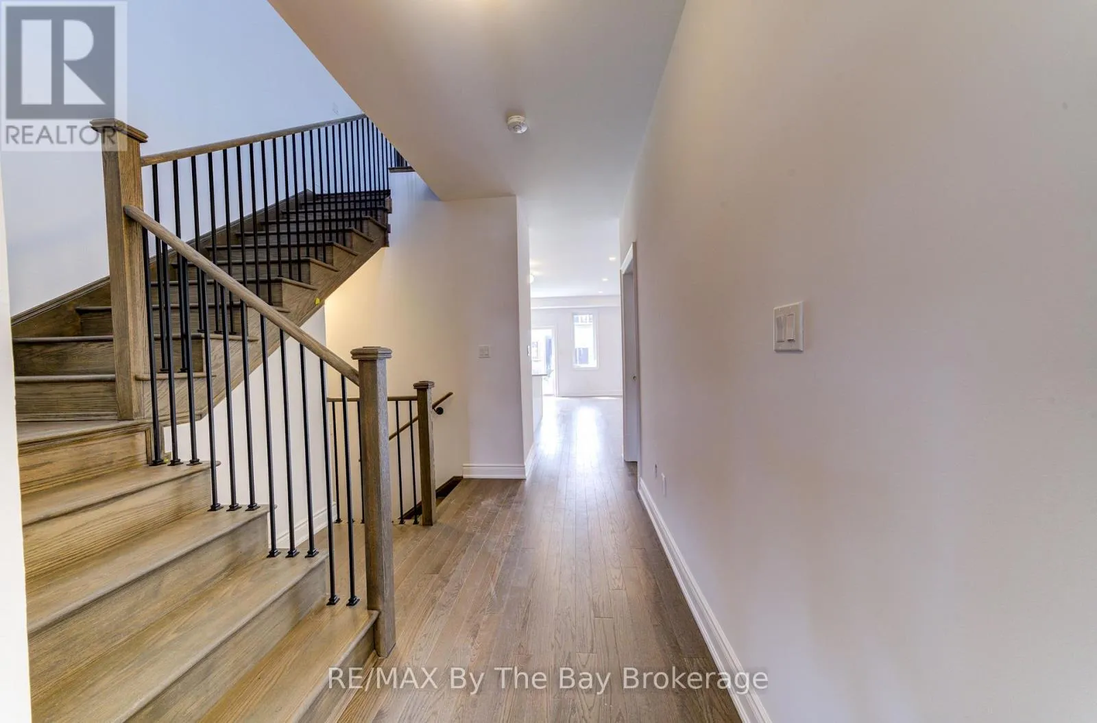 Morgan Rd/ Middleton Dr Welcome to 28 Autumn Drive in the Villas of Upper Wasaga, built by Baycliffe Communities, located in the highly sought-after Wasaga Sands neighbourhood. This never-lived-in, move-in-ready freehold townhome offers modern comfort, low-maintenance living, and easy access to everything Wasaga Beach has to offer. This beautifully finished Amber Model features 1,734 sq. ft. of thoughtfully designed living space, making it ideal for full-time living, a weekend escape, or a smart investment. The bright main level showcases 9-foot ceilings, wide-plank engineered hardwood flooring, and a solid oak staircase with elegant wrought-iron spindles, creating a clean, contemporary feel throughout. The upgraded kitchen is designed for both everyday living and entertaining, featuring quartz countertops, soft-close shaker cabinetry with glass uppers, and an oversized island that anchors the open-concept layout. The space flows effortlessly into the dining and living areas, filled with natural light. Upstairs, the primary suite offers a walk-in closet and a private 4-piece ensuite with double sinks and a tiled shower. Two additional bedrooms, a full bathroom, and convenient upper-level laundry complete the second floor. The unfinished basement provides excellent storage or future finishing potential. Tarion warranty included. Ideally located close to schools, shopping, trails, and the world's longest freshwater beach, with Collingwood just 15 minutes away and Blue Mountain only 20 minutes, this home delivers the perfect balance of comfort, convenience, and lifestyle in one of Ontario's most desirable beach towns. (id:27476)