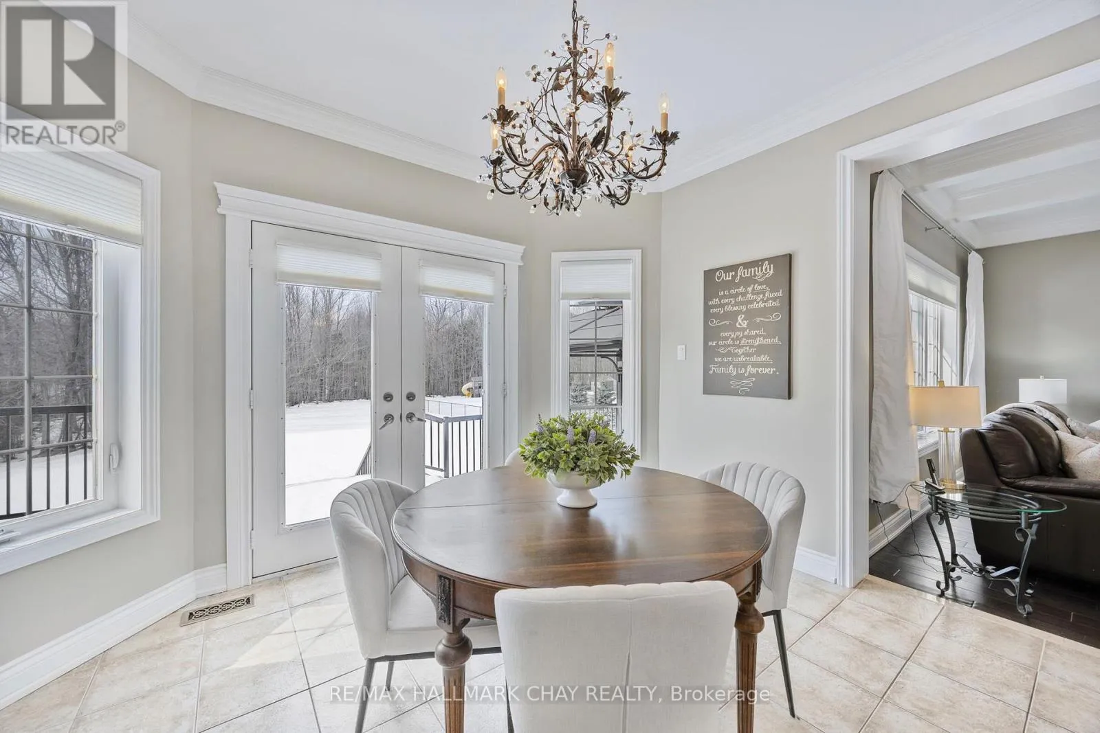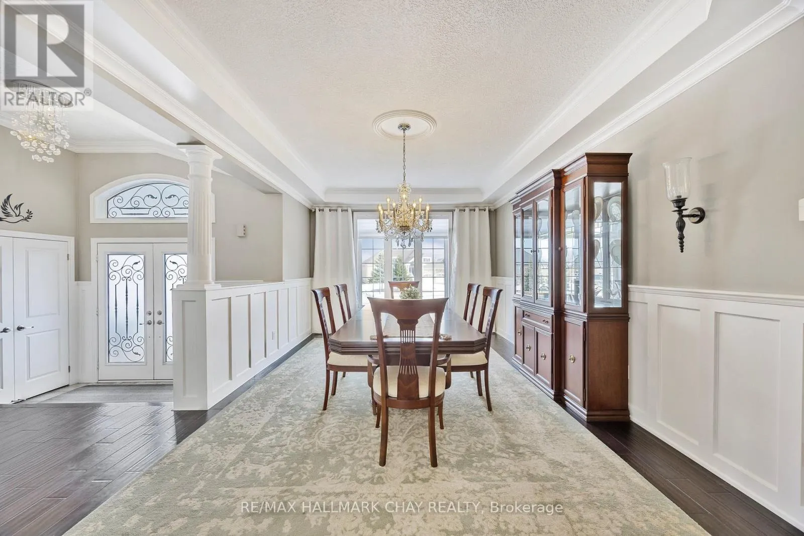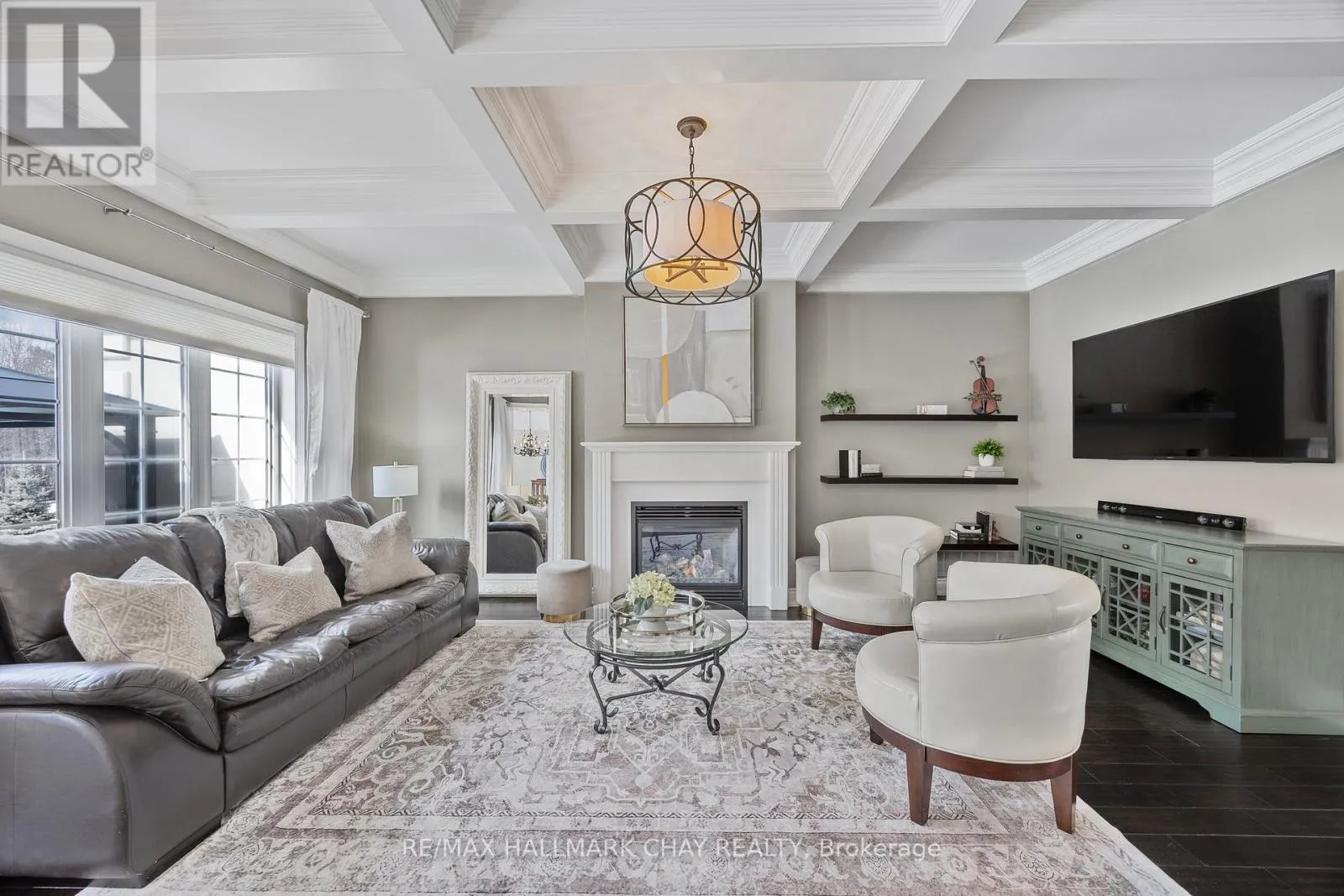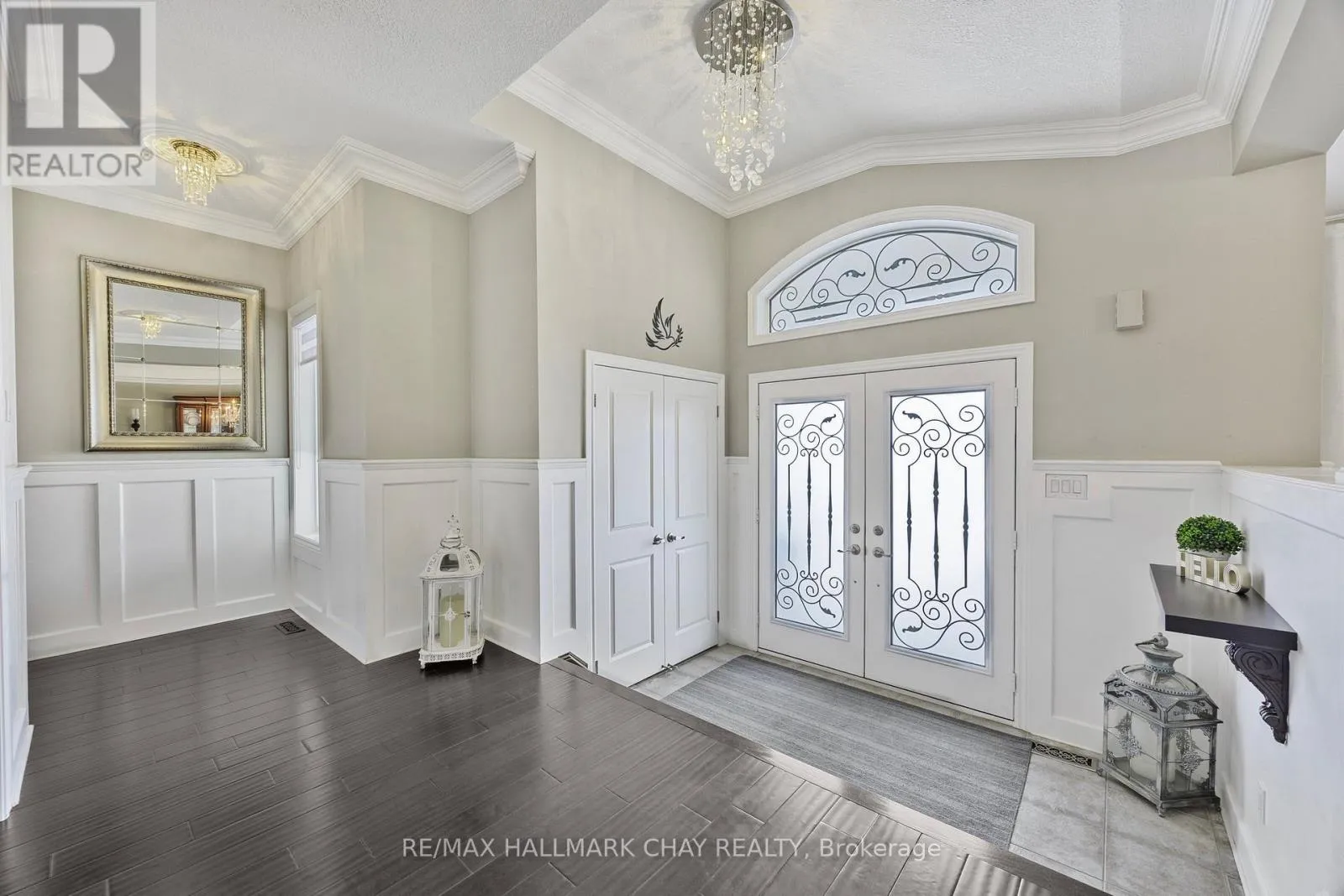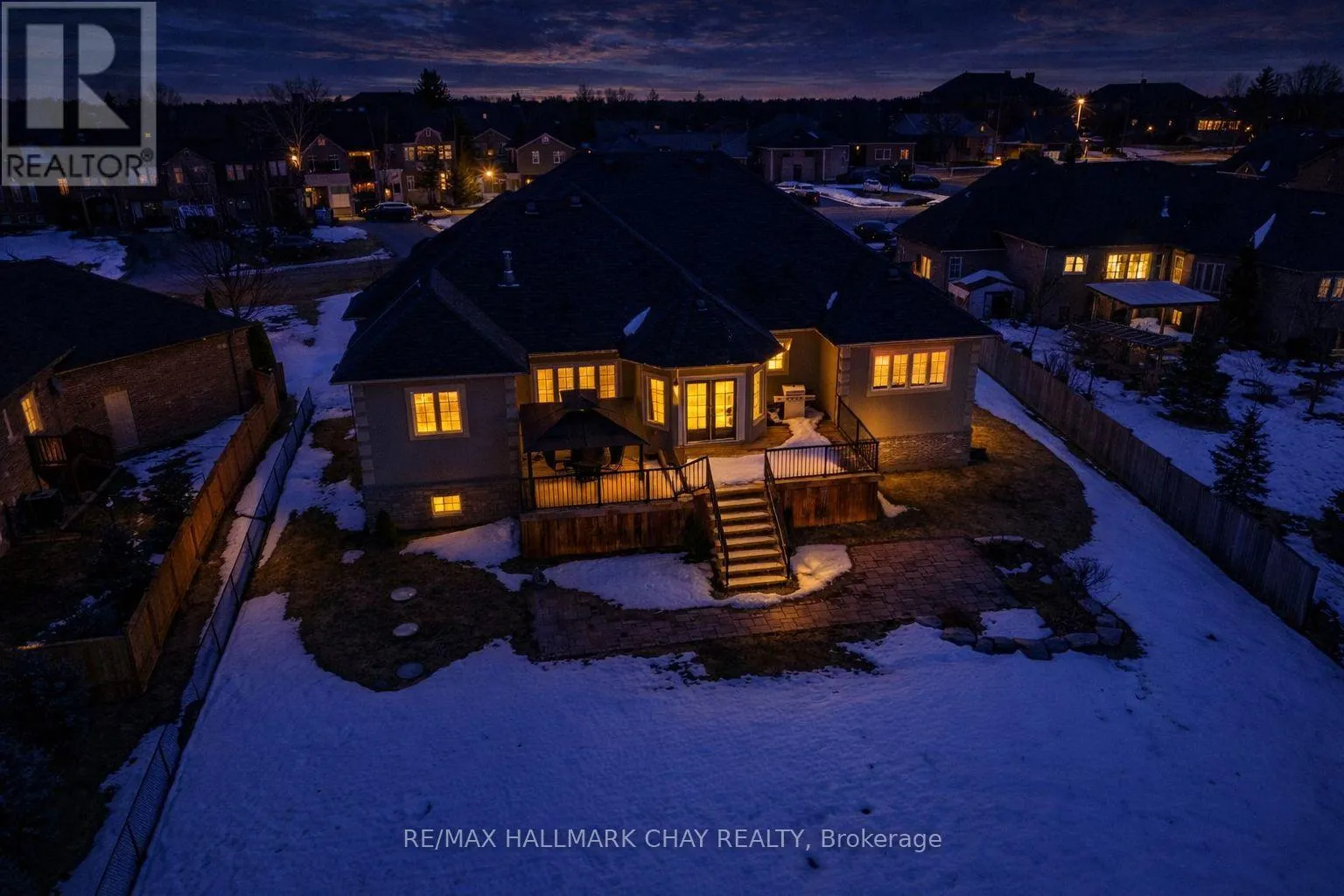 Maple Drive Step into this impressive raised bungalow in Wasaga Beach's prestigious Wasaga Sands Estates, set on a rare ravine lot surrounded by expansive estate properties. Offering over 2,500 sq ft on the main floor, this remarkable residence boasts incredible curb appeal, dual entrances, and a massive driveway leading to a spacious three-car garage. The backyard is a private retreat featuring an oversized deck and patio with picturesque views of Macintyre Creek and tranquil trails. Inside, you'll find refined details such as wainscoting, hardwood floors, and 8-inch cornice moldings. The family room is enhanced by a beautiful coffered ceiling and fireplace, while the kitchen shines with quartz countertops and a premium Viking stove. The open-concept layout flows effortlessly to the backyard, perfect for entertaining. The primary suite is complemented by three additional bedrooms, one of which serves as a versatile space ideal for an office, or nursery. A practical mudroom offers easy access to the garage and second entrance. With 9' ceilings throughout, ample natural light, and an unfinished basement featuring 10' ceilings and a bathroom rough-in, this home presents endless opportunities. Enjoy peaceful living just minutes from shops, restaurants, the beach and Blue Mountain resort. 9ft Ceilings on Main, Hardwood Floors, Newer Carpet In Bedrooms, Mud Room With Man Door To Garage & To Front Entrance, Elegant Wainscotting Throughout, Walk In Pantry, Coffered Ceilings, 8" Cornice Molding, 10ft Ceilings In Bsmt & Above Grade Windows, Quartz Counters, Double Deck, Backing Onto Macintyre Creek +Trails. (id:27476)
