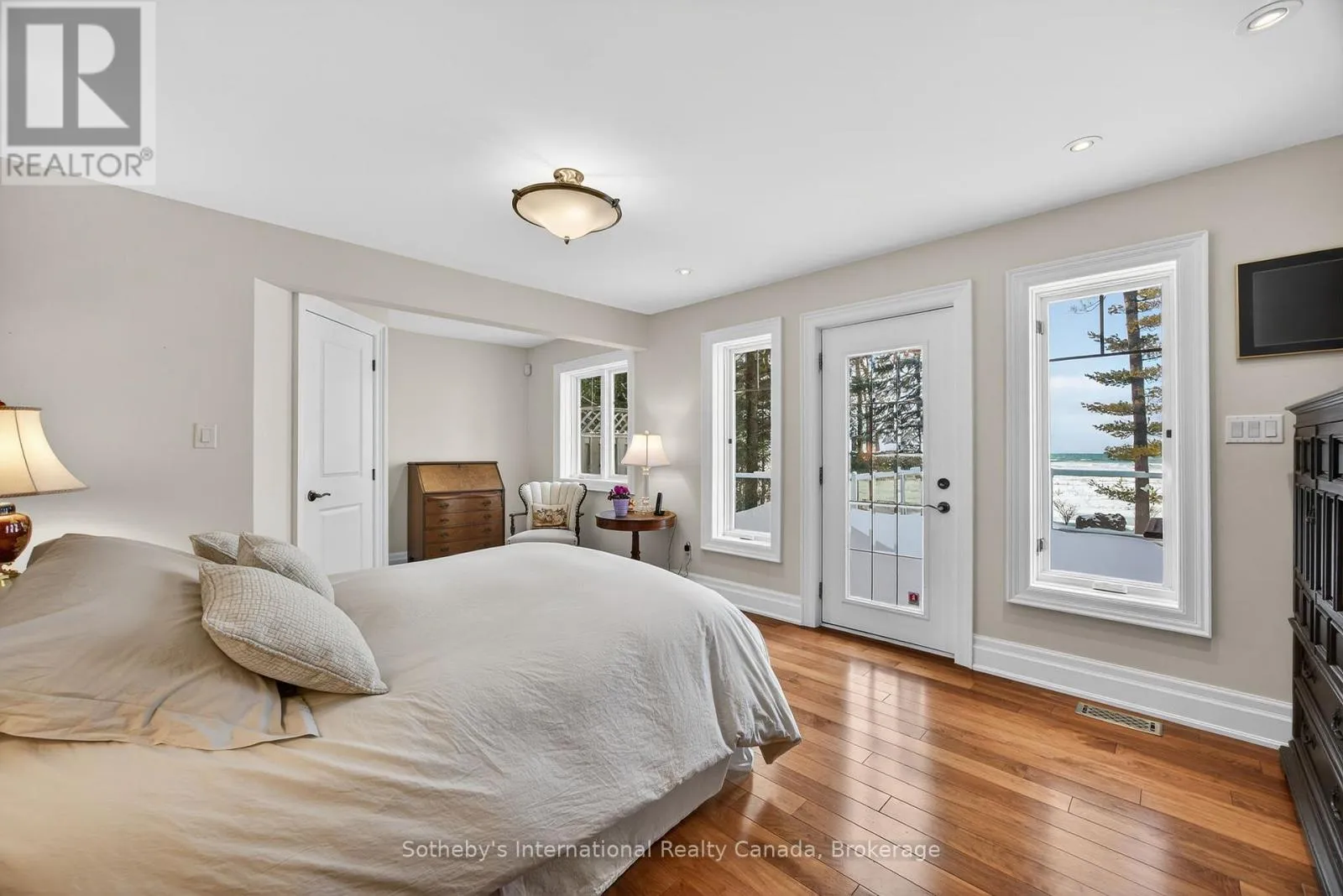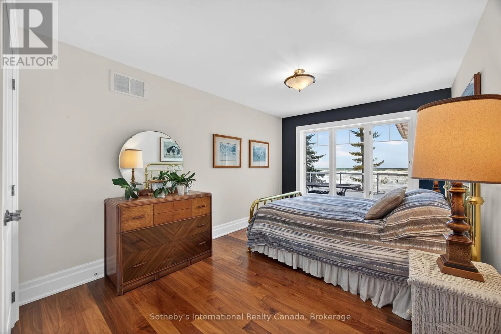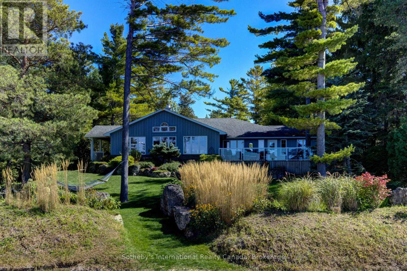 Cross Streets: River Rd E and Eastdale Drk Dr. ** Directions: River Rd E NE to 1036. Set along the iconic sandy shoreline of Wasaga Beach with immediate beach access, enhanced by the privacy of a quiet sandy road, this custom bungalow offers a rare blend of refined craftsmanship and natural beauty with panoramic views across Georgian Bay to Blue Mountain. Spectacular sunsets paint the sky creating breathtaking scenes in every season. Professionally landscaped grounds span over 1/2 an acre and are framed by mature trees, impressive limestone boulders and meandering walkways through perennial gardens creating a sanctuary that feels natural but refined. This one-floor residence of over 2,800 square feet is thoughtfully designed for effortless living and entertaining. Throughout the home, sunlight streams through oversized casement windows. The open-concept living and dining areas, enhanced by walnut flooring and a vaulted ceiling, are anchored by a striking dual-aspect marble-clad gas fireplace. The expansive gourmet kitchen features granite countertops, an oversized double sink, full-height cabinetry with under-cabinet lighting, a generous pantry and premium appliances including a BlueStar six-burner gas range and Miele fridge/freezer. The two-tiered prep/entertainment island provides seating for five or more. The primary suite is a private retreat that features bay views, access to a secluded deck, a walk-in closet with window, a spa-inspired ensuite with heated floors, granite counters and an oversized marble-tiled shower with granite bench, rainfall showerhead and body jets. Three additional large bedrooms and two three-piece bathrooms provide comfort for family or guests. Outdoor living is enhanced by an expansive lounging and dining deck offering breathtaking lake and stunning sunset vistas. An oversized detached two-car garage and large driveway provide ample parking. This beautiful and unique home ensures tranquil and pleasurable living immersed in the beauty of each season. (id:27476)