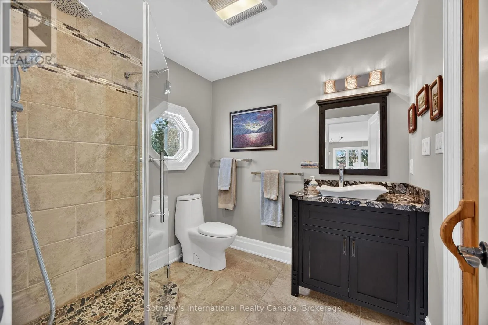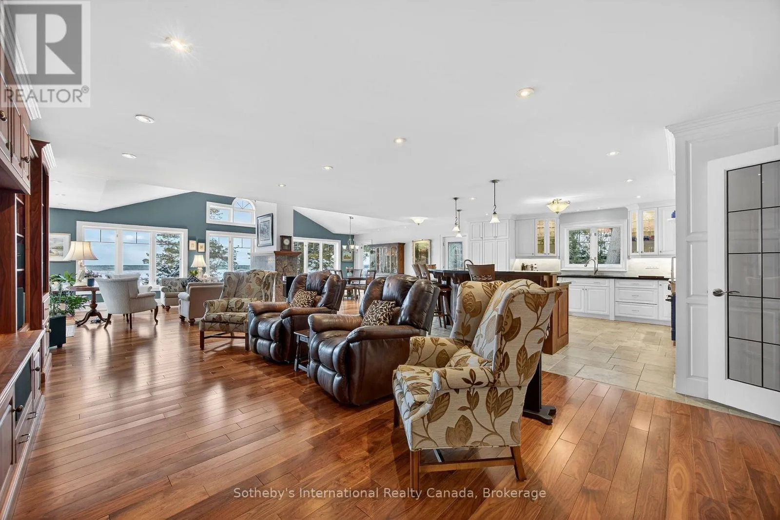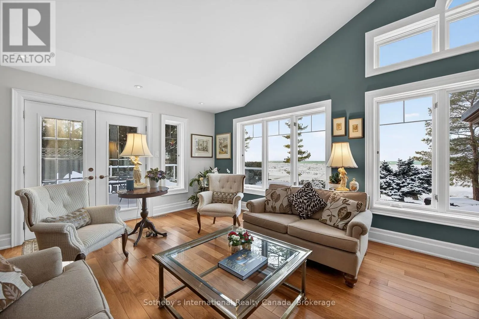 Cross Streets: River Rd E and Eastdale Drk Dr. ** Directions: River Rd E NE to 1036. Set along the iconic sandy shoreline of Wasaga Beach with immediate beach access, enhanced by the privacy of a quiet sandy road, this custom bungalow offers a rare blend of refined craftsmanship and natural beauty with panoramic views across Georgian Bay to Blue Mountain. Spectacular sunsets paint the sky creating breathtaking scenes in every season. Professionally landscaped grounds span over 1/2 an acre and are framed by mature trees, impressive limestone boulders and meandering walkways through perennial gardens creating a sanctuary that feels natural but refined. This one-floor residence of over 2,800 square feet is thoughtfully designed for effortless living and entertaining. Throughout the home, sunlight streams through oversized casement windows. The open-concept living and dining areas, enhanced by walnut flooring and a vaulted ceiling, are anchored by a striking dual-aspect marble-clad gas fireplace. The expansive gourmet kitchen features granite countertops, an oversized double sink, full-height cabinetry with under-cabinet lighting, a generous pantry and premium appliances including a BlueStar six-burner gas range and Miele fridge/freezer. The two-tiered prep/entertainment island provides seating for five or more. The primary suite is a private retreat that features bay views, access to a secluded deck, a walk-in closet with window, a spa-inspired ensuite with heated floors, granite counters and an oversized marble-tiled shower with granite bench, rainfall showerhead and body jets. Three additional large bedrooms and two three-piece bathrooms provide comfort for family or guests. Outdoor living is enhanced by an expansive lounging and dining deck offering breathtaking lake and stunning sunset vistas. An oversized detached two-car garage and large driveway provide ample parking. This beautiful and unique home ensures tranquil and pleasurable living immersed in the beauty of each season. (id:27476)