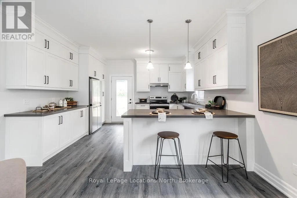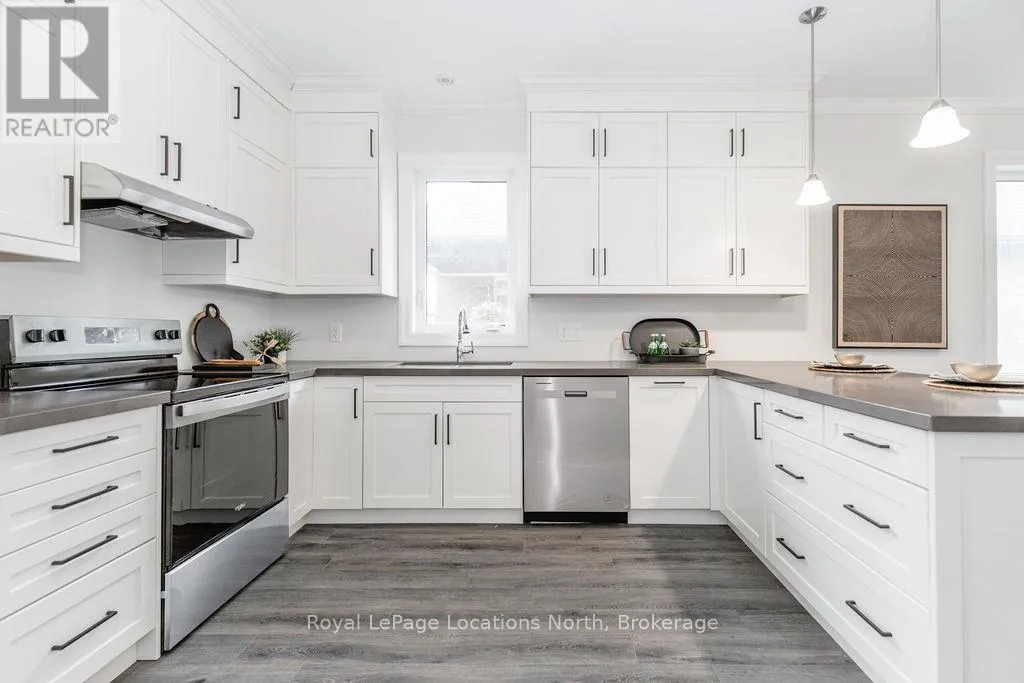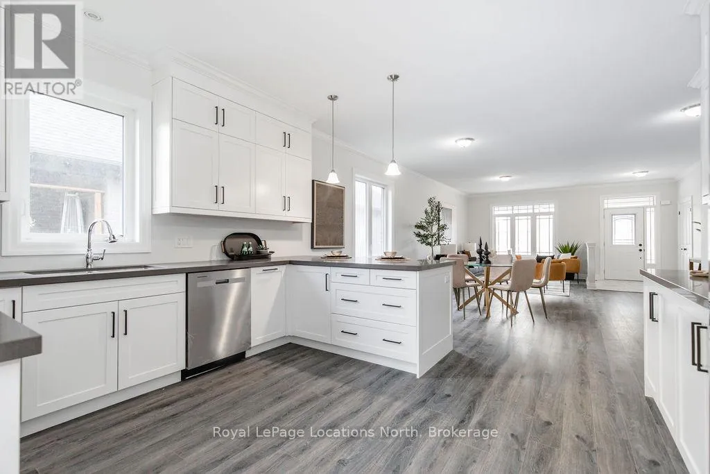 River Road W to Golf Course Road to Natures Trail This brand new all-brick raised bungalow offers over 3,200 sq ft of finished living space, combining modern design, quality finishes, and a great layout ideal for families or multi-generational living. The main level features approximately 1,645 sq ft with 9-foot ceilings, creating a bright and open atmosphere, while the fully finished lower level adds an additional 1,565 sq ft of living space.Set on a generous lot measuring 57.45 ft by 133.13 ft, this home includes 3 spacious bedrooms on the main floor and 2 additional bedrooms downstairs, along with 2 full bathrooms on the main level and a convenient powder room. A main floor laundry room is perfect for man floor living.The classic kitchen is a standout, showcasing brand new stainless steel appliances, upgraded shaker-style cabinetry, double stacked upper cabinets with crown moulding to the ceiling, deep fridge uppers, a large pantry, and practical pot and pan drawers. Quartz countertops with undermount sinks carry through the kitchen and bathrooms for a cohesive, upscale finish. The primary ensuite offers a double vanity and a glass-enclosed shower.Outside, enjoy both a covered front concrete porch and a covered rear deck, perfect for relaxing or entertaining in any season. The exterior is complete with a fully sodded yard and paved driveway, plus a spacious 2-car garage.Additional modern features include hot water on demand, central air conditioning, rough-in central vacuum, HRV system, and a cellar for extra storage.Located on the east end of Wasaga Beach near Marlwood Golf Course, this home offers easy access to Beach 1, shopping, and everyday amenities. (id:27476)