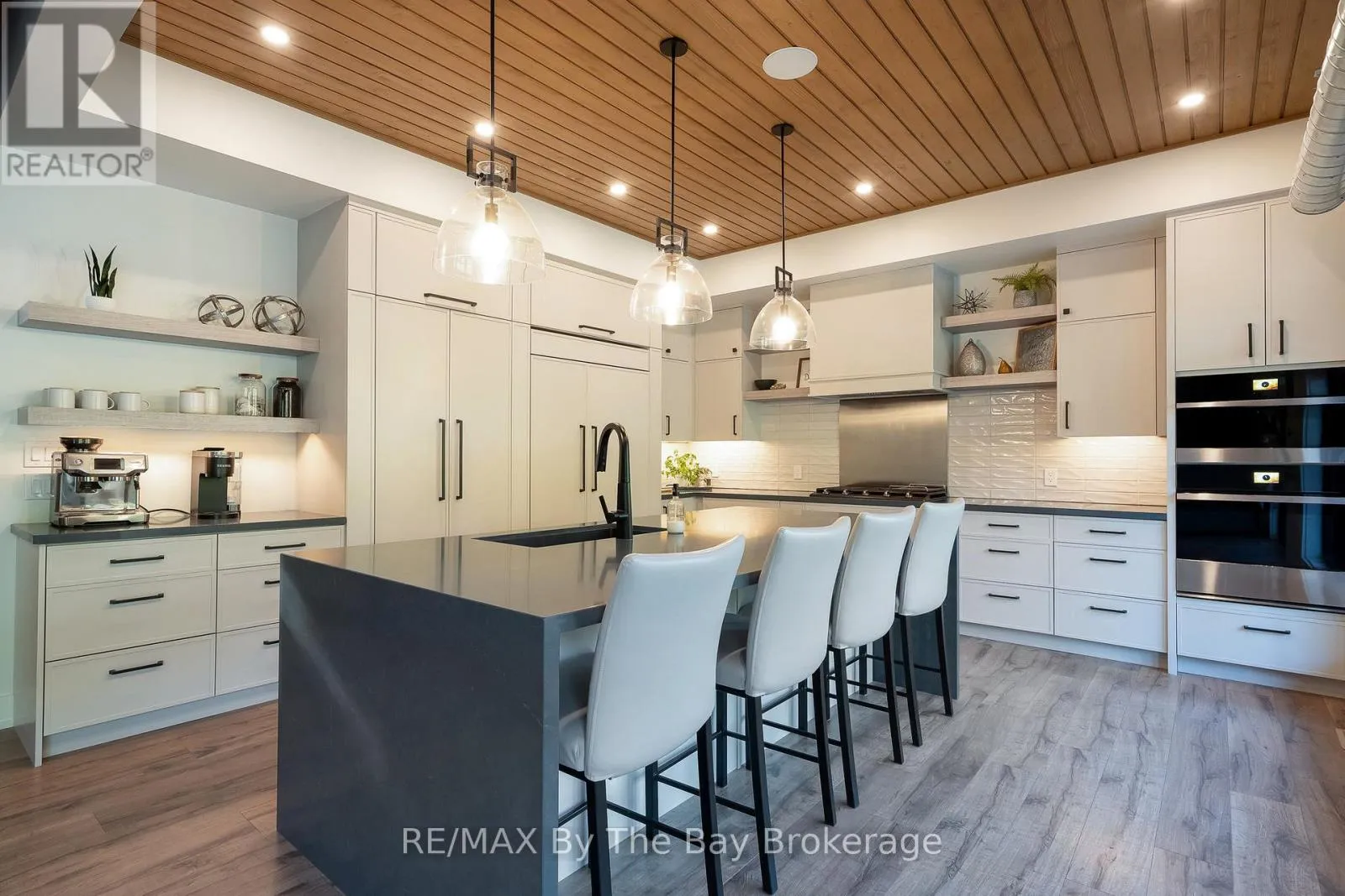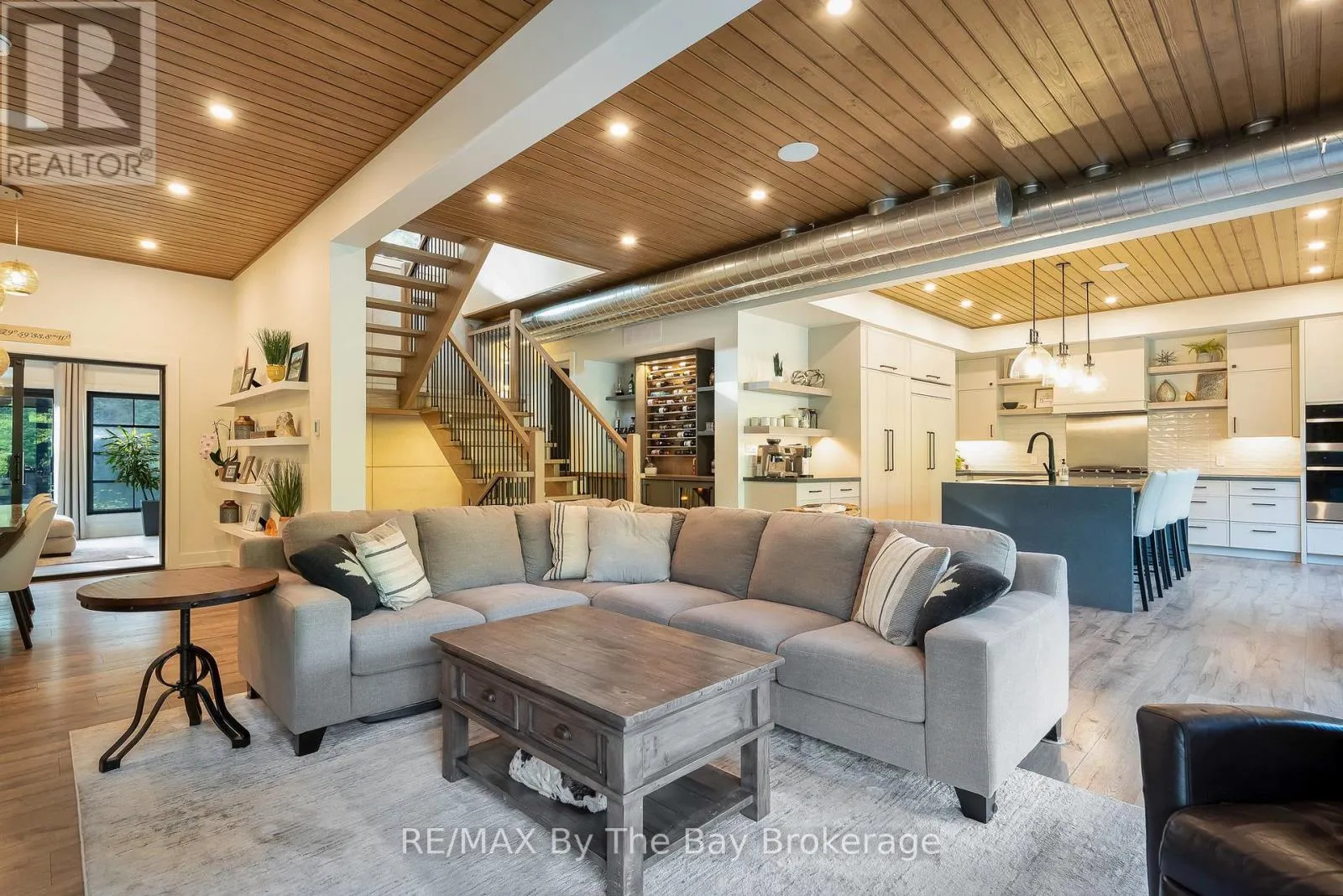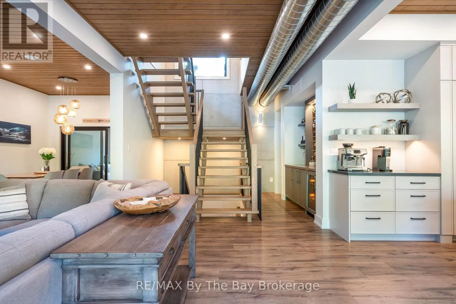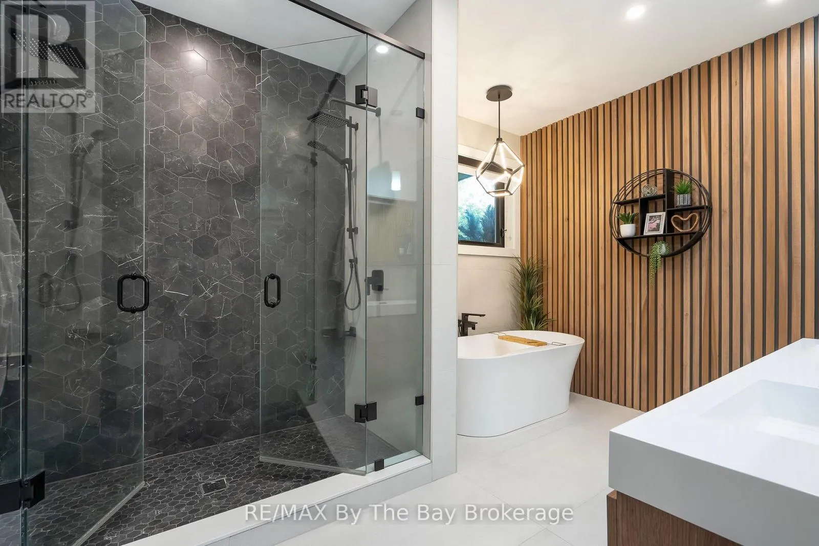 Cross Streets: River Road East and Eastdale Drive. ** Directions: River Road East turns into Eastdale Drive. Just steps from the sandy shores of Allenwood Beach on beautiful Georgian Bay, Experience refined west coast living at its' best complete with spectacular sunsets and water views in this extraordinary newer-built custom home with a 800sf legal apartment suite. Every detail of this exceptional fully finished 5,200 sf 5-bedroom, 7-bath masterpiece reflects thoughtful design, premium craftsmanship, and the perfect balance of modern luxury and natural tranquility. you'll be captivated by the architectural elegance and resort-style outdoor living spaces featuring multiple decks with hot tub and gas fireplace, gourmet outdoor kitchen, and a professionally landscaped private backyard oasis. Inside, the impressive open-concept main level showcases soaring ceilings with panoramic windows which embrace its' charming living room with wood-burning fireplace and dining area. The chefs kitchen is an entertainers dream, complete with custom cabinetry, Corian countertops, state-of-the-art appliances, large island for entertaining, coffee bar, and custom hidden pantry. main-floor primary suite, meanwhile the second-floor primary retreat boasts a spa-like ensuite, private balcony with hot tub, gas fireplace with breathtaking views of Georgian Bay. features include a wine bar, dedicated office, home gym, spacious family room, games room and living room with walkout of the lower level. The heated, insulated double garage with ample parking ensures both comfort and convenience. The self-contained legal apartment, finished to the same luxurious standard, an ideal space for extended family or premium rental income, with its own private yard. With easy access to the ski hills of Blue Mountain as well as all the amenities of Wasaga Beach, including dining, shopping, and entertainment, this residence offers the ultimate year-round luxury retreat where you can listen to the waves, watch spectacular sunsets over the sparkling waters of Georgian Bay and have the beach just a stones throw away. (id:27476)