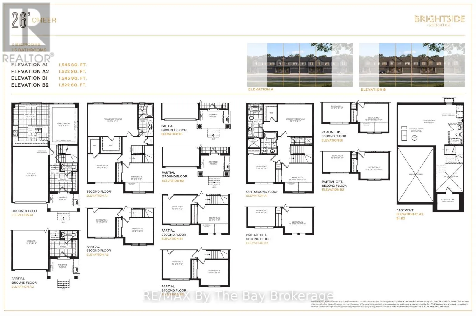 Cross Streets: Sunnidale and Sun Valley. ** Directions: Sunnidale Rd to Sun Valley Ave. To Be Built (2027) - Affordable living in the Brightside at River's Edge community. The 'Cheer' townhouse provides 3 bedrooms and 1.5 bathrooms with 1,545 sq ft. As you step inside the home, there is a spacious foyer with a double door closet and 2pc bathroom. The main living area is open concept with plenty of kitchen counter space and a large island with a breakfast bar. Upstairs, you'll find 3 spacious bedrooms and a 4pc bathroom. the primary bedroom 19'X12' has a large walk-in closet and access directly to the bathroom. Laundry is located in the basement. Sod and a paved driveway is included. (id:27476)