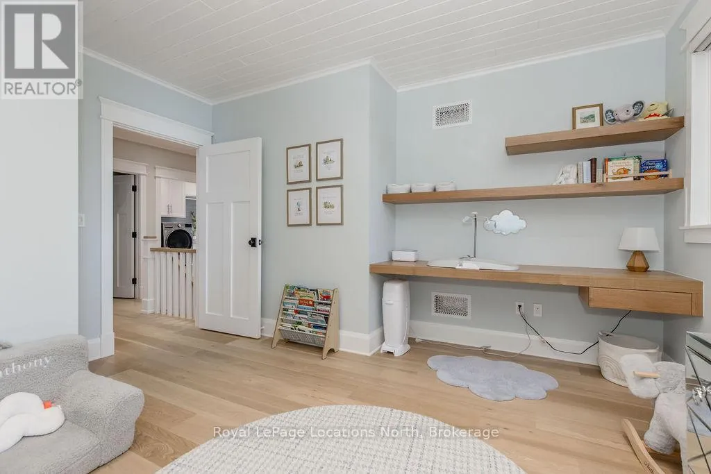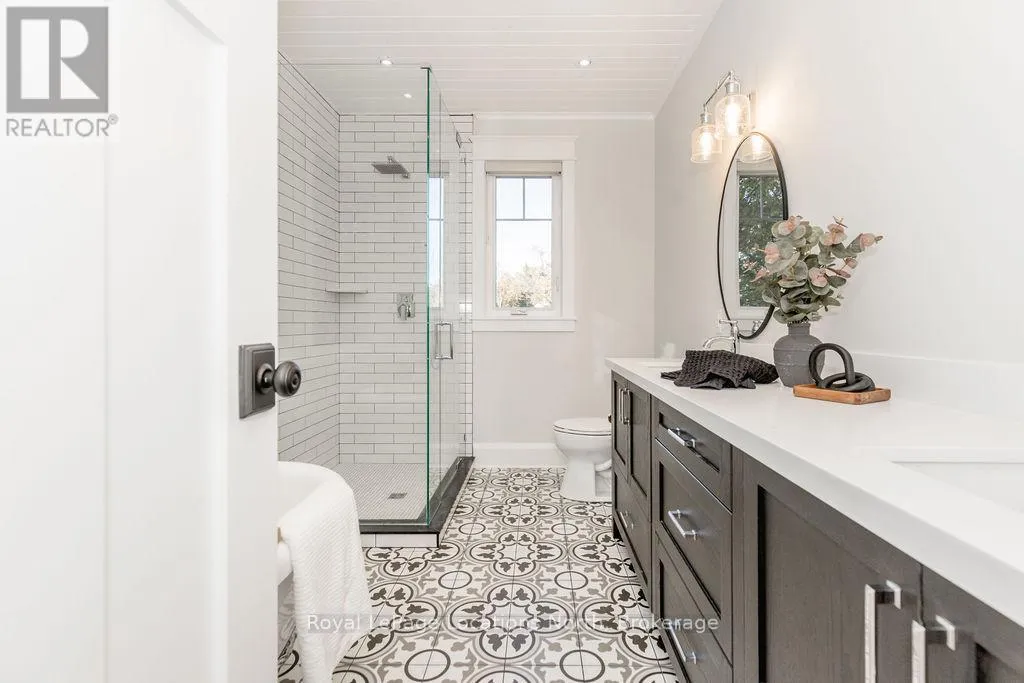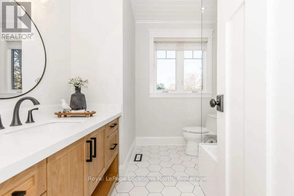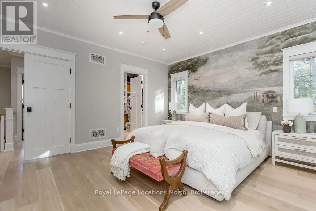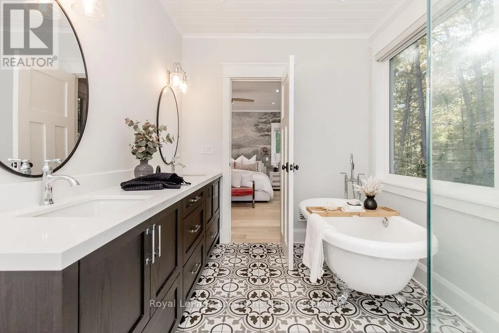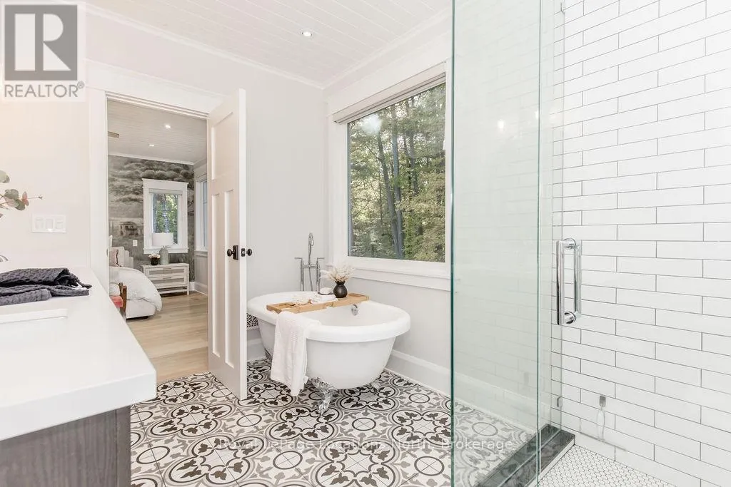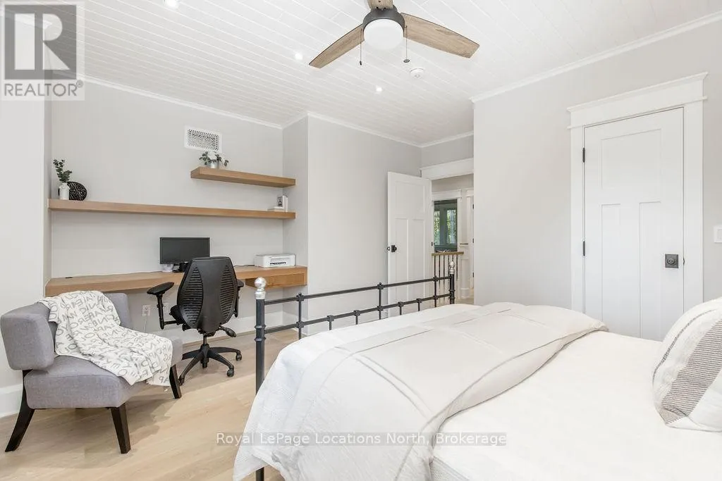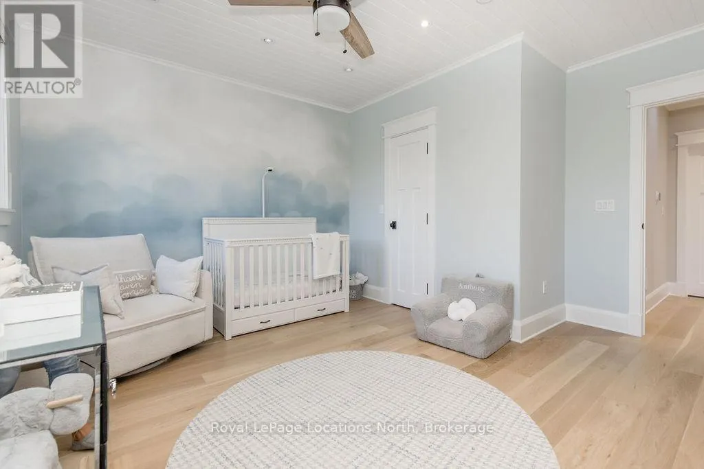Cross Streets: Mosley Street and Oxbow Park Drive. ** Directions: Mosley Street to Oxbow Park Drive. DREAM HOME WITH HEATED DRIVEWAY & WALKWAYS - Welcome to this stunning, custom-built 3 bed, 3 bath home showcasing exceptional craftsmanship, built in 2023, perfectly positioned backing onto protected land & directly across from the river in beautiful Wasaga Beach. Designed w/ a mix of modern luxury & timeless character, this home captures a century-home feel with its large mouldings, custom doors & wood beams w/ a custom-built stone fireplace accenting the main floor. Inside, the bright open-concept layout features wall-to-wall windows overlooking the forest, flooding the space w/ natural light. The custom kitchen is a true showpiece, showcasing a large quartz island, blue & white cabinetry, a mini wine fridge, & a full quartz backsplash. It's finished w/ a high-end signature line of Wi-Fi-enabled appliances, combining elegance & smart convenience for the modern homeowner. The dining area sits beside large windows, while the living room offers aged wood ceiling beams and tongue-and-groove ceilings that bring warmth & texture throughout along w/ the wide-plank white oak hardwood. Upstairs the hardwood stairs, lead to spacious bedrooms, each w/ custom walk-in closets, built-in desks, shiplap ceilings, & designer touches like wallpaper accents & skylights. The primary suite feels like a retreat, featuring a cozy fireplace, luxurious ensuite w/ floating tub, double quartz sinks, black cabinetry, & a walk-in closet w/ custom cabinetry & make up desk perfect for getting ready for the day.Luxury features include- Inside entry to garage with epoxy flooring + custom storage, hydronic in-floor heating, heated driveway & walkways while outdoors, enjoy the built-in BBQ, rubberized surfacing on patios w/ hot tub hook up, sprinkler system, & tranquil forest backdrop w/ cedar trees surround the patio for privacy.Interior features include motorized blinds, smart home system, security cameras, spray-foam insulation, high-efficiency boiler system, & a hard-wired generator. (id:27476)