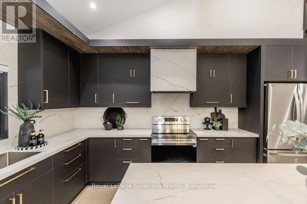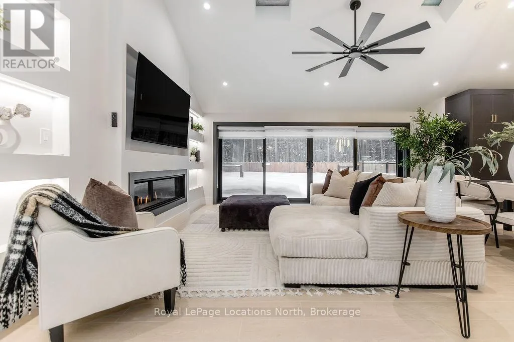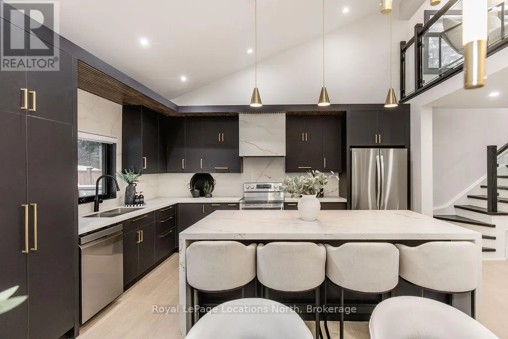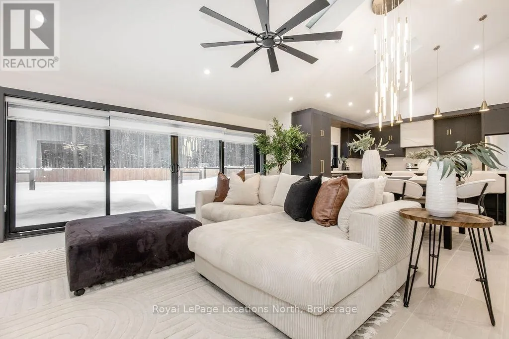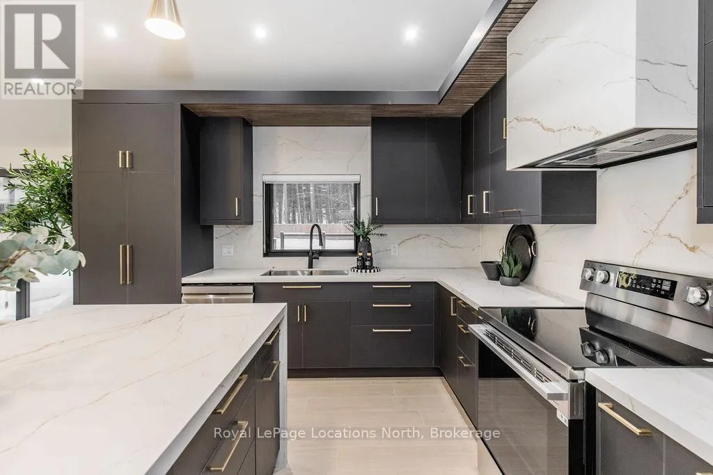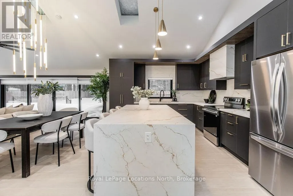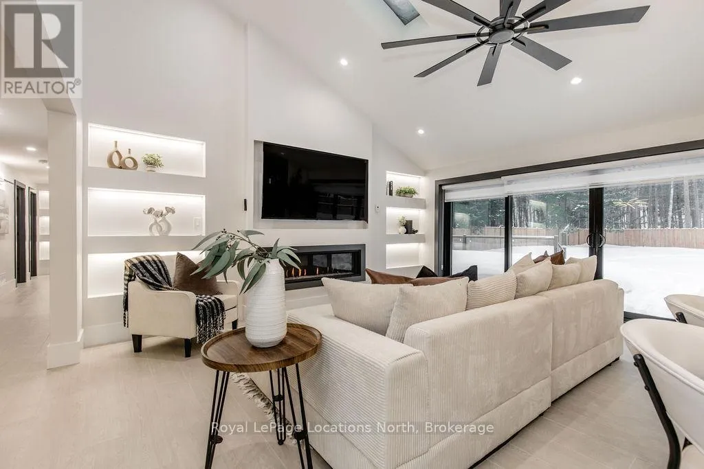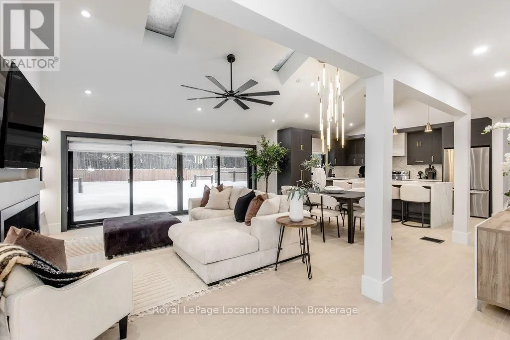 Cross Streets: River Road W and Bells Park Road. ** Directions: River Road W to Bells Park Road. This true ranch-style bungalow offers effortless, stair-free living with oversized sliding glass doors stretching across the family room, framing views of a large, fully fenced backyard that backs directly onto 56 acres of Crown land. With no rear neighbours, this is a rare setting where privacy, nature, and everyday convenience meet.The home offers over 2,300 sqft of living space on a generous 100' x 200' lot. An oversized garage with inside entry, paired with an open concept layout, makes this an ideal forever home. Outdoor enthusiasts will love the location- snowmobile trails just down the road, Marlwood Golf Course across the street, nearby hiking/snowshoeing trails and the world's longest freshwater beach only a 7-min drive. The primary bedroom is a true retreat, featuring vaulted ceilings, a cozy fireplace, sliding doors leading directly to the rear deck, and a high-end ensuite complete with a glass shower, floating soaker tub, and walk-in closet.The home has undergone extensive renovations throughout, including a brand new roof, soffits, fascia, exterior siding, windows, garage doors, and a new high-efficiency furnace with in-floor heating. Electrical, lighting, pot lights, and all interior flooring have been fully updated.The renovated kitchen showcases quartz countertops/backsplash, oversized island, custom cabinetry with pull-out organizers, a dedicated coffee bar, a built-in full-size wine fridge, and all new stainless steel appliances. Every bathroom has been fully renovated with modern fixtures and finishes.Upgrades include expansive new rear sliding doors, custom blinds, upgraded main-floor laundry with inside entry to garage, loft with a full bathroom and second family room with new TVs, an updated fireplace with custom built-ins, cathedral ceilings, skylights, and brand new tiered decks spanning the entire back of the home. The property is fully fenced with custom stone walkways, creating a private outdoor retreat you'll enjoy year-round. (id:27476)