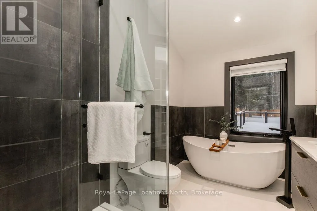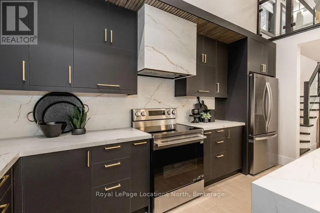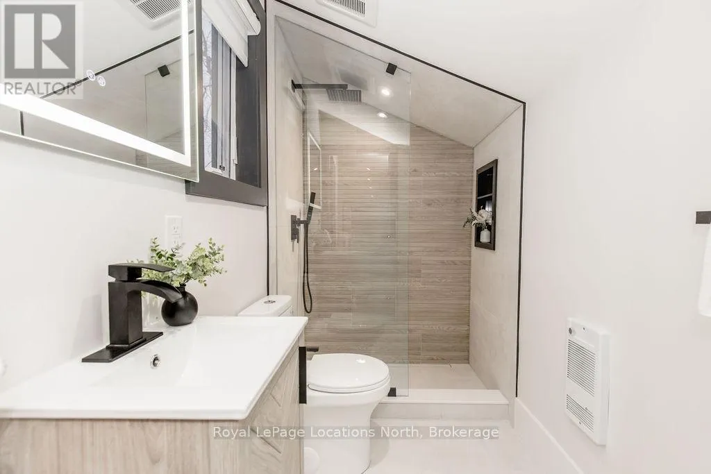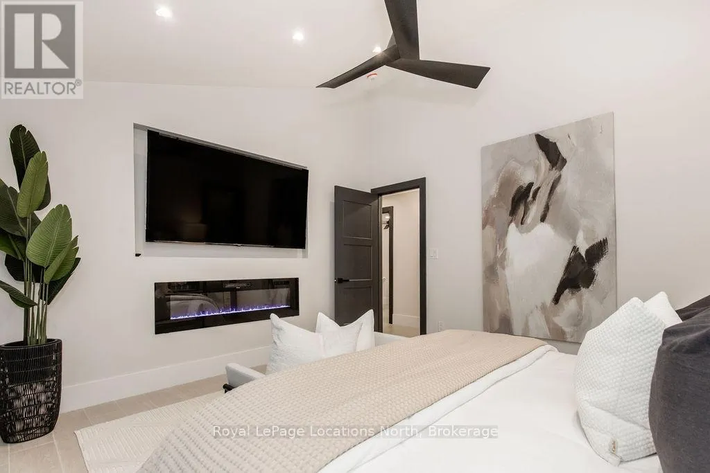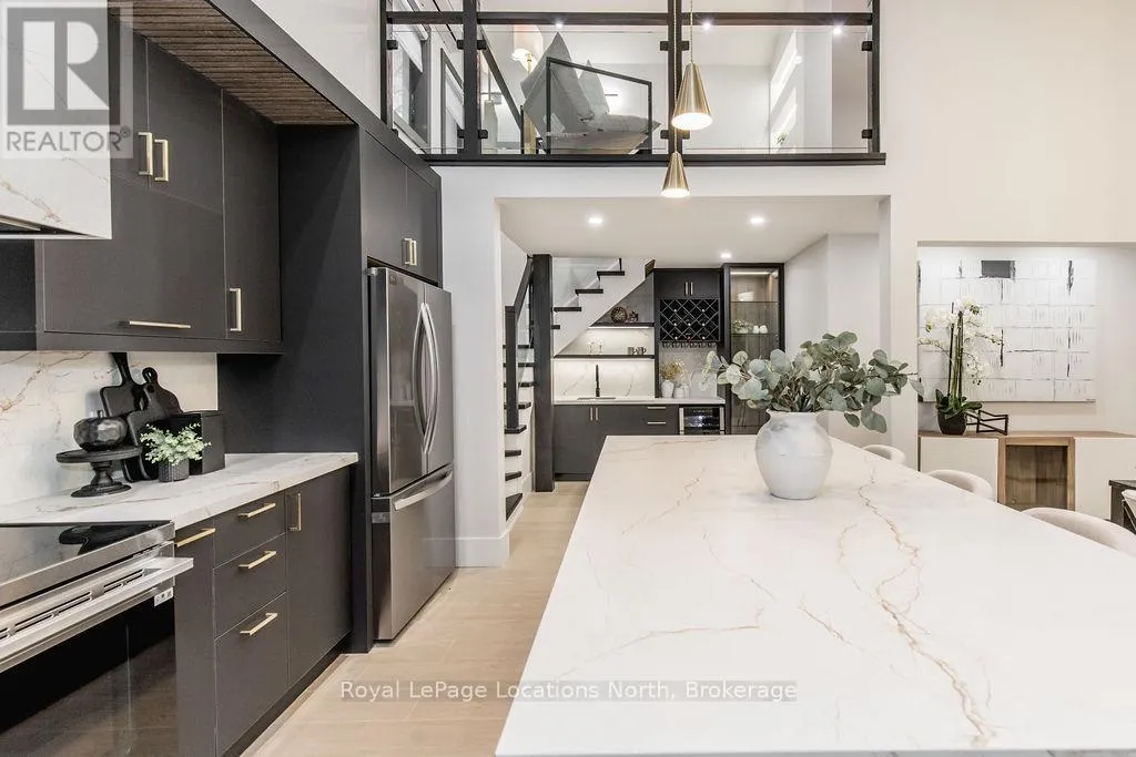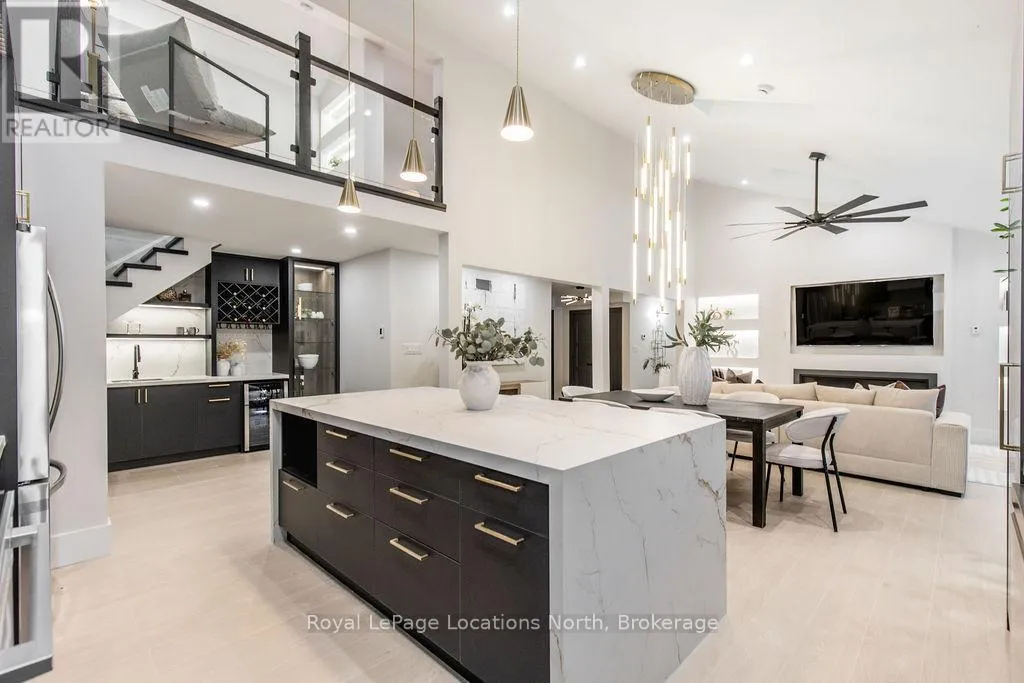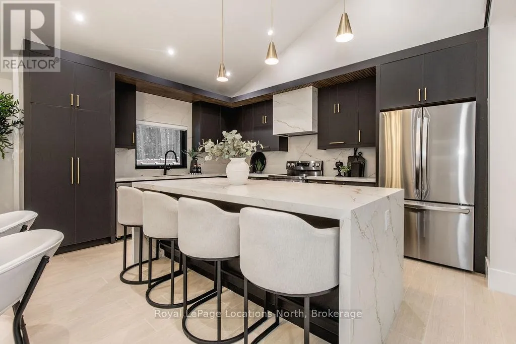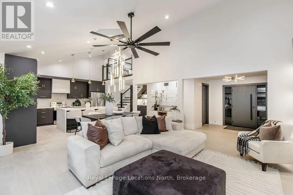 Cross Streets: River Road W and Bells Park Road. ** Directions: River Road W to Bells Park Road. This true ranch-style bungalow offers effortless, stair-free living with oversized sliding glass doors stretching across the family room, framing views of a large, fully fenced backyard that backs directly onto 56 acres of Crown land. With no rear neighbours, this is a rare setting where privacy, nature, and everyday convenience meet.The home offers over 2,300 sqft of living space on a generous 100' x 200' lot. An oversized garage with inside entry, paired with an open concept layout, makes this an ideal forever home. Outdoor enthusiasts will love the location- snowmobile trails just down the road, Marlwood Golf Course across the street, nearby hiking/snowshoeing trails and the world's longest freshwater beach only a 7-min drive. The primary bedroom is a true retreat, featuring vaulted ceilings, a cozy fireplace, sliding doors leading directly to the rear deck, and a high-end ensuite complete with a glass shower, floating soaker tub, and walk-in closet.The home has undergone extensive renovations throughout, including a brand new roof, soffits, fascia, exterior siding, windows, garage doors, and a new high-efficiency furnace with in-floor heating. Electrical, lighting, pot lights, and all interior flooring have been fully updated.The renovated kitchen showcases quartz countertops/backsplash, oversized island, custom cabinetry with pull-out organizers, a dedicated coffee bar, a built-in full-size wine fridge, and all new stainless steel appliances. Every bathroom has been fully renovated with modern fixtures and finishes.Upgrades include expansive new rear sliding doors, custom blinds, upgraded main-floor laundry with inside entry to garage, loft with a full bathroom and second family room with new TVs, an updated fireplace with custom built-ins, cathedral ceilings, skylights, and brand new tiered decks spanning the entire back of the home. The property is fully fenced with custom stone walkways, creating a private outdoor retreat you'll enjoy year-round. (id:27476)