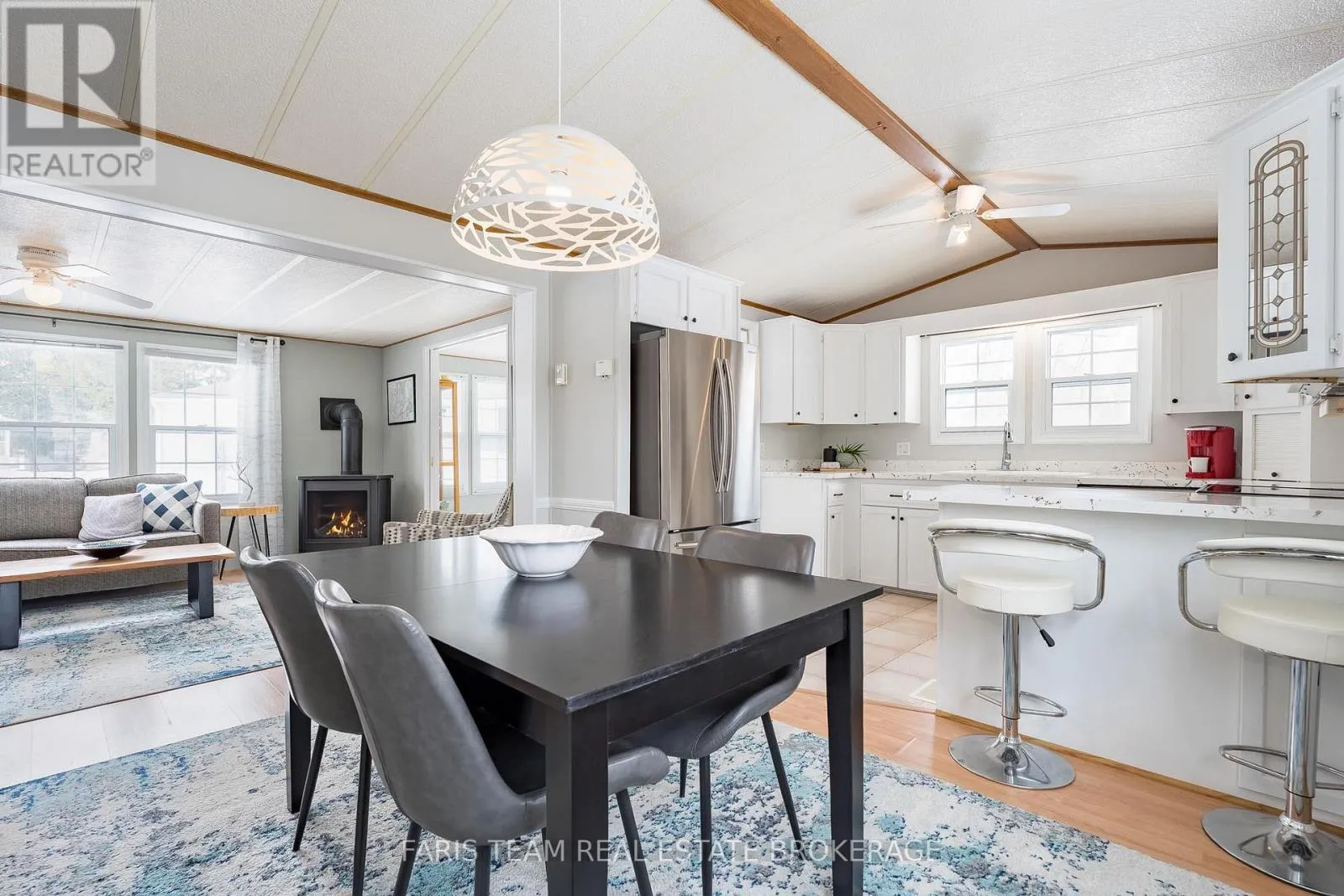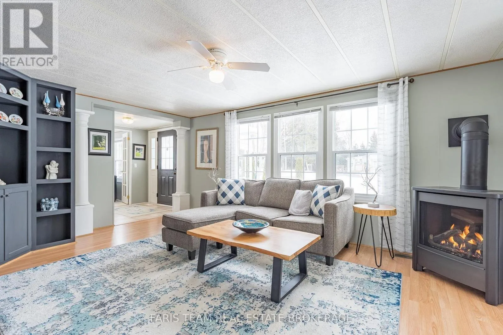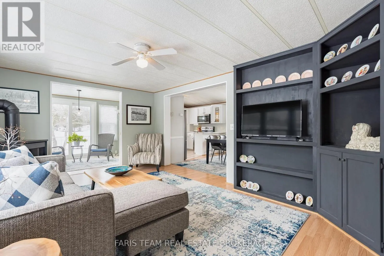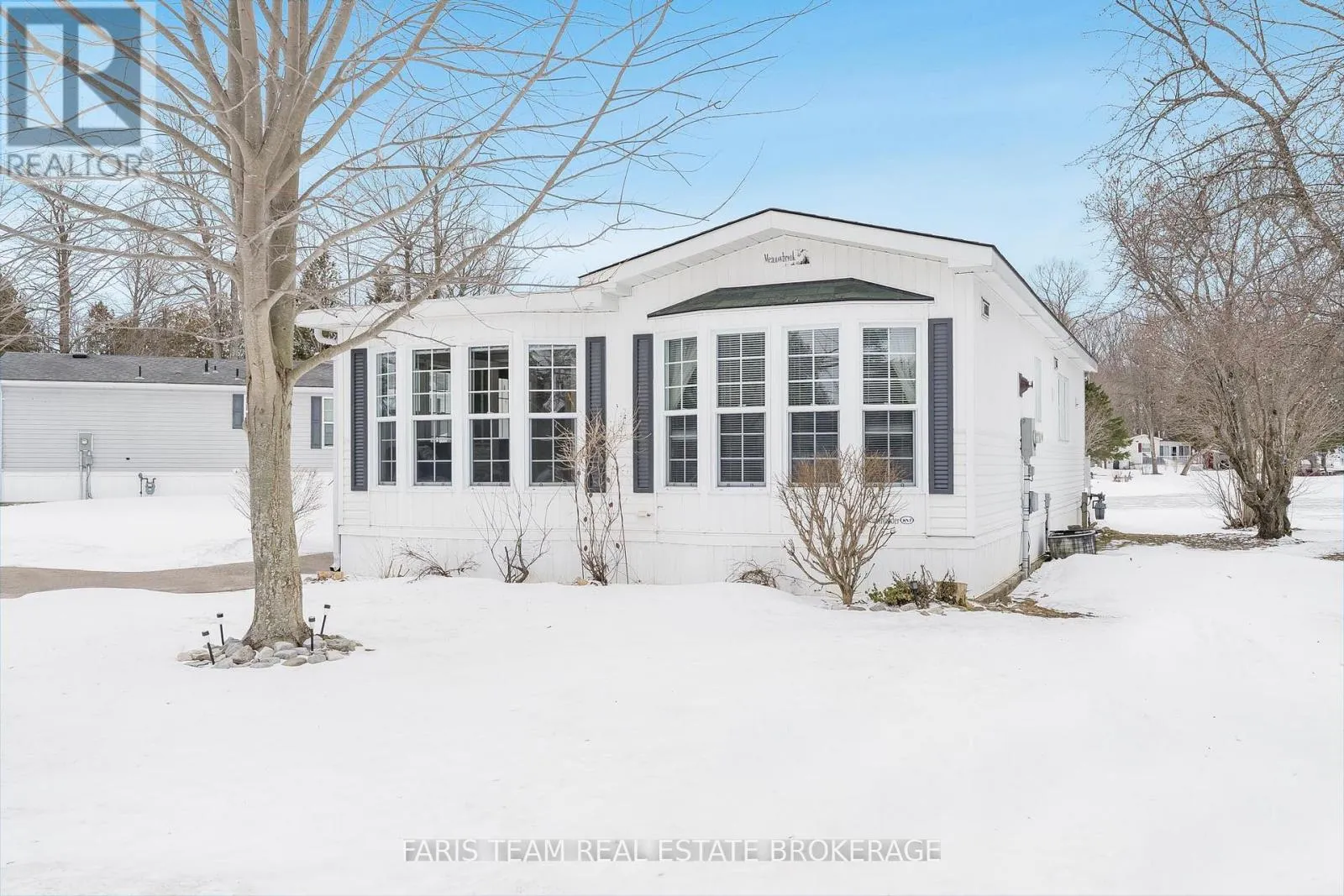 Indiana Ave/The Boardwalk Top 5 Reasons You Will Love This Home: 1) Tastefully updated two bedroom home located in the sought-after 55+ Parkbridge community in Wasaga Beach, offering a relaxed, low-maintenance lifestyle within a tight-knit community 2) Savour the peaceful views of the pond off of your spacious back deck, while only being steps away from a private recreation centre offering a heated indoor pool, fitness studio, library, billiards, bocce ball courts, horseshoe pits, and walking trails 3) Enjoy the benefit of key updates including the kitchen countertops (2021), a beautiful gas fireplace (2023), and a new sliding glass-door (2025) 4) Retreat to the spacious primary bedroom boasting an array of sun-filled windows that create a bright and airy ambiance, while the second bedroom features a built-in desk and cabinetry 5) Appreciate the convenience of living just minutes from beautiful sunsets along Georgian Bay, with easy access to Walmart, restaurants, shopping, and entertainment in Wasaga Beach, all while being only a 30 minute drive to Barrie. 1,092 fin.sq.ft. (id:27476)