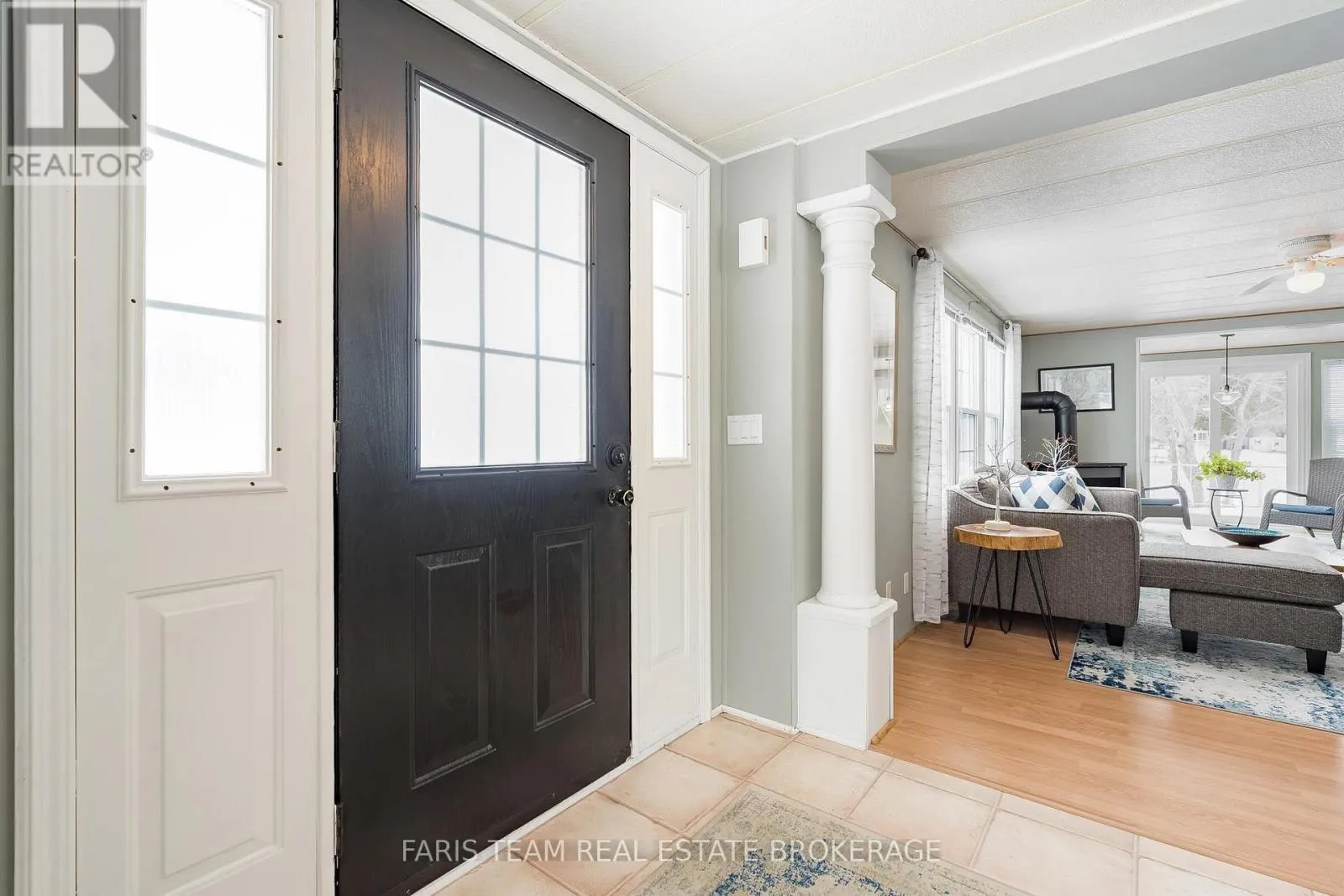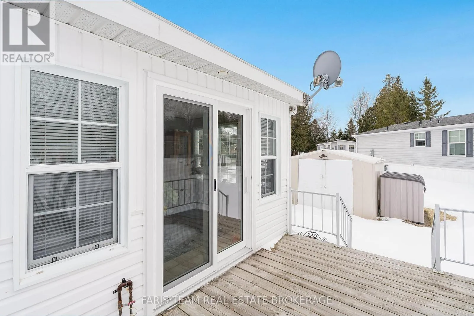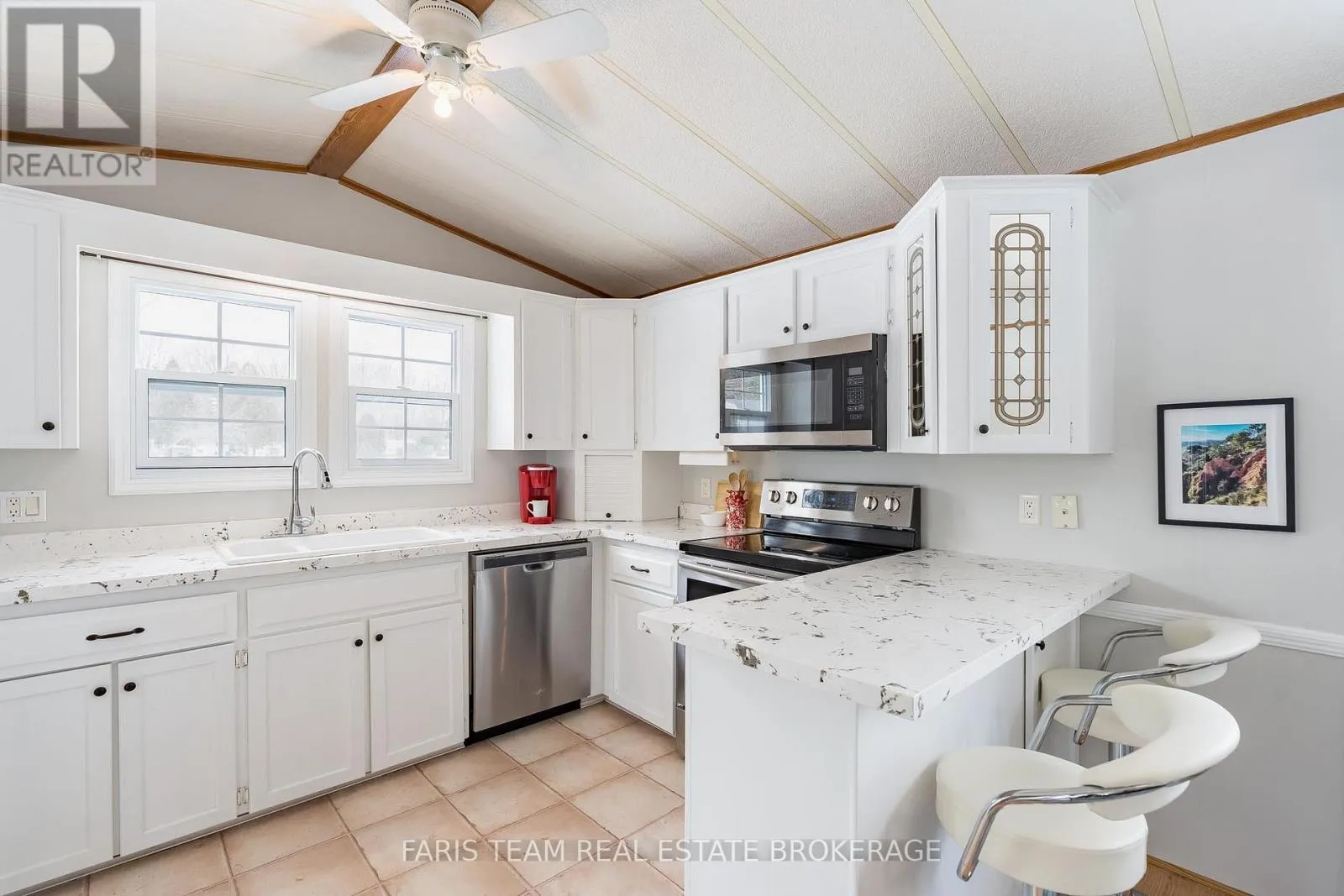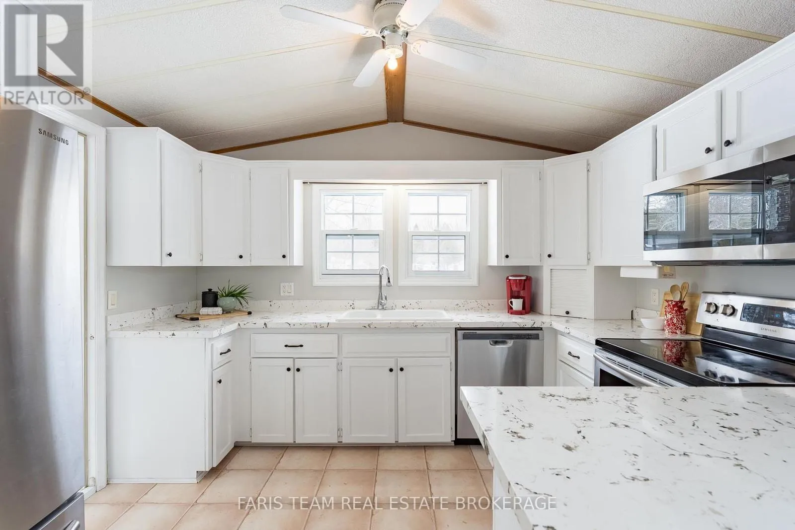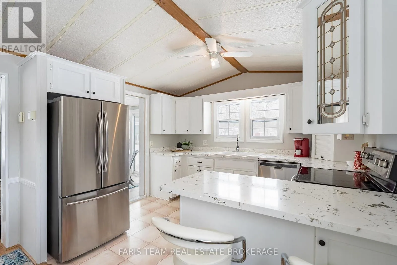 Indiana Ave/The Boardwalk Top 5 Reasons You Will Love This Home: 1) Tastefully updated two bedroom home located in the sought-after 55+ Parkbridge community in Wasaga Beach, offering a relaxed, low-maintenance lifestyle within a tight-knit community 2) Savour the peaceful views of the pond off of your spacious back deck, while only being steps away from a private recreation centre offering a heated indoor pool, fitness studio, library, billiards, bocce ball courts, horseshoe pits, and walking trails 3) Enjoy the benefit of key updates including the kitchen countertops (2021), a beautiful gas fireplace (2023), and a new sliding glass-door (2025) 4) Retreat to the spacious primary bedroom boasting an array of sun-filled windows that create a bright and airy ambiance, while the second bedroom features a built-in desk and cabinetry 5) Appreciate the convenience of living just minutes from beautiful sunsets along Georgian Bay, with easy access to Walmart, restaurants, shopping, and entertainment in Wasaga Beach, all while being only a 30 minute drive to Barrie. 1,092 fin.sq.ft. (id:27476)