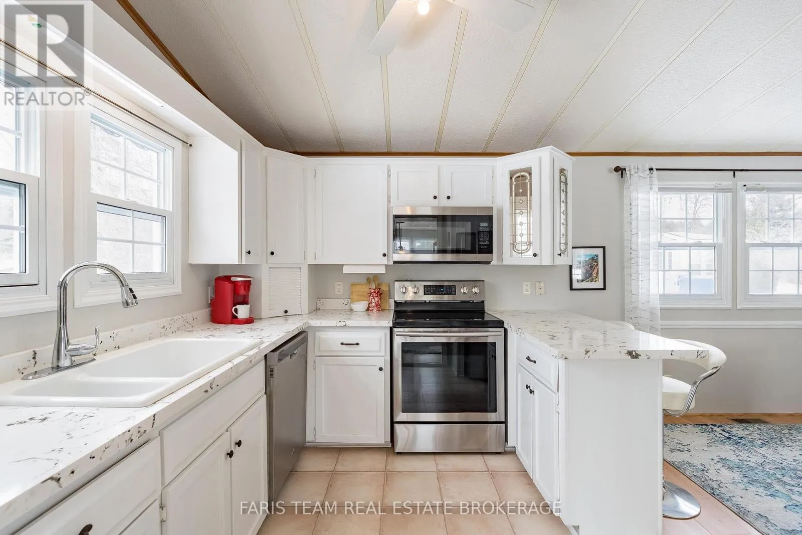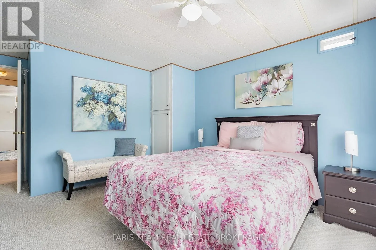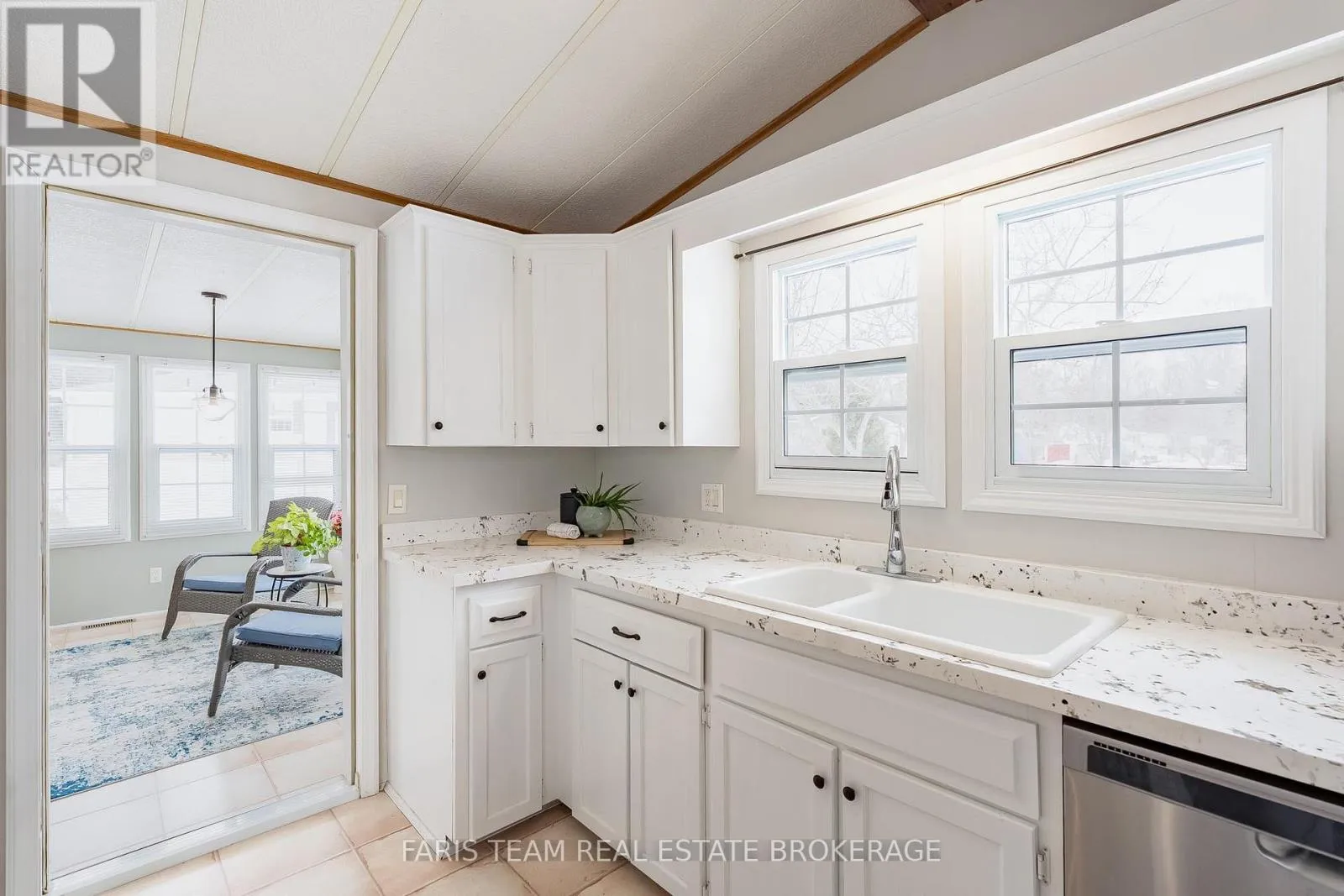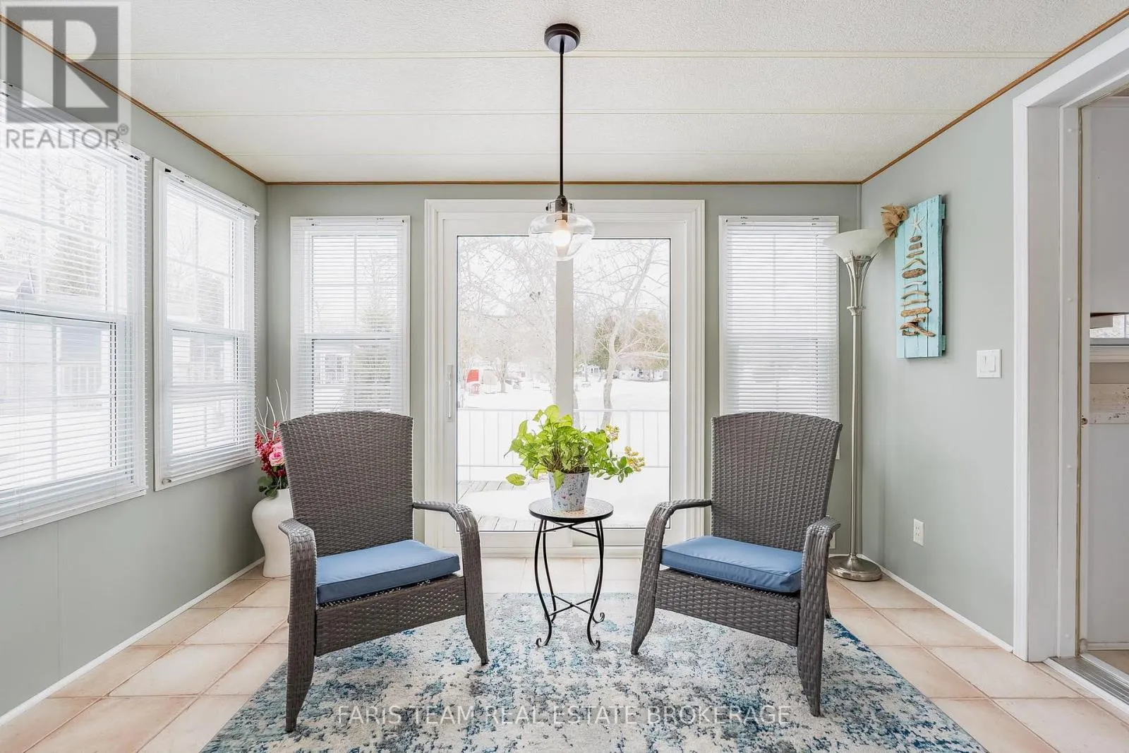 Indiana Ave/The Boardwalk Top 5 Reasons You Will Love This Home: 1) Tastefully updated two bedroom home located in the sought-after 55+ Parkbridge community in Wasaga Beach, offering a relaxed, low-maintenance lifestyle within a tight-knit community 2) Savour the peaceful views of the pond off of your spacious back deck, while only being steps away from a private recreation centre offering a heated indoor pool, fitness studio, library, billiards, bocce ball courts, horseshoe pits, and walking trails 3) Enjoy the benefit of key updates including the kitchen countertops (2021), a beautiful gas fireplace (2023), and a new sliding glass-door (2025) 4) Retreat to the spacious primary bedroom boasting an array of sun-filled windows that create a bright and airy ambiance, while the second bedroom features a built-in desk and cabinetry 5) Appreciate the convenience of living just minutes from beautiful sunsets along Georgian Bay, with easy access to Walmart, restaurants, shopping, and entertainment in Wasaga Beach, all while being only a 30 minute drive to Barrie. 1,092 fin.sq.ft. (id:27476)