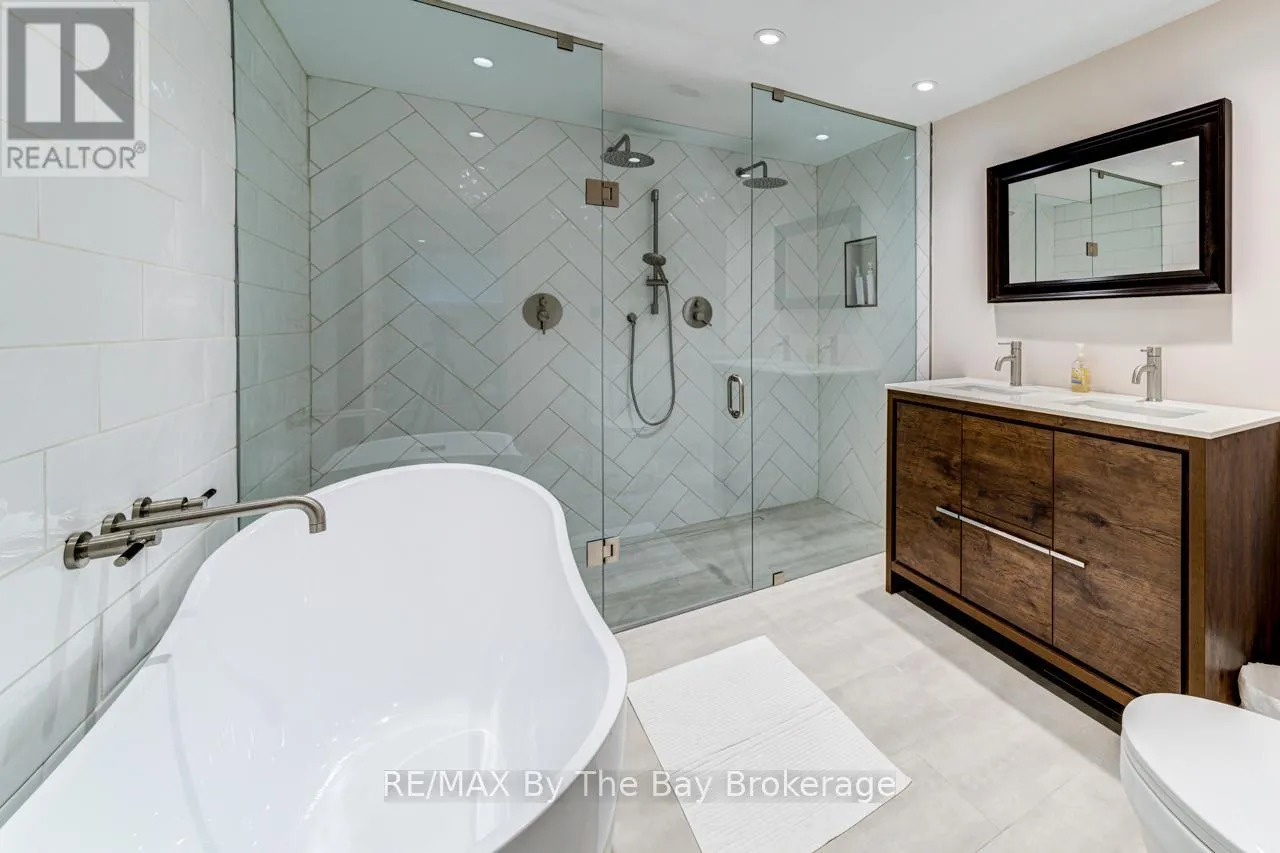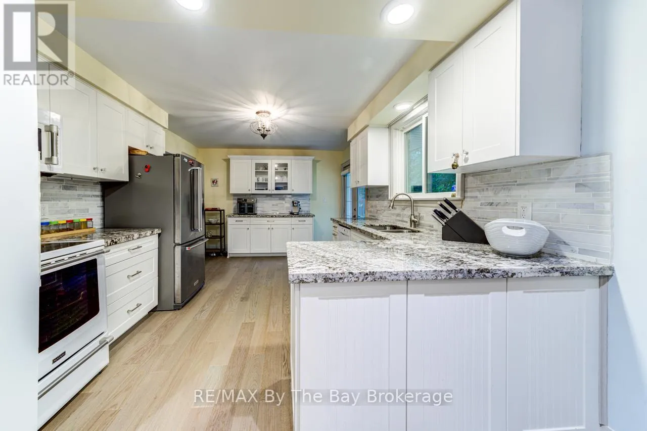 Wildwood and Rodrium Discover refined living in this meticulously upgraded 4-bedroom home, set on a nearly half-acre, mature tree-lined lot in one of Wasaga's most coveted neighborhoods. This residence combines space, privacy, and convenience, showcasing a significant investment in luxury and craftsmanship. Recent upgrades from 2021-2025 include: 1. an updated electrical system (2025) with new panel, breakers, and ESA-certified inspection; 2. a new high-efficiency hot water heater; 3. a complete exterior waterproofing system with full home wrap and weeping tile for preventative maintenance; 4. an oversized gutter system throughout the home; 5. two fully remodeled spa-inspired bathrooms with oversized tubs, heated floors, floor-to-ceiling imported tile, and barrier-free showers; 6. new drywall and smooth ceilings with the removal of popcorn finishes; 7. new door frames, baseboards, and trim throughout; 8. a premium top-of-the-line washer and dryer; 9. a new roof with shingles, plywood, and ridge vent system; 10. an epoxy floor system and new storage room in the basement; 11. a professionally installed security system with complete perimeter camera coverage; 12. pot lights throughout the interior along with a full exterior lighting system; 13. a Wi-Fi connected irrigation system for effortless lawn and garden care and;14. new engineered hardwood flooring throughout, creating a modern, stylish, and highly functional living environment. Located in a prime Wasaga neighborhood, this home offers tranquility with the convenience of nearby shopping, restaurants, and beaches. From spa-like bathrooms to advanced home systems, every detail highlights a commitment to exceptional living. Don't miss the opportunity to own this extraordinary home. (id:27476)