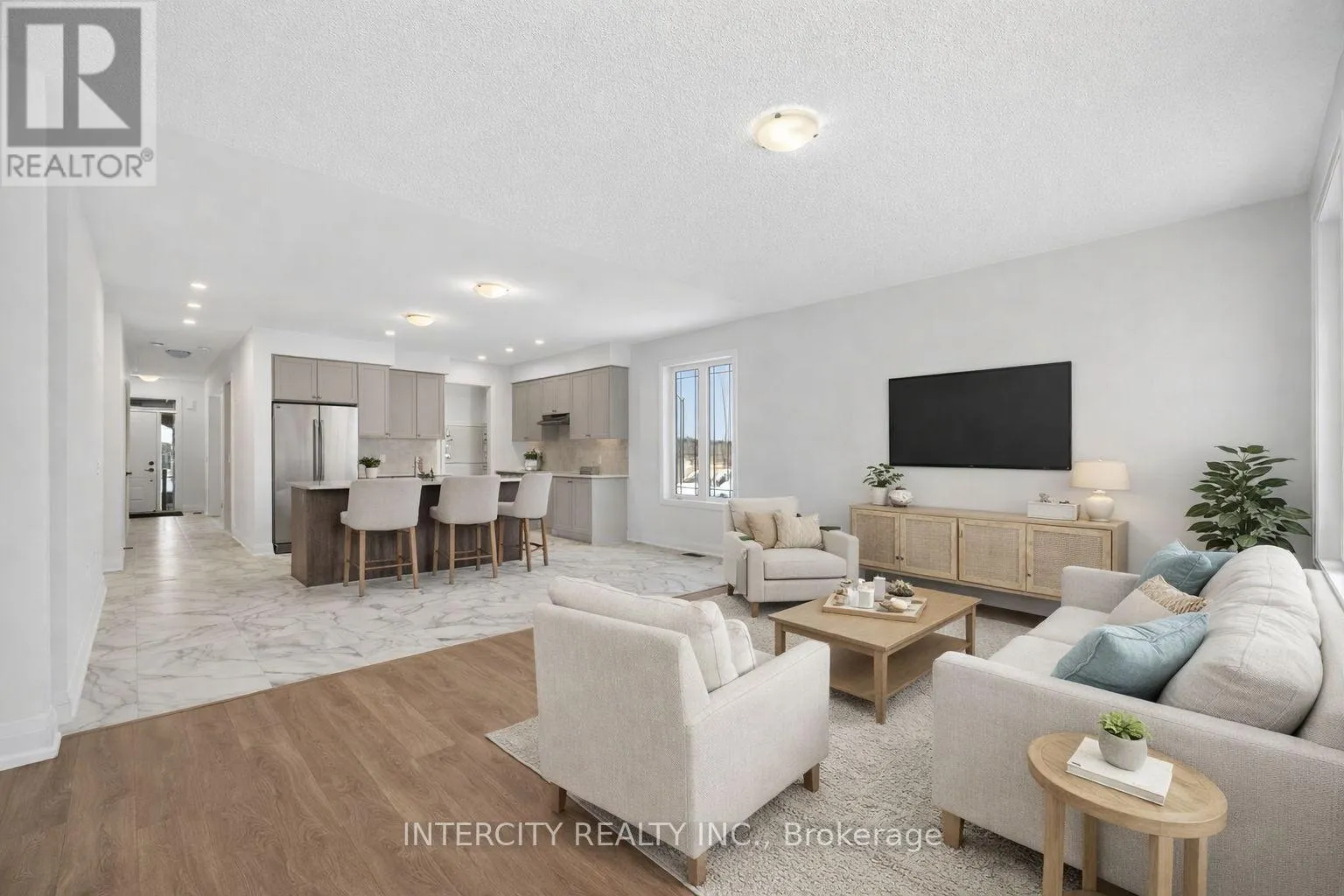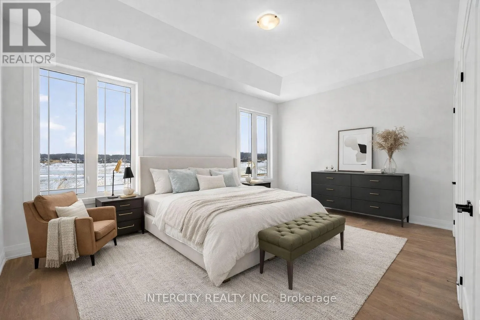 Cross Streets: Sunnidale Rd & Central Square Blvd. ** Directions: Legacy and Central Square Blvd. Step into modern elegance with this sun-drenched, never-lived-in 1,966 sq. ft. (builder's plan) bungalow home! This property is a masterclass in contemporary style, boasting a bright open-concept layout where massive windows flood every corner with natural light. The chef-inspired kitchen is an entertainer's dream, featuring a dedicated servery and a spacious walk-in pantry-the perfect footprint for a custom coffee bar or wine station-complete with stone countertops, enhanced cabinetry, deep upper cabinets above the fridge, a sleek undermount rectangular sink, and a stylish backsplash carried through both the kitchen and servery. The main floor is finished with upgraded tile flooring and pot lights in the kitchen, adding both warmth and functionality to the space. Retreat to the private primary suite, highlighted by sophisticated tray ceilings and a spa-like ensuite featuring a double sink vanity, upgraded cabinetry, and an enhanced soaker tub. The main bathroom is also finished with upgraded cabinetry, completing the home with thoughtful, elevated details throughout. Nestled in a premier master-planned hub with a school already built, you'll enjoy future amenities including scenic trails, shops, and vibrant parks. Experience the perfect blend of luxury and community, all just minutes from the world-famous beach! With a 2-car garage and sitting on an oversized lot, this home is ready for its very first owners. Some photos have been virtually staged for illustrative purposes only. (id:27476)