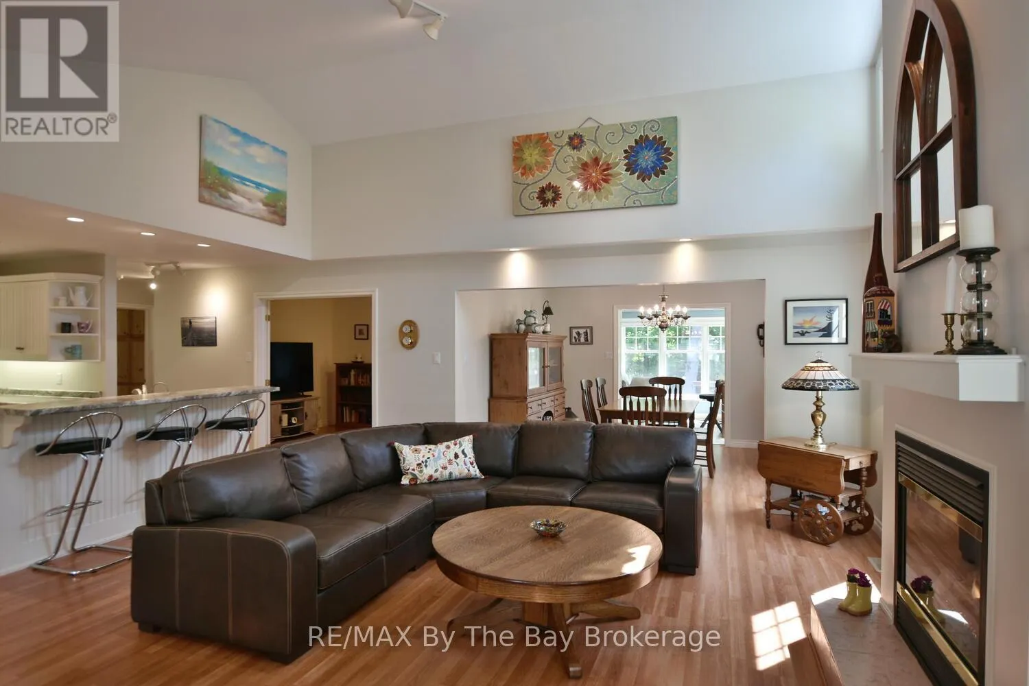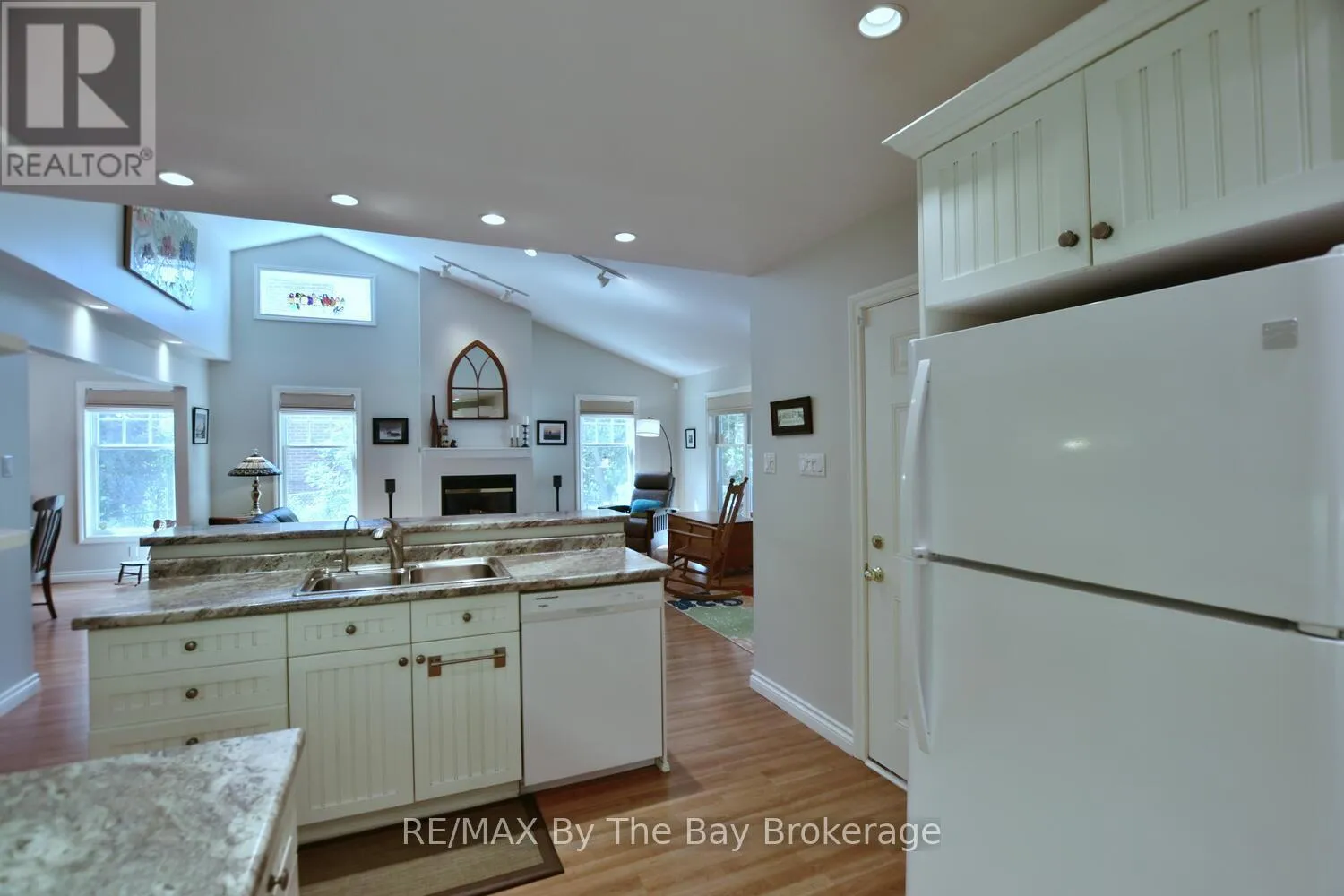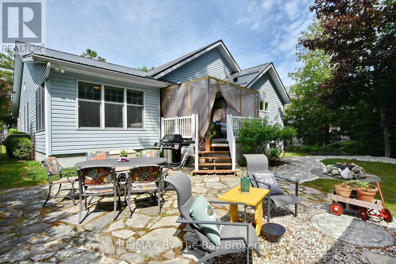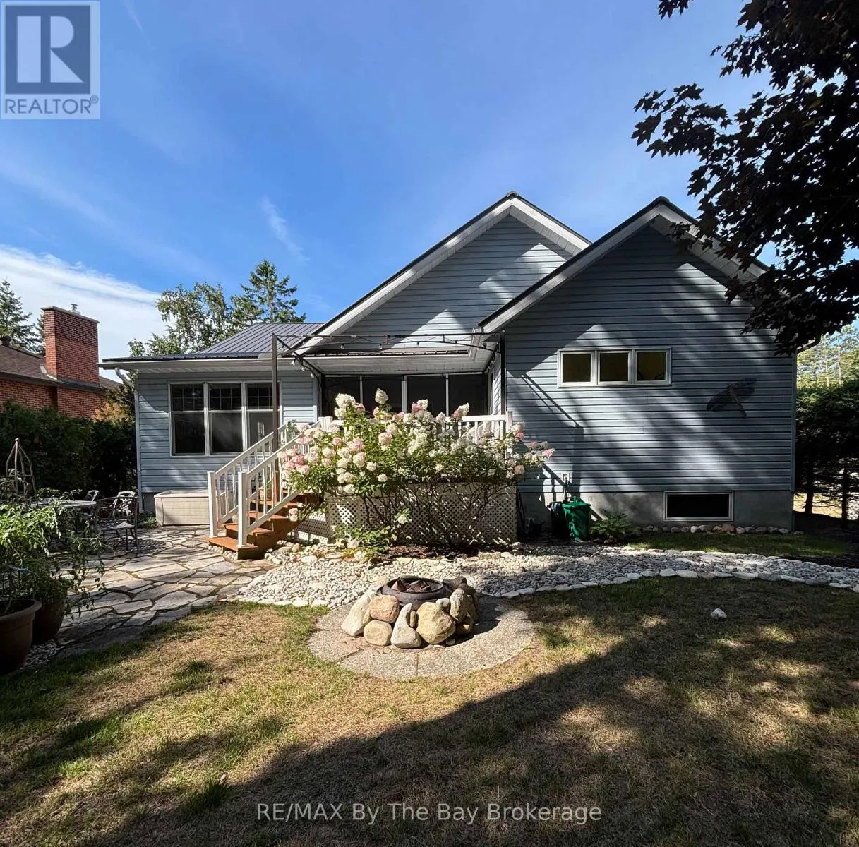 Cross Streets: Eastdale Drive and River Road East. ** Directions: River Road East to Eastdale Drive. Welcome to this charming 3 bedroom home just steps away from the beautiful shores of Georgian Bay/Allenwood beach and close to all amenities of Wasaga Beach. Enjoy this creative custom built floor plan with living space all on one floor featuring an open concept kitchen, living room with cathedral ceilings and gas fireplace and adjoining dining room. Large primary bedroom with ensuite and walk in closet, spacious second bedroom, 3 piece bath with main floor laundry, and additional bedroom currently being used as a den/tv room. There is a family room with bright windows and also a screened in covered porch with an attached deck, large flagstone patio and fully fenced private back yard. This home also offers a fully accessible extra high crawl space (5'8") that is heated and air conditioned for lots of storage, 2 car garage with inside entry, large driveway for extra parking and just steps away from the closest path to the beach. Forced air gas furnace (2022) water heater (2024) and updated steel roof. Whether it's viewing sunsets from the charming front porch or spending time around the fire in the private backyard this low maintenance home can be enjoyed in every season. (id:27476)