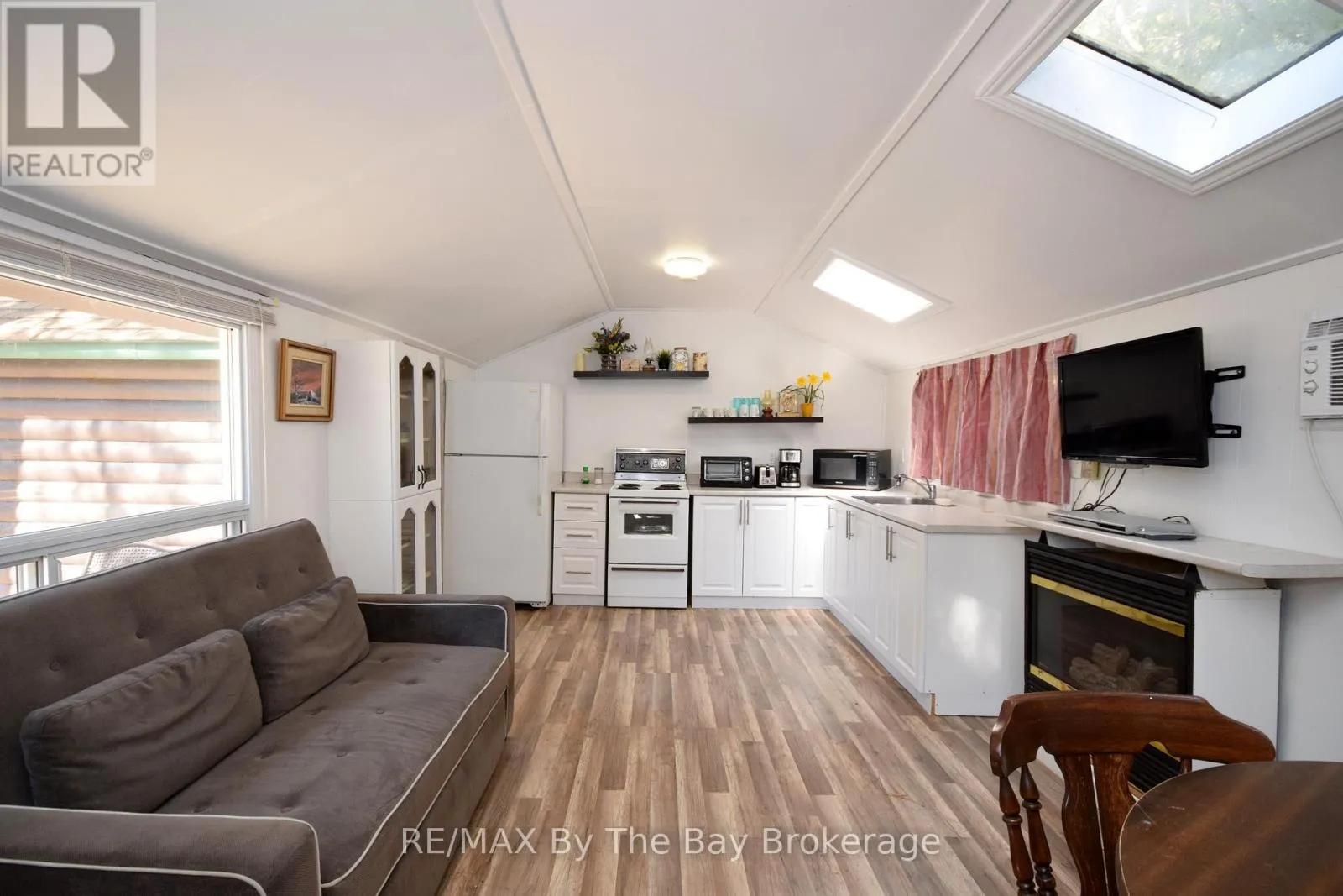 Cross Streets: Eastdale Dr. ** Directions: Follow River Rd East, Left onto Eastdale Dr, Left onto Bluewater Lane. Charming Beachside Cottage in New Wasaga & Allenwood Beach. Spend your summers just steps from the sparkling shoreline of Georgian Bay in this cozy, character-filled cottage. Perfectly positioned with a close proximity to the beach, you will be able to hear the waves and see the colours of the sunset in the skyline from the front porch. Enjoy a beach day just moments from your door, or explore the walkable beach area surroundings. This efficient property features parking for up to four vehicles, a peaceful outdoor space, and an efficiently designed interior with an open-concept living room, kitchen, and dining nook. Inside, you'll find a bright and airy atmosphere with skylights, two wall-mounted A/C units, and a propane fireplace for cooler evenings. The cottage includes a private bedroom, a 3-piece bathroom, and the option for the cottage to come furnished for a move-in-ready experience. Two convenient storage sheds are also included. With the potential to rebuild or expand (pending municipal and NVCA approval and applicable variance), this property offers not only a relaxing escape but also future improvement possibilities. Just a short drive to the shops at Stonebridge Town Centre, the new Wasaga Beach Arena and Library, and the upcoming revitalization of Beach Area Onethis is a rare opportunity to own a piece of beachside property to start enjoying summer at the beach! (id:27476)