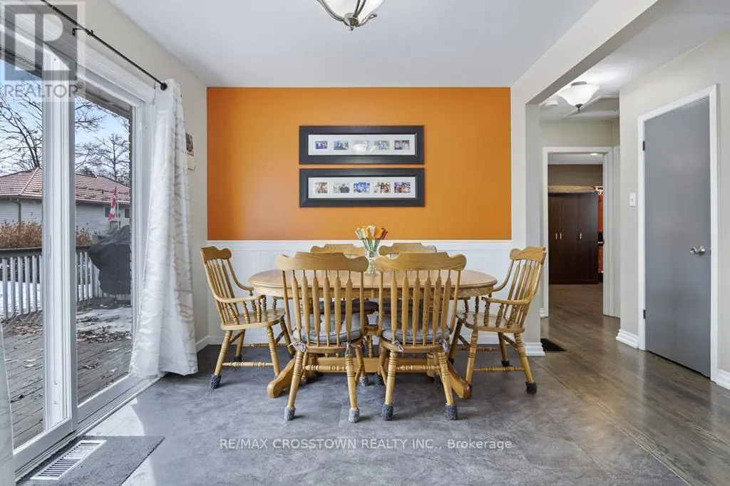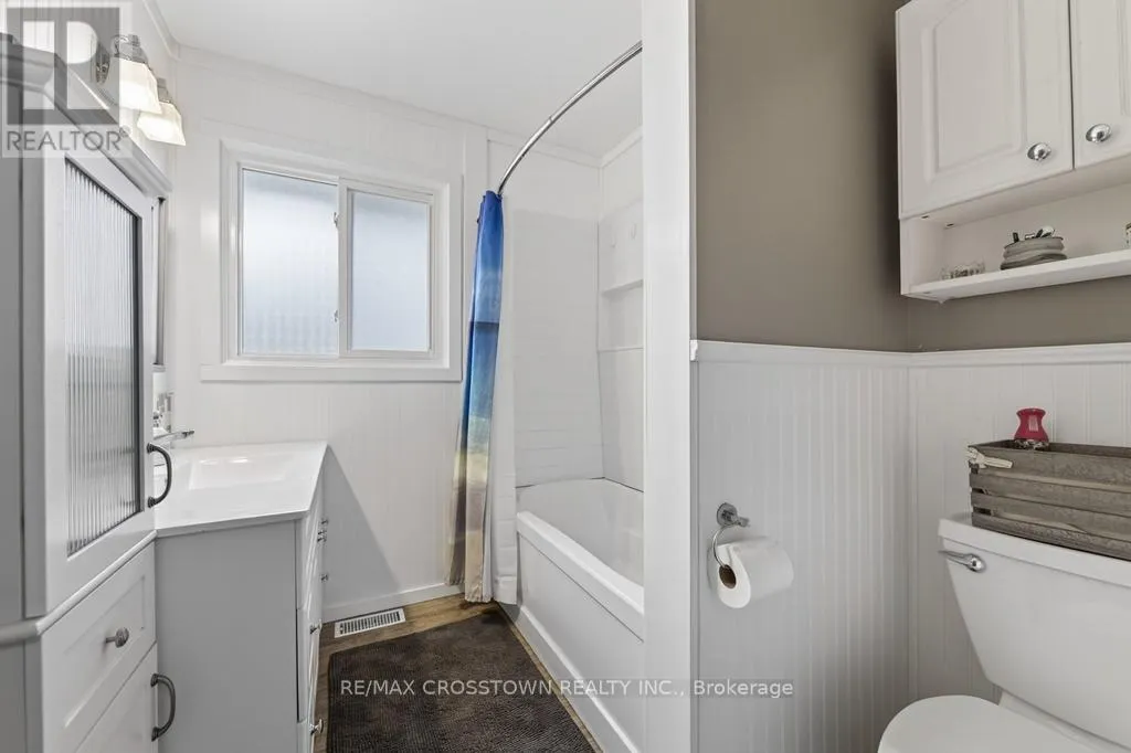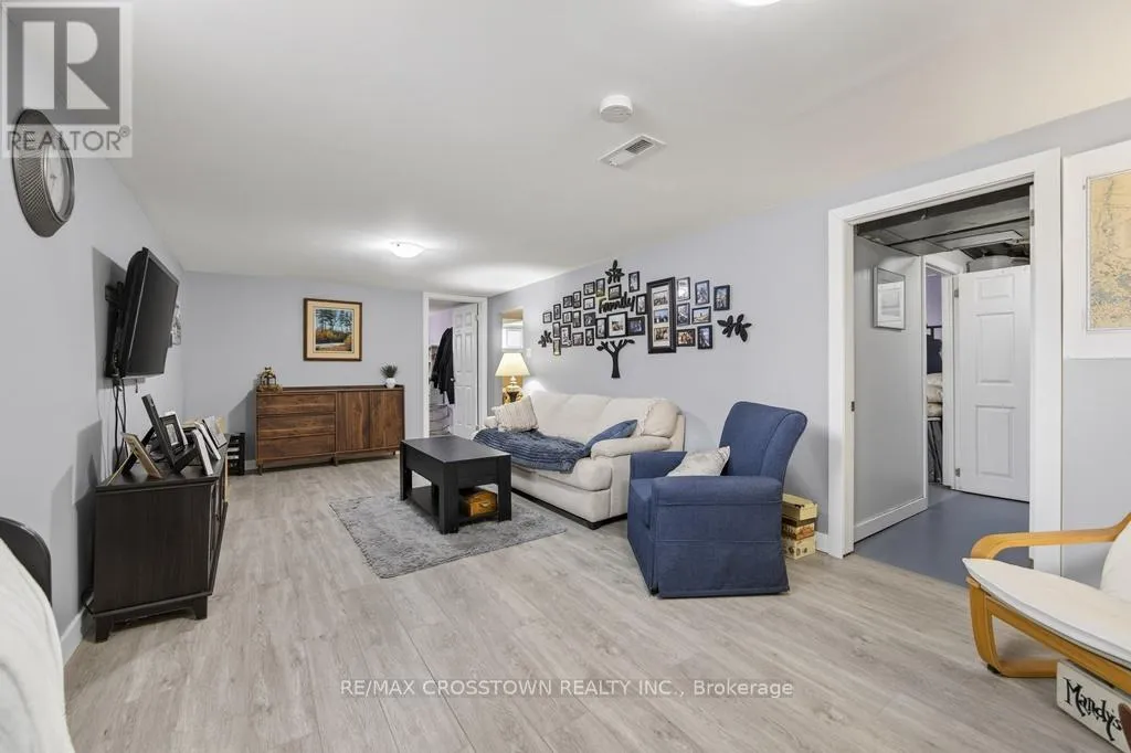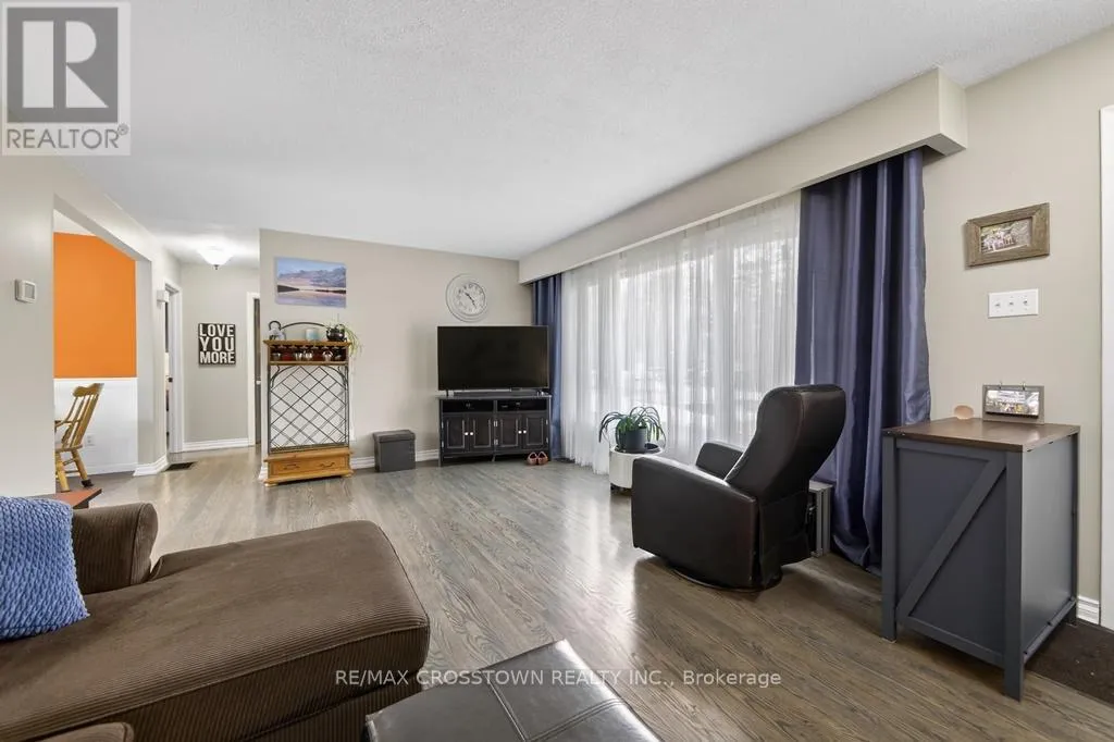 Cross Streets: River Road West / Smallman Drive. ** Directions: River Road West to Smallman Drive. Nice traditional family oriented 2+2 bedroom all brick bungalow with a finished basement situated on almost a acre mature lot situated in an excellent neighbourhood in Wasaga Beach. Please NOTE: this property also has an excellent opportunity for lot severance potential as it fronts on Smallman Drive and the Cul-de-sac of Fatima Court with a lot depth of over 200 feet. Large kitchen leads to spacious eating area accented with vinyl plank flooring and a rear patio walkout to the huge rear yard and 10'x20' deck. Large main livingroom has original hardwood floors (professionally refinished) and a beautiful bright front window. Bedrooms also have original refinished hardwood floors and a main bath with a shower insert and wainscoting accents. Well maintained and updated with; windows (2011), shingles (2012), central air (2017), electrical panel (2022), new gas furnace (2025). Double attached garage with door opener, inside entry and a rear maintenance door plus a driveway for 6 more cars. Lower level has a finished family room, 2 more good sized bedrooms, laundry, large storage room and separate utility room. Hot tub (as-is), firepit and 2 garden sheds included. Close to; the beach, schools, parks, public transit, nature areas, soccer fields, new recreation centre and library, restaurants and shopping. (id:27476)