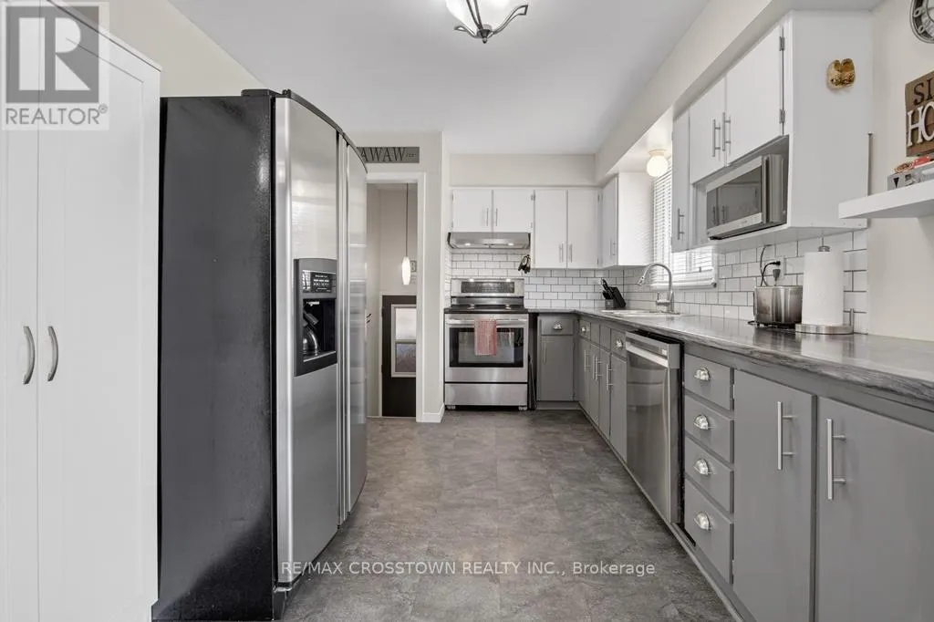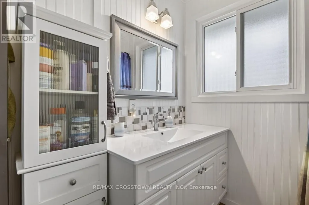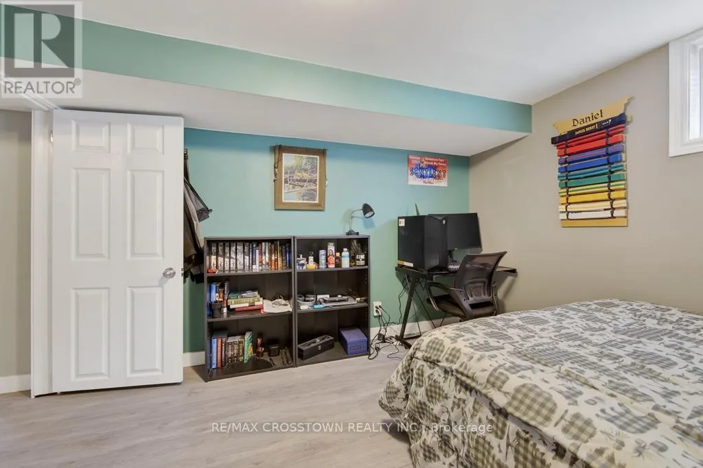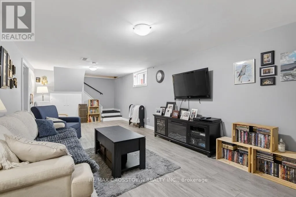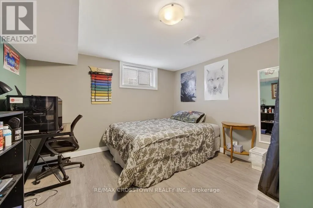 Cross Streets: River Road West / Smallman Drive. ** Directions: River Road West to Smallman Drive. Nice traditional family oriented 2+2 bedroom all brick bungalow with a finished basement situated on almost a acre mature lot situated in an excellent neighbourhood in Wasaga Beach. Please NOTE: this property also has an excellent opportunity for lot severance potential as it fronts on Smallman Drive and the Cul-de-sac of Fatima Court with a lot depth of over 200 feet. Large kitchen leads to spacious eating area accented with vinyl plank flooring and a rear patio walkout to the huge rear yard and 10'x20' deck. Large main livingroom has original hardwood floors (professionally refinished) and a beautiful bright front window. Bedrooms also have original refinished hardwood floors and a main bath with a shower insert and wainscoting accents. Well maintained and updated with; windows (2011), shingles (2012), central air (2017), electrical panel (2022), new gas furnace (2025). Double attached garage with door opener, inside entry and a rear maintenance door plus a driveway for 6 more cars. Lower level has a finished family room, 2 more good sized bedrooms, laundry, large storage room and separate utility room. Hot tub (as-is), firepit and 2 garden sheds included. Close to; the beach, schools, parks, public transit, nature areas, soccer fields, new recreation centre and library, restaurants and shopping. (id:27476)