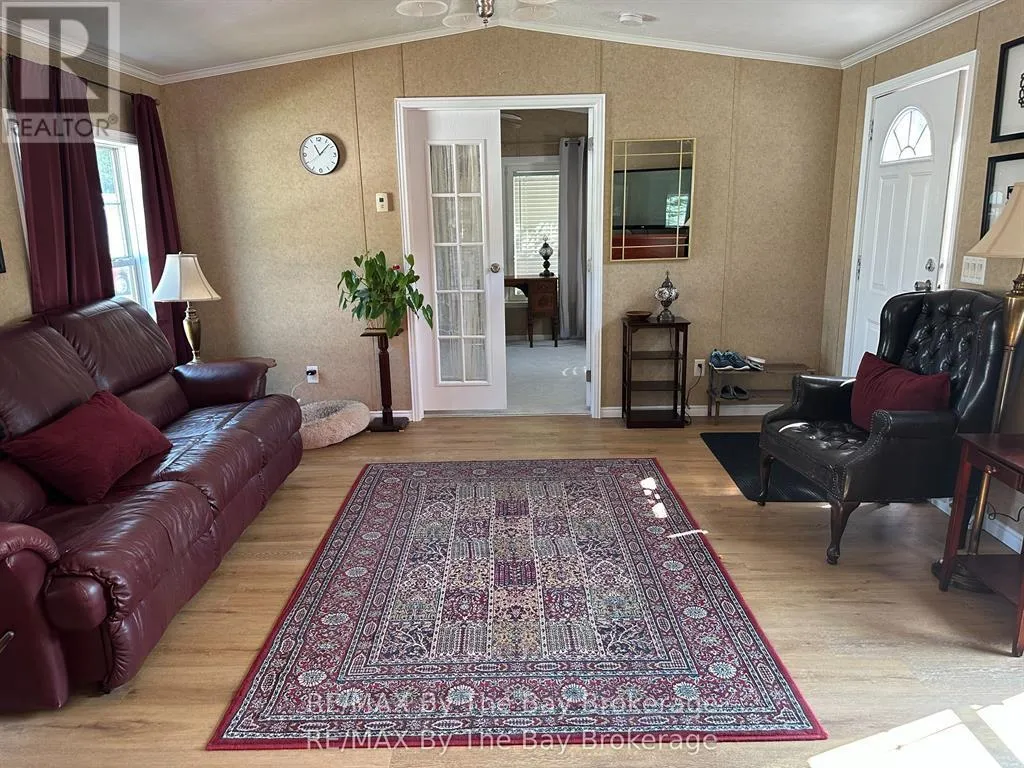 Cross Streets: River Road West / Main Street. ** Directions: River Road West to Georgian Glenn Drive. This beautifully maintained two-bedroom, one-bath modular home on leased land offers the perfect blend of comfort and convenience. Ideally located just a short walk to shopping, restaurants, groceries, the beach, and more, this charming property features an inviting open-concept layout with a bright kitchen and dining area centered around a stylish island, perfect for casual meals or entertaining. Step outside to enjoy a spacious deck, ideal for relaxing or hosting friends in the warm weather. Whether you're looking for a year-round residence or a seasonal retreat, this home is ready to welcome you. (id:27476)