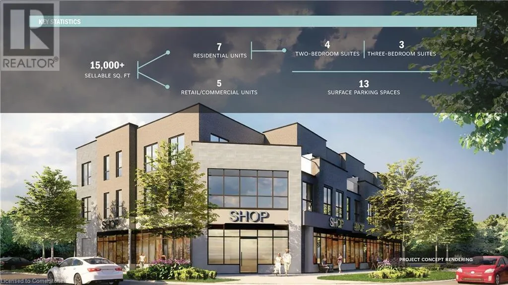 DUNDAS TO MALLARD Discover the epitome of suburban sophistication at 39 Mallard Trail, this unmatched opportunity is presented to you in a sought after growing neighborhood of Waterdown. This building permit ready development is waiting to be built for you. Featuring over 15,000 ft.² that includes 7 spacious beautifully designed residential units along with 5 commercial units complete with 13 surface parking spaces. 39 Mallard Trail is located in the heart of Waterdown South secondary plan, which is the largest residential development project currently underway in Canada. Directly across the street is Trend Living (774 units) which is expected to be completed by the end of 2024, as well as a future condo development that will consist of 600 suites, ensuring high traffic for commercial use. Permitted uses include but not limited to, clinical (dental physicians, etc. ), place of recreation, restaurant, convenience or fast food, finance institutions and more. Each 2 to 3 bedroom residential unit boasts over 1300 ft.² with two floors of living space. Convenience is key - within an eight minute drive time you will find Walmart, Aldershot GO station, Highway 403 and the QEW, with Hamilton airport only 24 minutes away. In less than 15 minutes, you can be in downtown Hamilton or Burlington. Designed by award winning developer, New Horizon Development Group, this project sets a new standard for suburban living with its dynamic architecture. (id:27476)