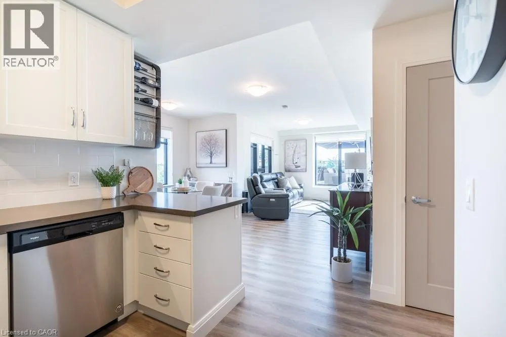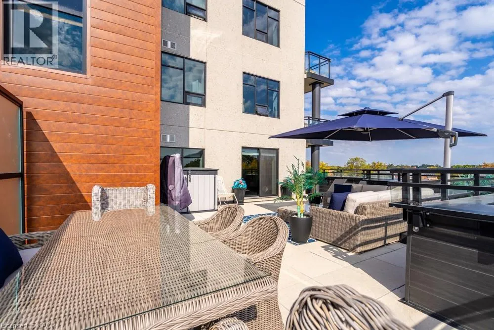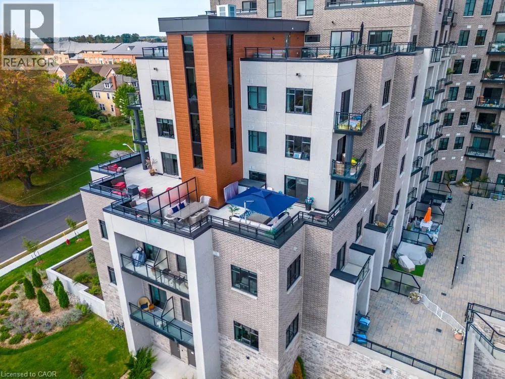 Dundas St E to Hamilton St S Dreaming of condo living without giving up your outdoor space? This rarely offered corner unit delivers the best of both worlds with a massive 600 sq ft private terrace perfect for entertaining, relaxing and soaking up incredible lake AND city views. Inside, youâll find a 2-bed, 2-bath gem loaded with upgrades: a chefâs kitchen with beautiful quartz counters, clean white subway tile backsplash, soft-close custom cabinetry, undercabinet lighting and a breakfast bar. The bedrooms are spacious, and the primary suite has its own four-piece ensuite. Enjoy in-suite laundry for your convenience. Thatâs not all, this building has stunning amenities including a lavish party room, a dog wash station, a gym and rooftop patio. And the location? Unbeatable. Steps to restaurants, groceries, trails and highway access, all in the heart of Waterdown. This one has it all. Donât be TOO LATE*! *REG TM. RSA. (id:27476)