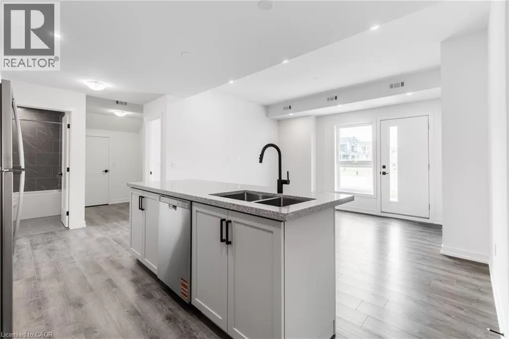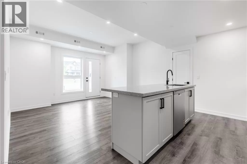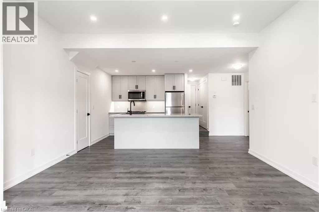 Dundas St E. to Burke St. Brand new stacked townhome by award-winning developer New Horizon Development Group! This 1 bedroom plus den, 1-bath home offers 795 sq ft of modern living, with over $25,000 in upgrades, and is one of the few units of this kind built in the entire development. Features include quartz countertops throughout, pot lights, sleek vinyl plank flooring, stainless steel appliances, and modern high-end plumbing fixtures and hardware. Includes a private 1-car garage. Just minutes from vibrant downtown Waterdown, youâll have boutique shopping, diverse dining, and scenic hiking trails at your doorstep. With easy access to major highways and transit, including Aldershot GO Station, youâre never far from Burlington, Hamilton, or Toronto. (id:27476)