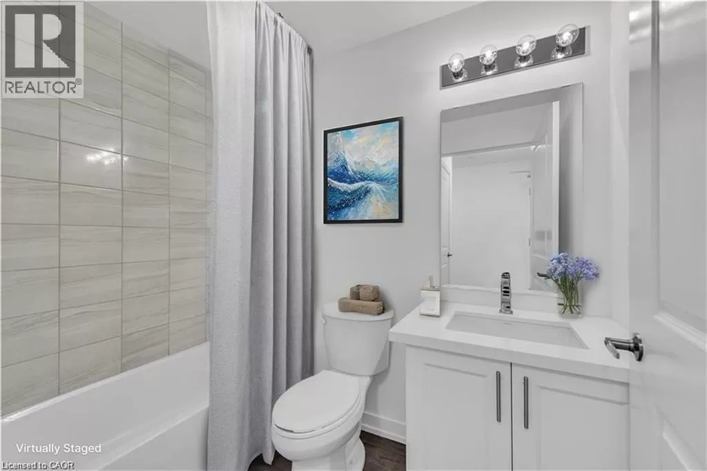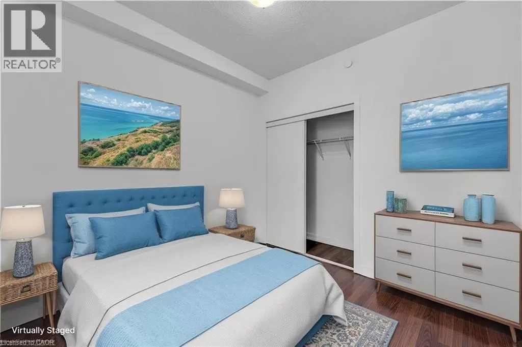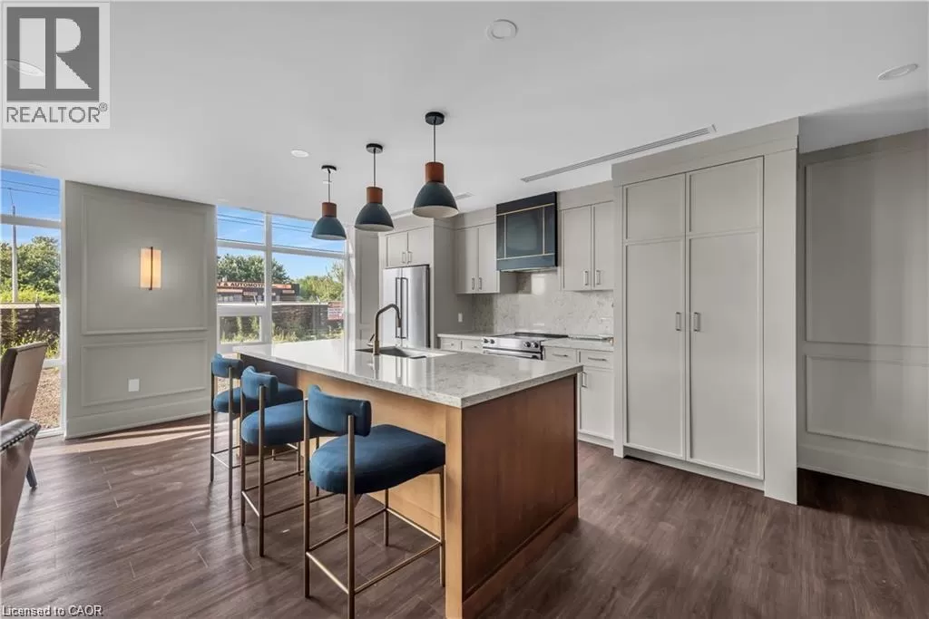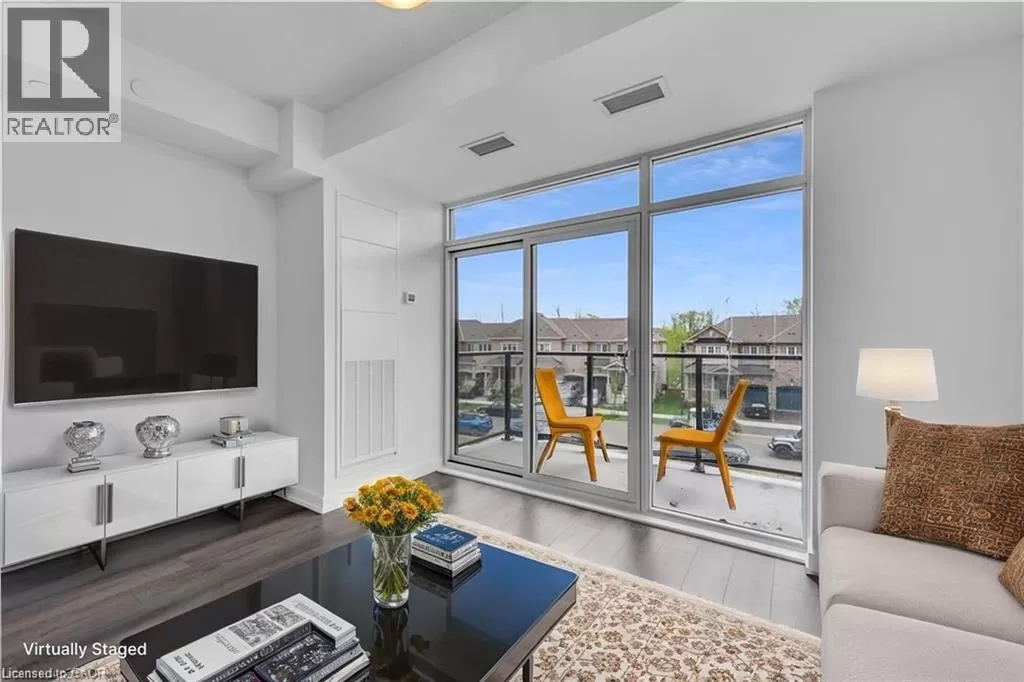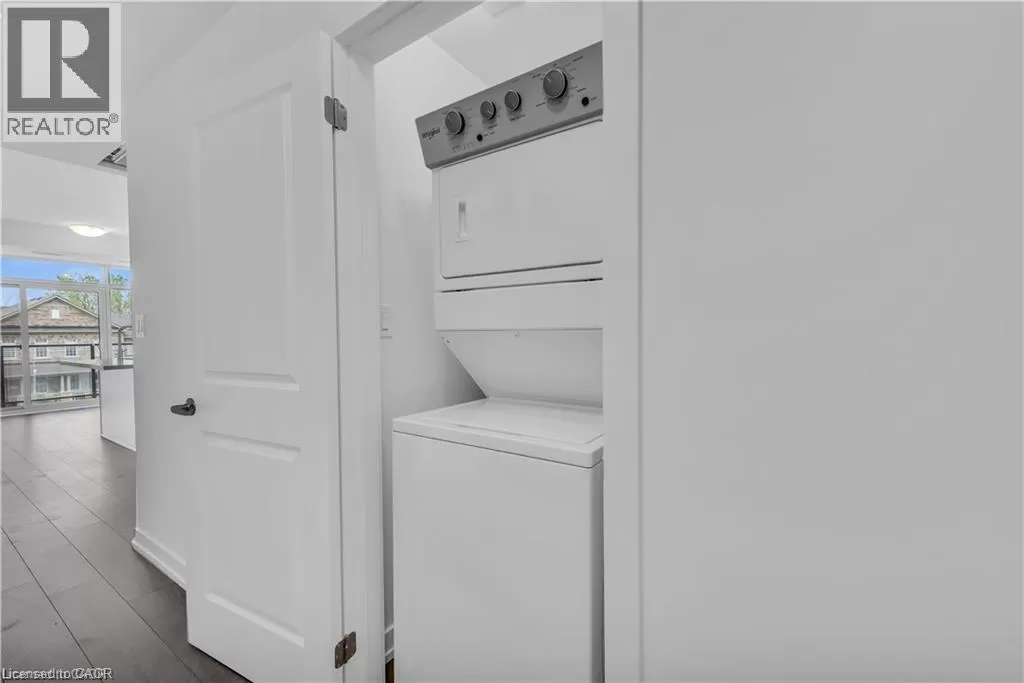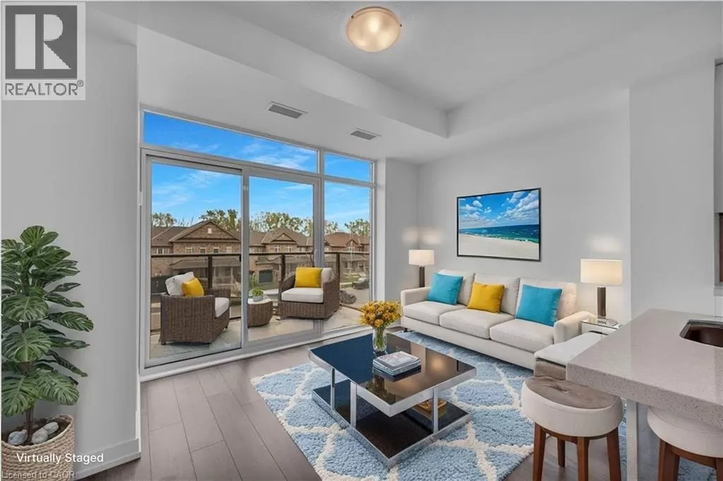 Follow Dundas St E to Mallard Trail Welcome to this stunning 2nd-floor unit in the highly sought-after Trend 3 community! Step into a bright and inviting 1-bedroom condo. The open concept layout seamlessly connects the modern kitchen and living area, featuring brand-new stainless steel appliances, a stylish breakfast bar with quartz counter tops, and direct access to your private balcony. A well-appointed 4-piece bathroom and the convenience of in-suite laundry complete this thoughtfully designed space. Enjoy a lifestyle of comfort and convenience with exceptional building amenities, including vibrant party rooms, a state of the art fitness center, scenic roof top patios, and secure bike storage. Located in the heart of Waterdown, this home offers effortless access to top-rated dining, shopping, schools, and picturesque parks. Included with the unit is 1 owned surface parking space and an owned locker for extra storage. Experience contemporary living at its finest in this exceptional condo! (id:27476)