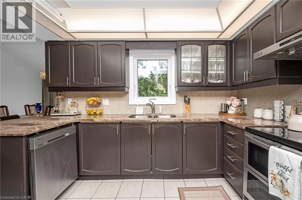 Off Parkside Donât waitâthis is the dream family home youâve been searching for! Offering approximately 2,460 sq. ft. of beautifully finished living space, this stunning 4+2 bedroom residence is nestled in one of Waterdownâs most sought-after neighbourhoods. The main floor features a rare main-level den, formal living and dining rooms with gleaming hardwood inlay floors, and a spacious family room with a soaring vaulted ceiling and cozy wood-burning fireplace. The large eat-in kitchen, updated with granite counters (2011), showcases a picturesque window and elegant French doors that open to your private backyard oasisâcomplete with a relaxing hot tub and professionally landscaped, flower-filled gardensâperfect for entertaining or unwinding in style. Upstairs, the generous primary retreat offers walk-in closets and a spa-like ensuite, providing a peaceful escape at the end of the day. The professionally finished lower level is currently integrated as part of the main home, providing extra living space for family enjoyment. However, it was previously used as a separate, fully functioning basement unit and can easily be converted back to that use if desired. It features high ceilings, a private entrance from the garage side wall, and complete living amenities, offering excellent potential as an in-law suite or income-generating unit to help offset mortgage costs. Recent updates include roof (2010) and furnace/AC (2012). This is truly a turnkey home with no disappointmentsâa perfect blend of space, style, and versatility. Donât miss outâschedule your private viewing today (id:27476)