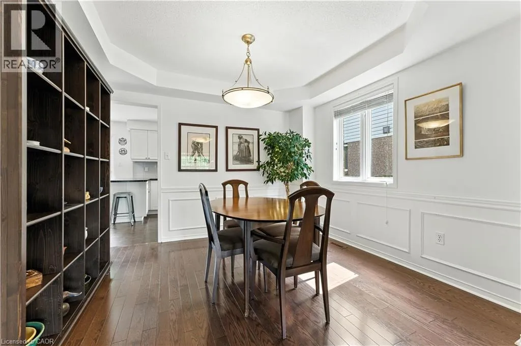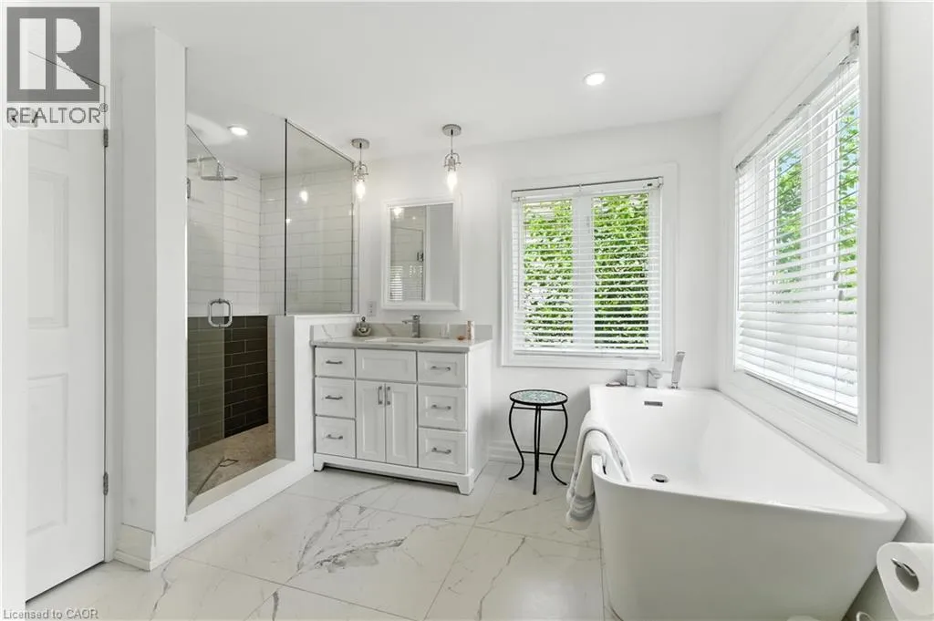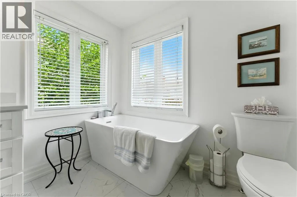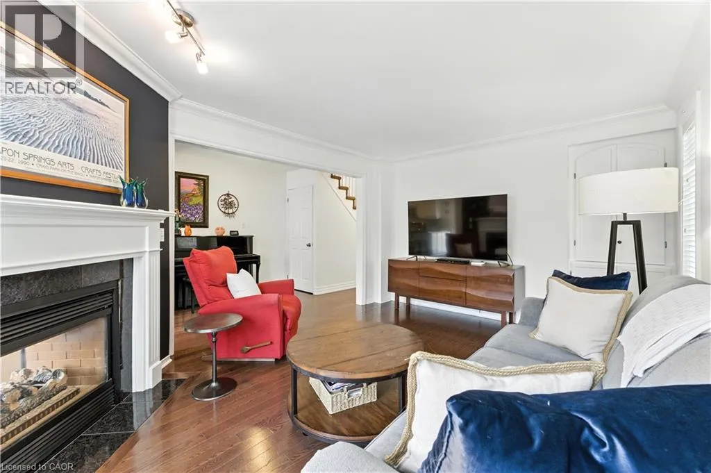 Hollybush Dr to Strathroy Cres Welcome to this beautifully appointed 4-bedroom executive home, perfectly positioned on a quiet, family-friendly crescent in one of the areaâs most sought-after locations! From the eye-catching curb appeal to the meticulously landscaped grounds, this property impresses at every turn. Just steps away, youâll find top-rated schools (including French immersion), the YMCA, scenic parks, Rockcliffe walking trails, Clappison Woods Nature Preserve, Aldershot GO Station, and more! Offering the ideal balance of peaceful living and everyday convenience. Inside, the main floor greets you with a formal living room which flows into the dining area, perfect for hosting family gatherings. The sun-filled kitchen features an eat-in breakfast area with sliding doors opening to the deck, ideal for morning coffee or summer entertaining. A spacious family room with a double-sided gas fireplace creates a cozy atmosphere, while a 2-piece bath and a combined mudroom/laundry with garage access complete this level. Upstairs, the oversized primary suite is a private retreat with abundant natural light, a walk-in closet, and a recently renovated spa-like ensuite featuring a luxurious soaker tub and walk-in shower. Three additional bedrooms and a second full bath provide plenty of space for family or guests. The finished basement offers a massive recreation area, abundance of storage (see floor plans), and a rough-in for a fourth bathroom. Endless potential for your personal touch! Outdoors is a true highlight with lush landscaping and manicured gardens creating a serene setting for relaxation or play. If living in Waterdown is at the top of your list, this is a home you simply canât afford to miss! (id:27476)