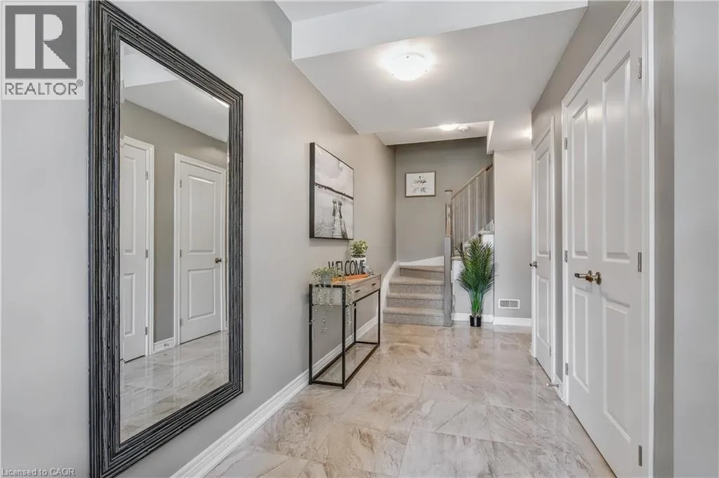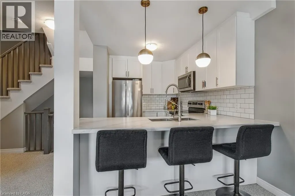 DUNDAS RD- SKINNER Bright & Stylish 2 Bed + Loft Townhouse. Discover your new home in this 3 storey townhouse perfect for families or first-time buyers. This spacious home features two bedroom, 1.5 baths, and a charming loft area- ideal as a kids' playroom, reading rock, or cozy home office. The main floor is an open-concept living and dining room, complemented by a modern kitchen with stainless steel appliances. Upgrades: Quartz counter tops in kitchen and bathrooms. Large tile flooring in foyer, kitchen and bathroom. Ceramic backsplash. Custom fit blinds in living and dining rooms and bedrooms. Excellent location: Walking distance to schools and parks And for nature lovers, minutes from the Bruce Trail. Come and check out this East Waterdown gem! (id:27476)
