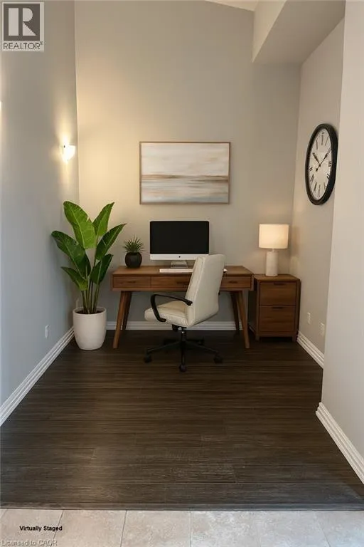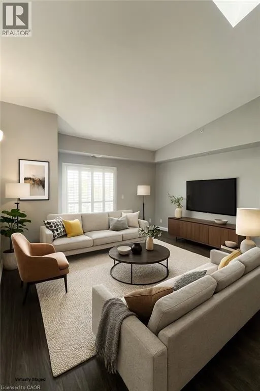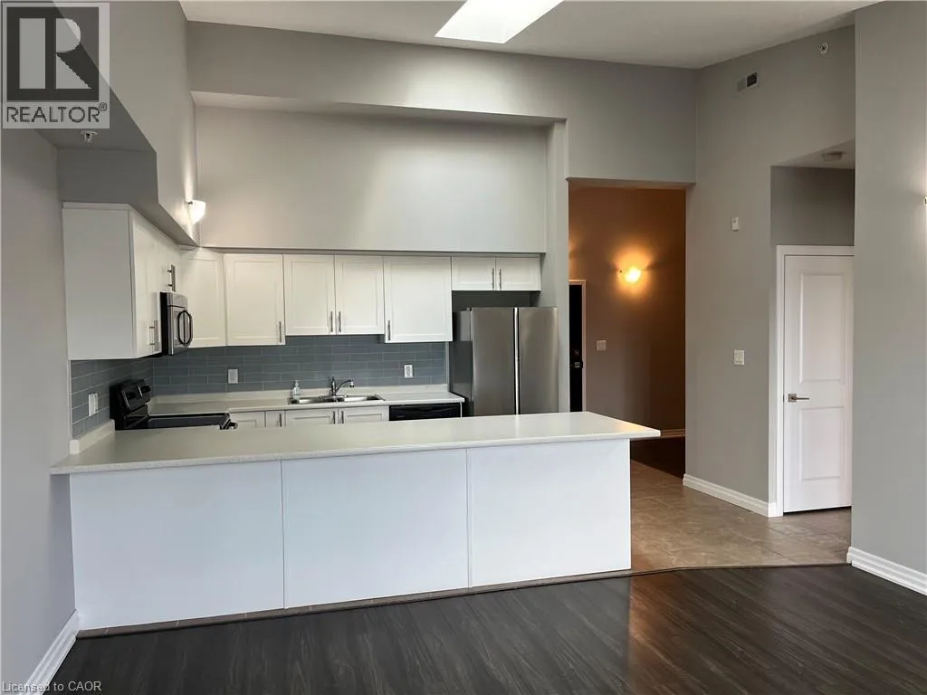 Hwy 5 and Hamilton St S. Gorgeous 1BR + den condo in a safe and quiet building within Waterdown core. One of the few low-level condo complexes in Waterdown. The building is very clean and well cared for. This 835sf bright and airy unit is on the top floor (3rd) and has high vaulted ceiling w/skylight making it bright and spacious. A chefs kitchen w/ an abundance of counter space to prepare and entertain. SS appliances, with new fridge (25). 1.5 baths and in-suite laundry. Patio doors lead off both the living room and bedroom onto a double length balcony providing southern exposure. Secured underground parking (1 spot #20) and a storage locker. Building wired for Bell Fibe. Best of all, this building provides very low condo fees compared to others. Walk to all amenities that downtown Waterdown has to offer. Memorial Park across the road with walking trail, play area and winter skating. Easy access to highways and GO station in Aldershot. Quick or flexible close date available. RSA. Move-in ready! (id:27476)