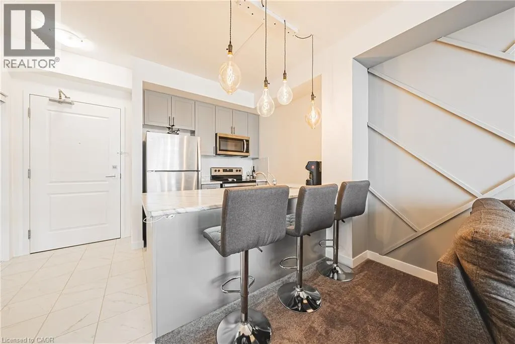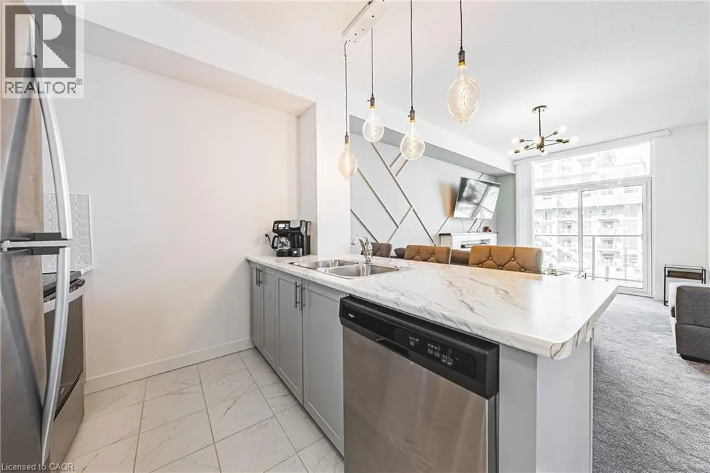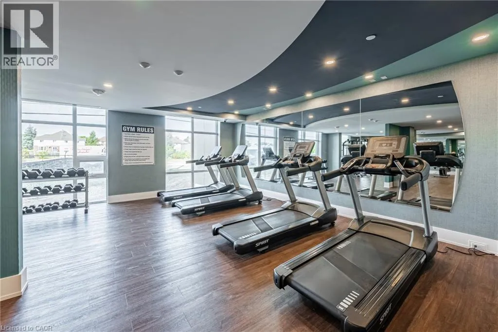 Dundas St E & Riverwalk Drive Welcome to the new Trend Living in beautiful Waterdown, the perfect blend of modern living, small town vibe and ideal location. Nestled between Burlington & Hamilton, close to 3 hwys, the GO Station, it is perfect for anyone that needs to commute for work. Built by award-winning builder, New Horizon Development Group, this state-of-the-art condo has an iconic look, amazing amenities such as the gym, party room and a breathtaking rooftop patio that you can enjoy with friends and family. Surrounded by beautiful parks such as Websterâs Falls, golf courses, amazing schools, shopping, restaurants, this is truly a retreat from the busy city life. Enjoy maintenance free living, great for first-time home buyers, investors and downsizers. The unit has been upgraded top to bottom, with sleek finishes, impressive wall designs, beautiful TV & fireplace mount, and top of the line fixtures. One of the most desired models in the building, and it comes with 1 locker and 2 owned parking spots! Do a 3D tour on the more media button or book a viewing today and you will fall in love! (id:27476)