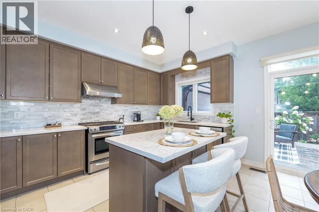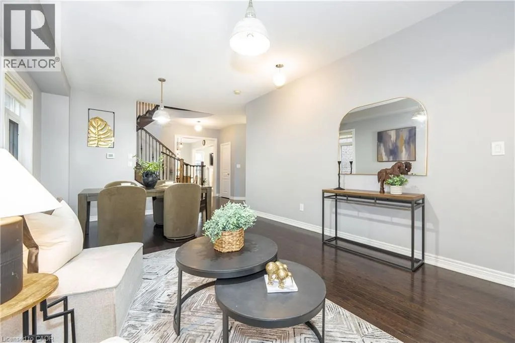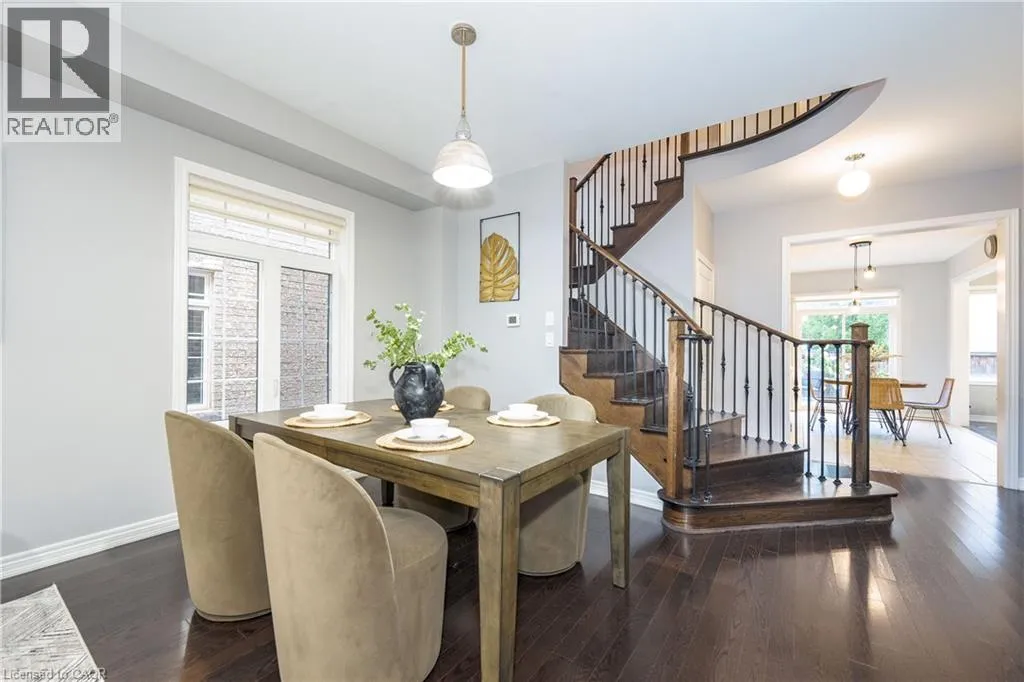 South of Dundas/ West of Burke Stunning 4-bedroom, 4-bathroom 2,575 sq. ft. home in highly sought-after East Waterdown. Designed with modern living in mind, this residence boasts a bright open-concept layout filled with natural light, soaring 9-foot ceilings, and elegant oak hardwood floors and tiles throughout, a completely carpet-free home. Main foyer opens into the huge living/dining area. Spacious mud-room with custom built-in closet and access to garage, me large eat in kichen reatures uparaded cadineury ana premium stainiess steel apprances peried lor dou everyady medis ani entertaining. Upstairs, you'll find spacious 4 bedrooms and three bathrooms and three baths including two with their own ensuites, including a luxurious 5-piece retreat and a stylish 4-piece washroom. The large backyard offers plenty of space for family gatherings, gardening, or simply relaxing outdoors. Ideally located close to top-rated schools, scenic hiking trails, and beautiful parks, this home blends comfort, style, and convenience in one exceptional package. The following updates were completed in 2019: Backyard Deck, Front Yard, Kitchen, Bathrooms, Hardwood on Second Floor, Second Floor Built-In Closets, Built-In Shelves on First floor and in-Basement Lighting. (id:27476)