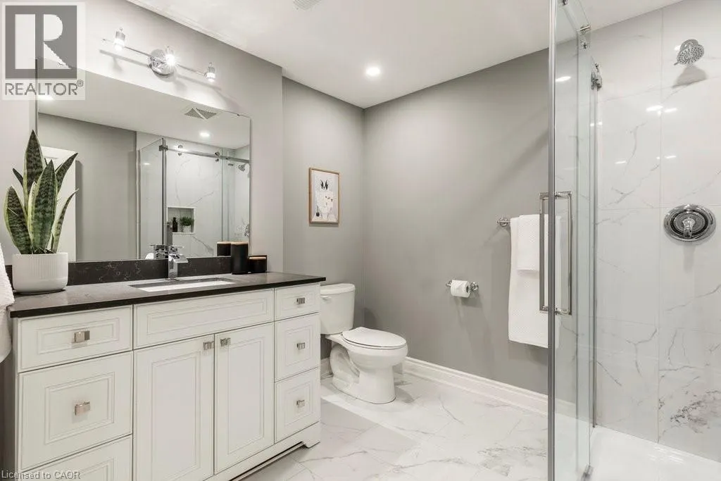 North on Mosaic from Parkside, east on Painter Terrace Discover this exceptional family home in prime Waterdown West! From the moment you enter the large open foyer, you are greeted by an abundance of natural light and an effortless sense of space. The open-concept main level features expansive living and dining areas, ideal for both entertaining and relaxed family living. A formal dining room provides a refined setting for gatherings, while the thoughtfully designed kitchen offers generous storage, ample prep space, and seamless flow throughout the home. A stylish powder room and convenient walk-in pantry complete this level. Upstairs, four spacious bedrooms and a dedicated home office provide comfort and versatility for today's lifestyle. The serene primary suite impresses with a large walk-in closet and a luxurious five-piece ensuite, creating a private retreat at the end of the day. A conveniently located laundry room and 5-piece main bathroom with recently updated double vanity and stylish wallpaper and backsplash add to the home's thoughtful design.The fully finished lower level extends the living space with a welcoming family room with electric fireplace and tasteful built in glass door cabinets. A large fifth bedroom and an updated 3 piece bath with glass shower are perfect for guests or multi-generational living. This level combines comfort, practicality and coveted flex space for your family. A double attached garage and low maintenance yard complete this remarkable property, situated in a highly desirable neighbourhood known for its sense of community, excellent schools, and nearby amenities. (id:27476)