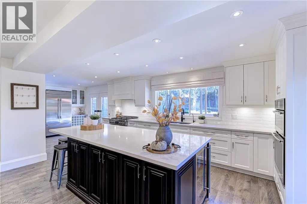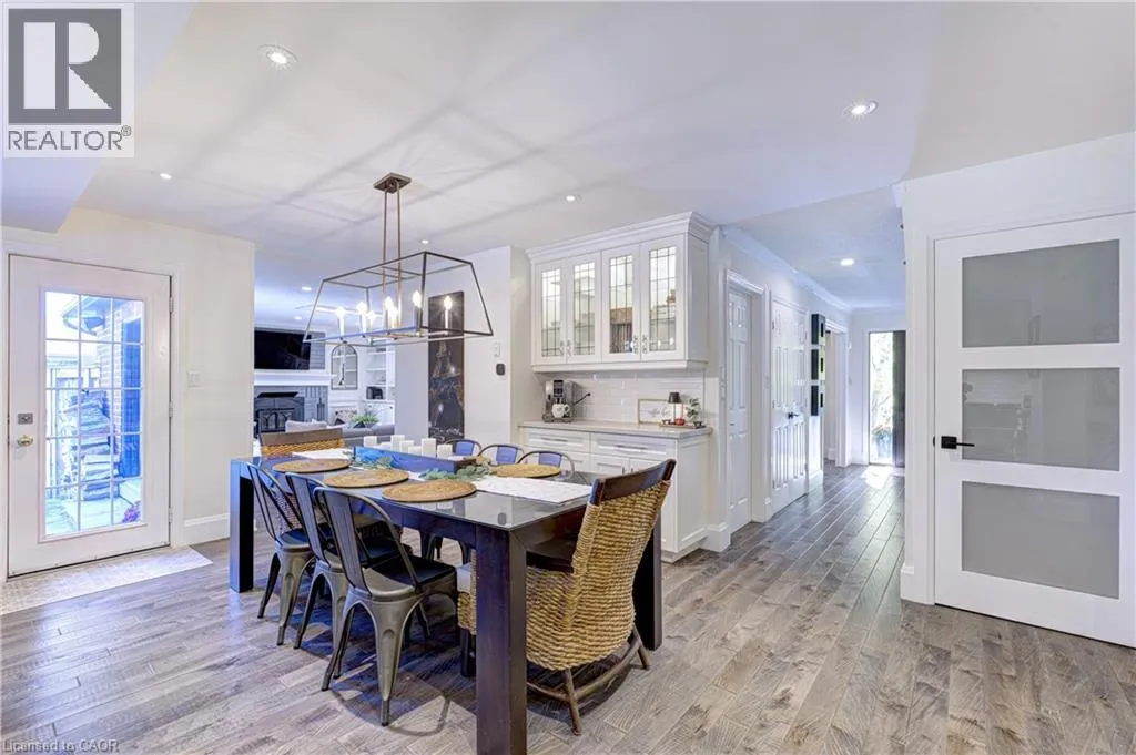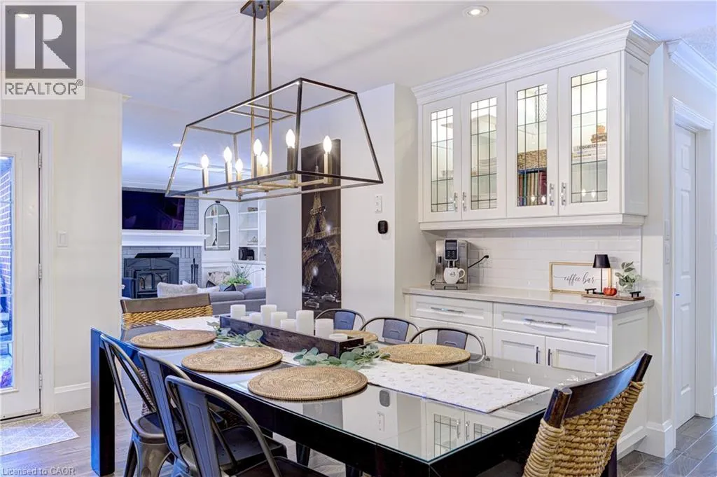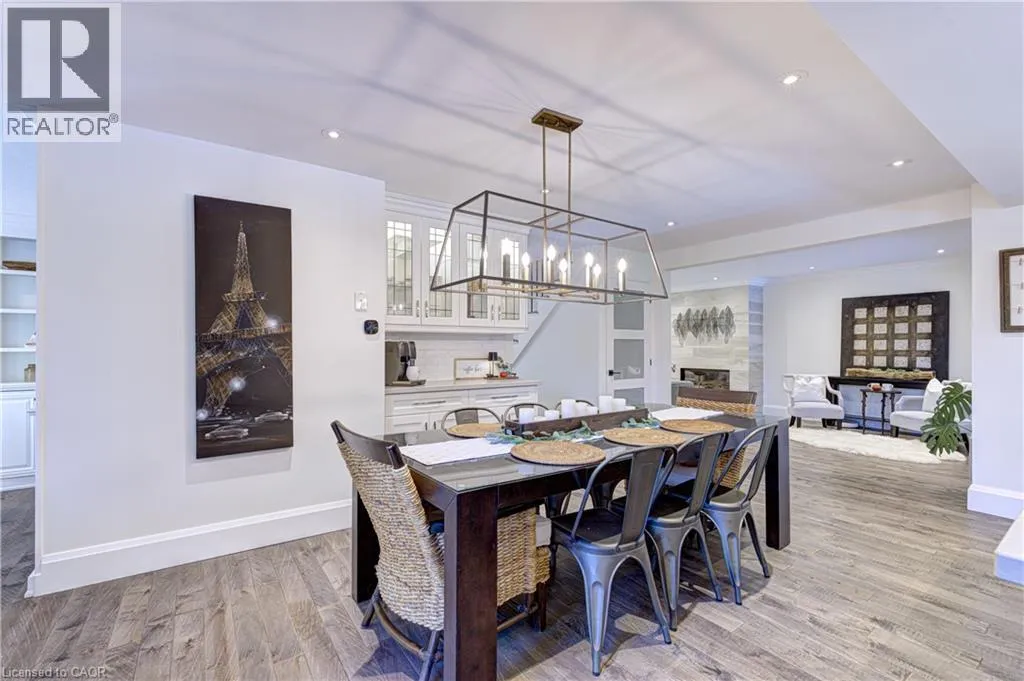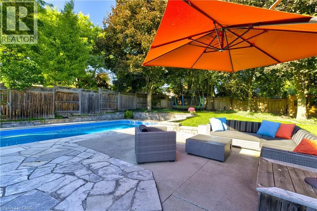 Dundas St E & Howard Blvd Experience refined living at 6 Mays Crescent an exceptional home tucked away on one of Waterdownâs most prestigious & sought-after crescents.?Steps from charming downtown boutiques, cafés, restaurants, lush parks, & trails, offering the perfect balance of exclusivity & convenience.Set on a rare 59 Ã150 ft professionally landscaped lot, the grounds are nothing short of spectacular. Bask in your own private oasis featuring a saltwater pool with safety cover, new pool pump and salt generator in last two years, a pergola-covered al fresco dining area, natural gas BBQ hookup, expansive green space w/ a charming âtree house,â and a smart Rainbird irrigation system with Rachio controller â all designed for effortless luxury living. Inside, the sun-filled, open layout is anchored by a chefâs dream kitchen, w/ premium stainless-steel appliances including a gas stove & B/I ovens, expansive prep surfaces & dual walkouts to the resort-style backyard. The main floor continues w/ a dedicated private office, an elegant dining area & inviting family rm complete w/ custom built-ins, a wood-burning fireplace & 3rd walkout for seamless indoor-outdoor living. A serene front living rm w/ fireplace & pool views adds comfort & elegance.The 2nd level offers 3 spacious bedrooms & 2 full bathrooms. The primary suite provides a private a sun filled retreat, featuring its own ensuite.The newly completed lower level '24 elevates the home even further. A Dolby Atmos home theatre, hardwired indoor/outdoor speaker system, custom PAX storage, fitness space, 2-piece bath, & convenient side entrance create the perfect blend of luxury & practicality.This home has been meticulously updated, including new windows '24, a spray-foamed garage ceiling, freshly painted exterior siding & soffits & a complete chimney rebuild w/ metal insert.From elegant gatherings to sun filled afternoons by the pool, 6 Mays Crescent offers a level of lifestyle & distinction that is truly unparalleled. (id:27476)