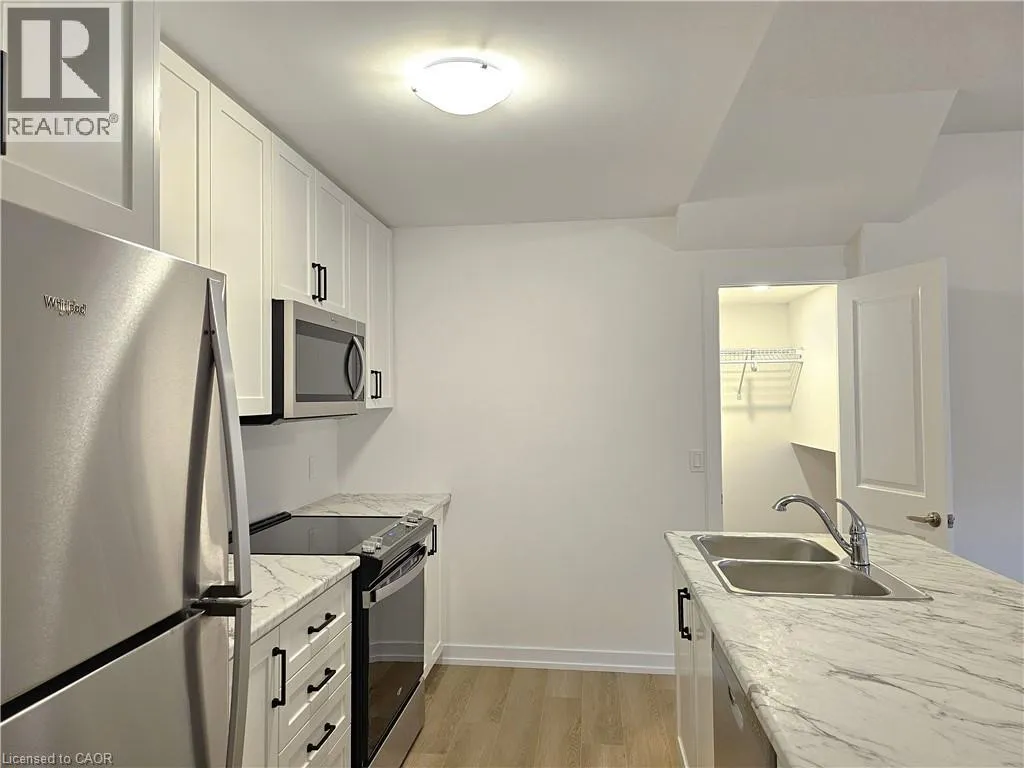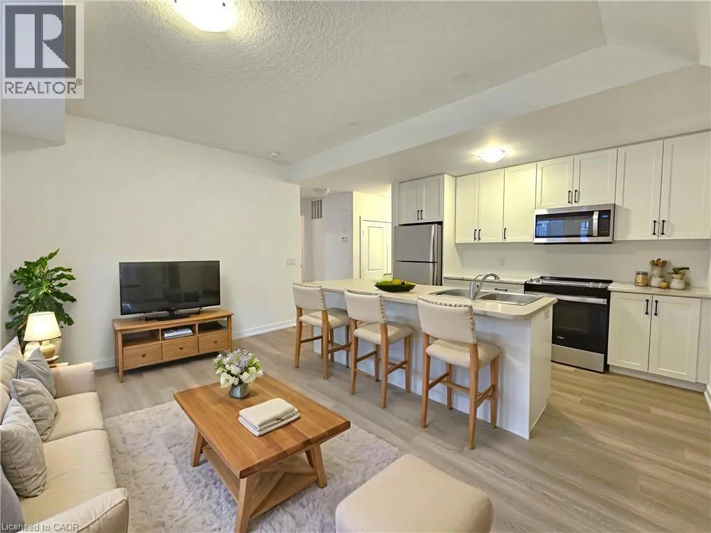 Burke St. to Kenesky Dr. Brand new and never lived in! This modern one-bedroom, one-bathroom stacked townhouse offers stylish living in the heart of Waterdown. This unit features an open-concept living area, in-suite laundry, and an attached one-car garage with inside entry, a rare and convenient feature. The kitchen boasts white cabinetry, stainless steel appliances, a full pantry, and a functional layout perfect for everyday cooking or entertaining. Thoughtfully designed, this home was built with storage, making it stand out. Youâre steps from everyday conveniences and surrounded by the best of Waterdown living. Enjoy quick access to parks, schools, grocery stores, restaurants, shops, and walking trails. Commuters will appreciate being close to Highway 403, the QEW, and the Aldershot GO Station, offering easy travel to Burlington, Hamilton, and the GTA. Nearby amenities include Fortinos, Walmart, restaurants along Dundas Street, Waterdown Memorial Park, and scenic trails at Smokey Hollow Falls. Perfect for anyone seeking modern comfort in a growing, vibrant community. Donât miss this exceptional opportunity! (id:27476)