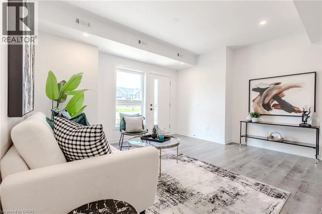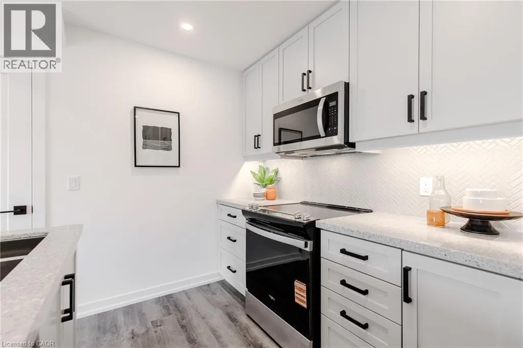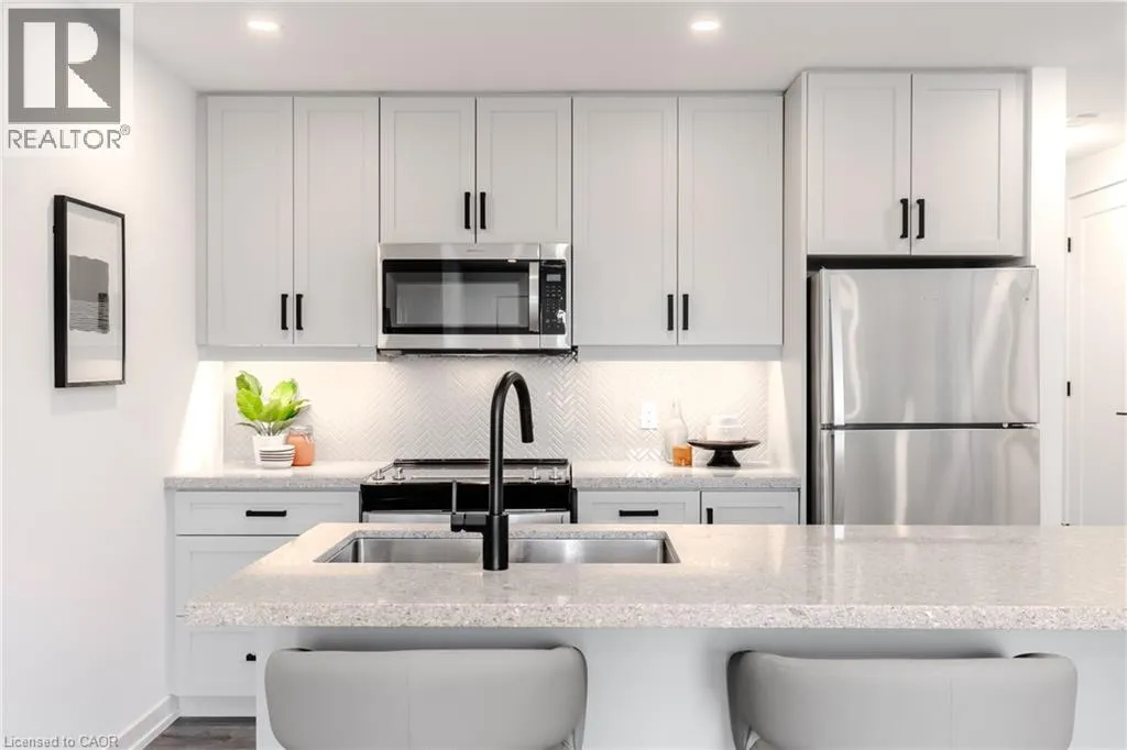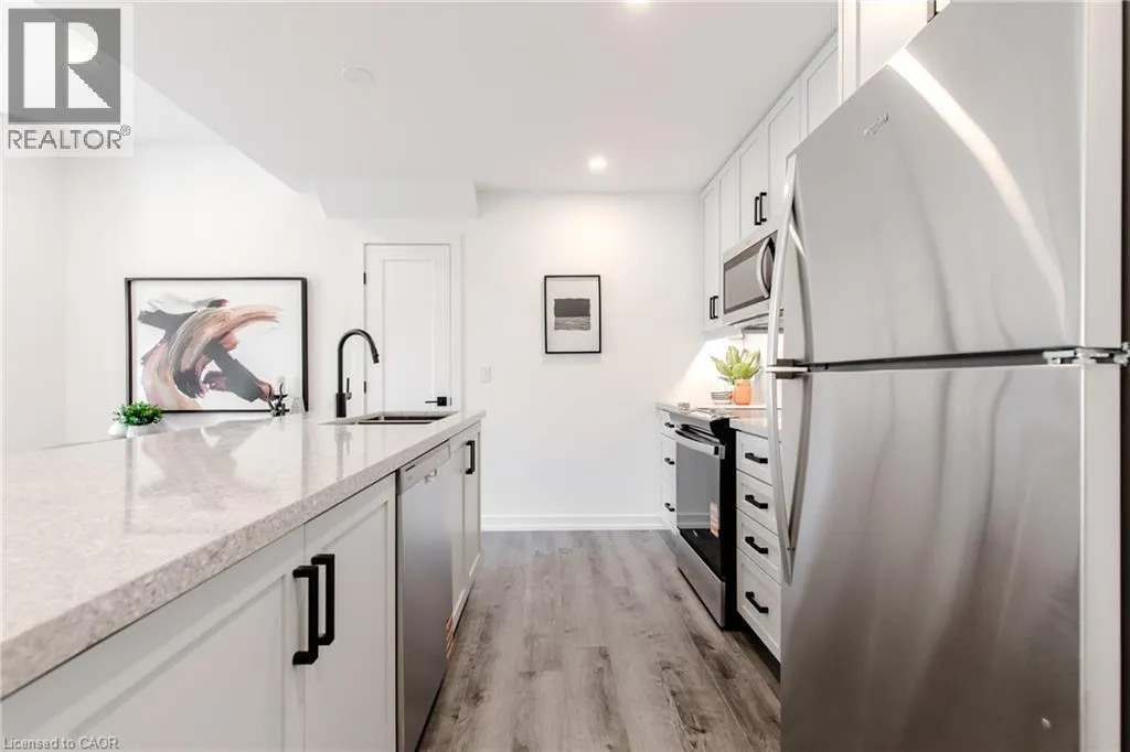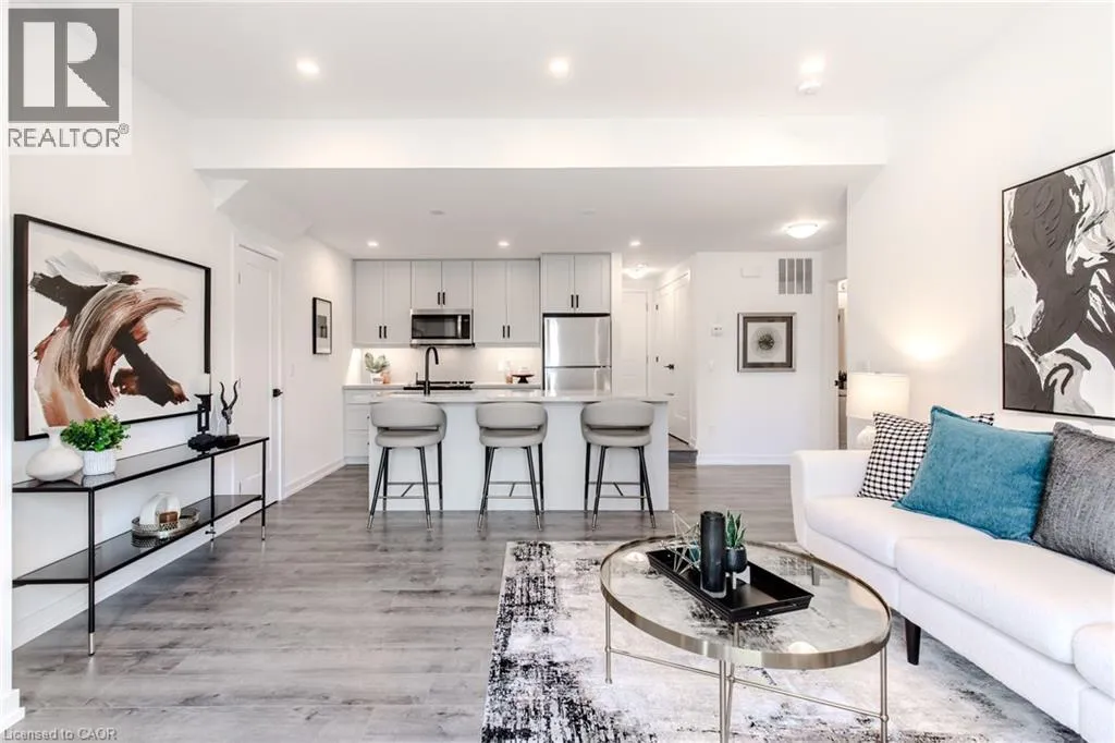 Dundas St E. to Burke St. Brand new stacked townhome by award-winning developer New Horizon Development Group! This 1 bedroom plus den, 1-bath home offers 795 sq ft of modern living, with over $25,000 in upgrades, and is one of the few units of this kind built in the entire development. Features include quartz countertops throughout, pot lights, sleek vinyl plank flooring, stainless steel appliances, and modern high-end plumbing fixtures and hardware. Includes a private 1-car garage. Just minutes from vibrant downtown Waterdown, youâll have boutique shopping, diverse dining, and scenic hiking trails at your doorstep. With easy access to major highways and transit, including Aldershot GO Station, youâre never far from Burlington, Hamilton, or Toronto. (id:27476)