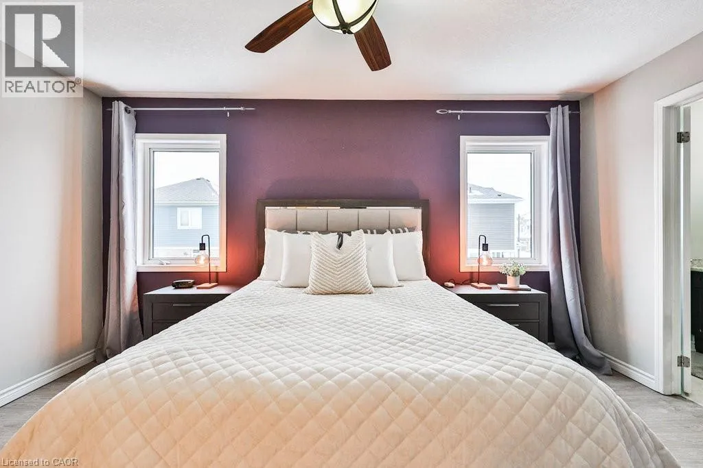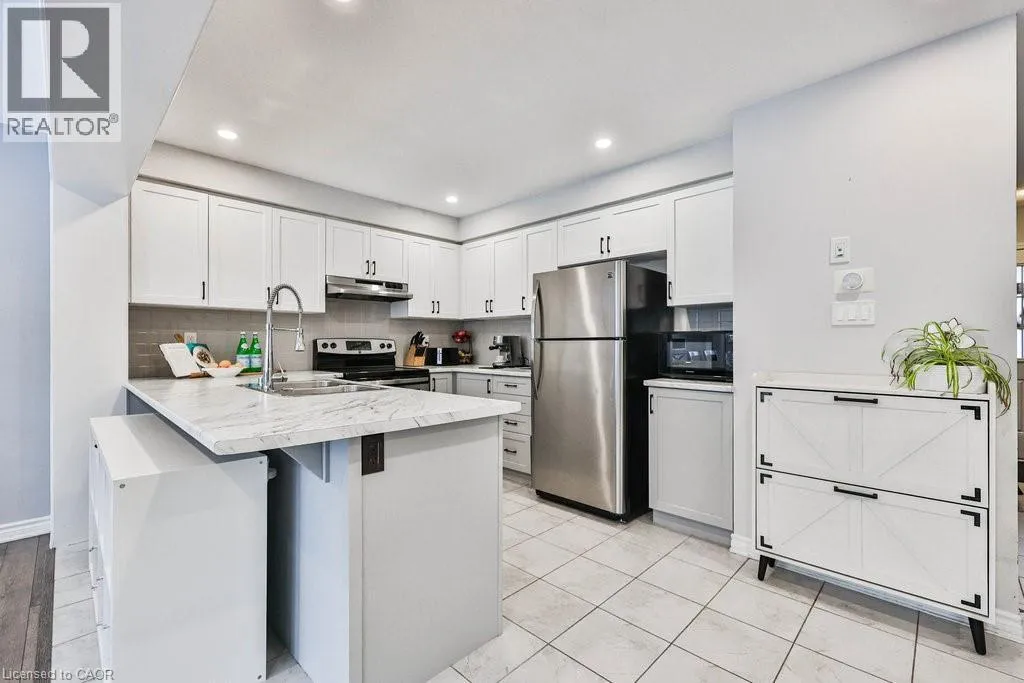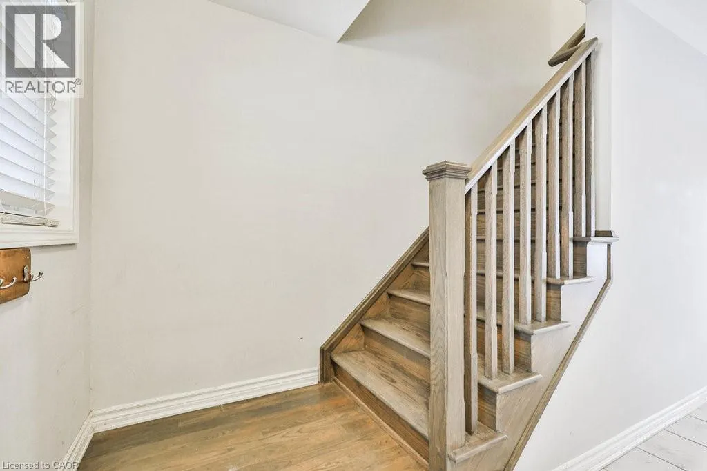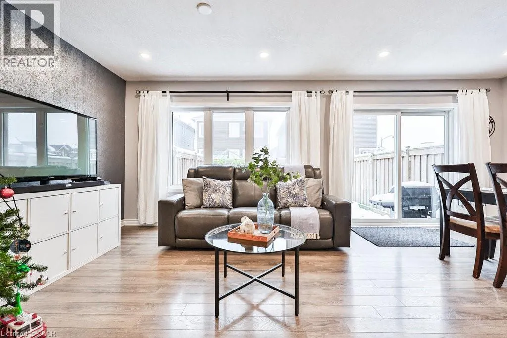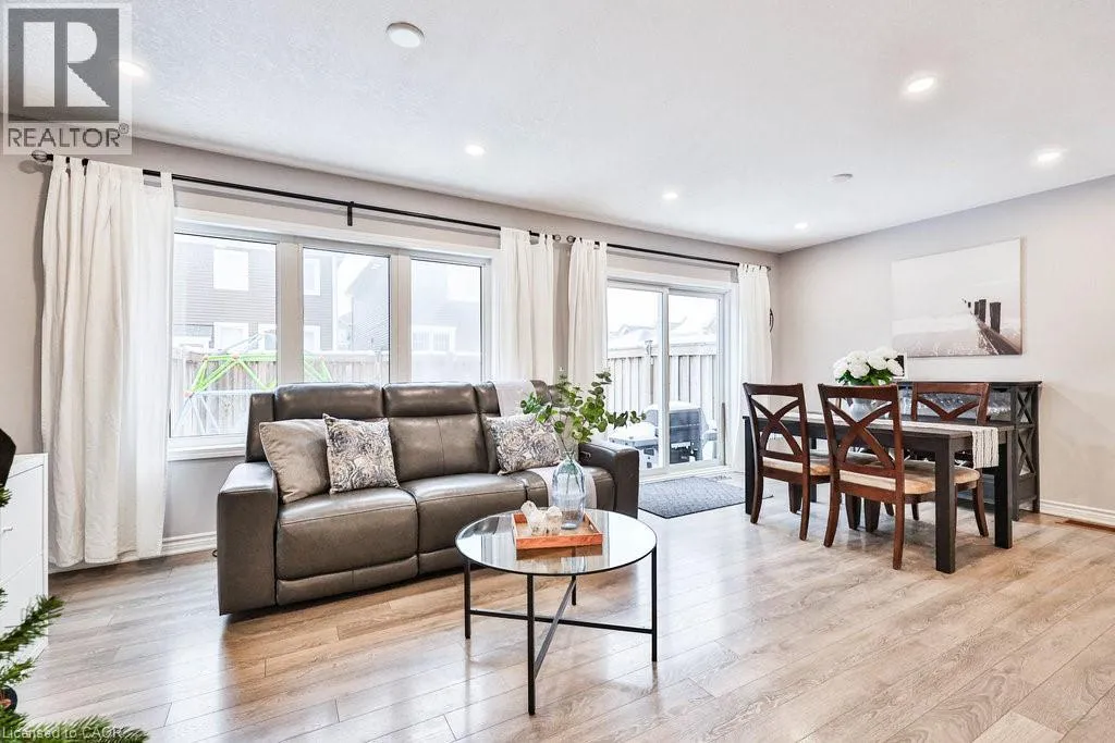 Springcreek & Parkside Drive Welcome to an ideal first step into homeownershipâa lovely freehold townhome nestled in one of Waterdownâs most sought-after family communities. This warm and welcoming 2-storey residence is perfectly tailored for new families looking for comfort, convenience, and room to grow. Tucked onto a quiet street with minimal through traffic, it offers peace of mind while still being just moments from parks, green space, trails, schools, shopping, and everyday essentials. Commuters will appreciate the easy access between Hamilton and Burlington, making daily routines smoother for the whole family. The inviting front exterior features professional landscaping, a deep covered porch for morning coffees, a 2-car driveway, and an automatic garage. Inside, the main level showcases an open-concept layout designed for connection, whether itâs little ones playing nearby or hosting family and friends. Laminate flooring flows throughout, leading to an eat-in kitchen with custom white cabinetry and a bright walkout to the yard. The family room is filled with natural light, creating a warm backdrop for everyday moments. Upstairs, the floorplan continues to shine for growing families. The spacious primary suite includes both a walk-in closet and an additional closet, plus a private 4-piece ensuite. Two additional bedrooms share a 4-piece main bath, giving kids, guests, or a home office their own dedicated spaces. The lower level includes laundry and the opportunity to customize further as your familyâs needs evolve. Outdoors, the fully fenced yard offers a safe and private place for kids and pets to play, complete with a wooden deck for summer BBQs and mature greeneryâincluding a beautiful hydrangea tree that blooms year after year. This is the perfect starter home in a community where families put down roots. Move in, make memories, and begin your next chapter with confidence. (id:27476)