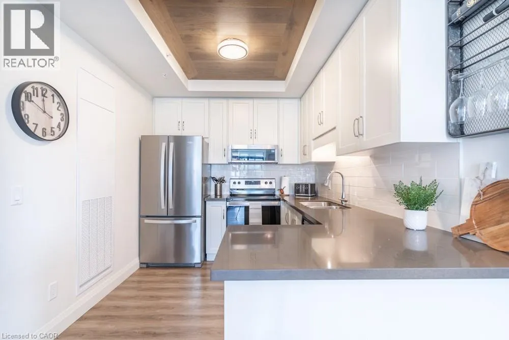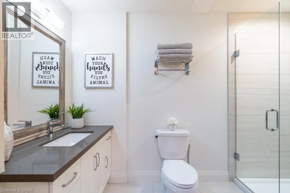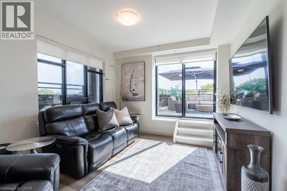 Dundas St E to Hamilton St S Dreaming of condo living without giving up your outdoor space? This rarely offered corner unit delivers the best of both worlds with a massive 600 sq ft private terrace perfect for entertaining, relaxing and soaking up incredible lake AND city views. Inside, youâll find a 2-bed, 2-bath gem loaded with upgrades: a chefâs kitchen with beautiful quartz counters, clean white subway tile backsplash, soft-close custom cabinetry, undercabinet lighting and a breakfast bar. The bedrooms are spacious, and the primary suite has its own four-piece ensuite. Enjoy in-suite laundry for your convenience. Thatâs not all, this building has stunning amenities including a lavish party room, a dog wash station, a gym and rooftop patio. And the location? Unbeatable. Steps to restaurants, groceries, trails and highway access, all in the heart of Waterdown. This one has it all. Donât be TOO LATE*! *REG TM. RSA. (id:27476)
