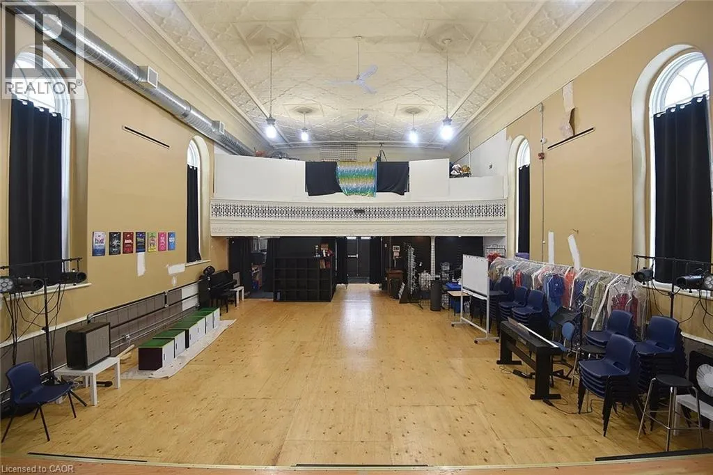 Dundas St E to Mill St N Step into a truly unique commercial opportunity with this 2,541 sq. ft. space located in the front of a beautifully converted stone church circa 1865. Featuring soaring ceilings and a choir loft, this one-of-a-kind property blends historic charm with modern functionality. Zoned C5a, it allows for a wide range of permitted usesâincluding retail, service, commercial, entertainment and moreâmaking it ideal for businesses seeking character, flexibility and visibility. The unit includes 8 dedicated parking spaces, is situated just steps from bustling local businesses and within walking distance to established residential neighborhoods. Enjoy unbeatable connectivity with easy access to Hwy 403, 407, Hwy 5 and GO/public transit options nearby. Heat and water are included in rent, with tenant responsible for hydro. Donât miss this rare chance to set your business apart in one of the areaâs most distinctive commercial spaces. (id:27476)
