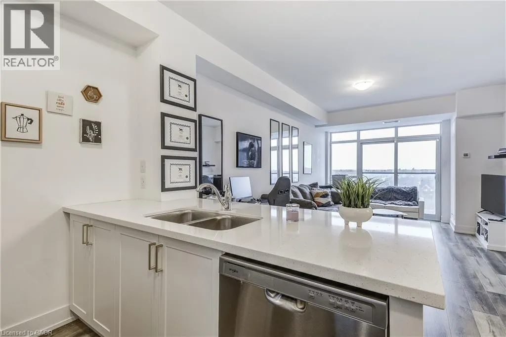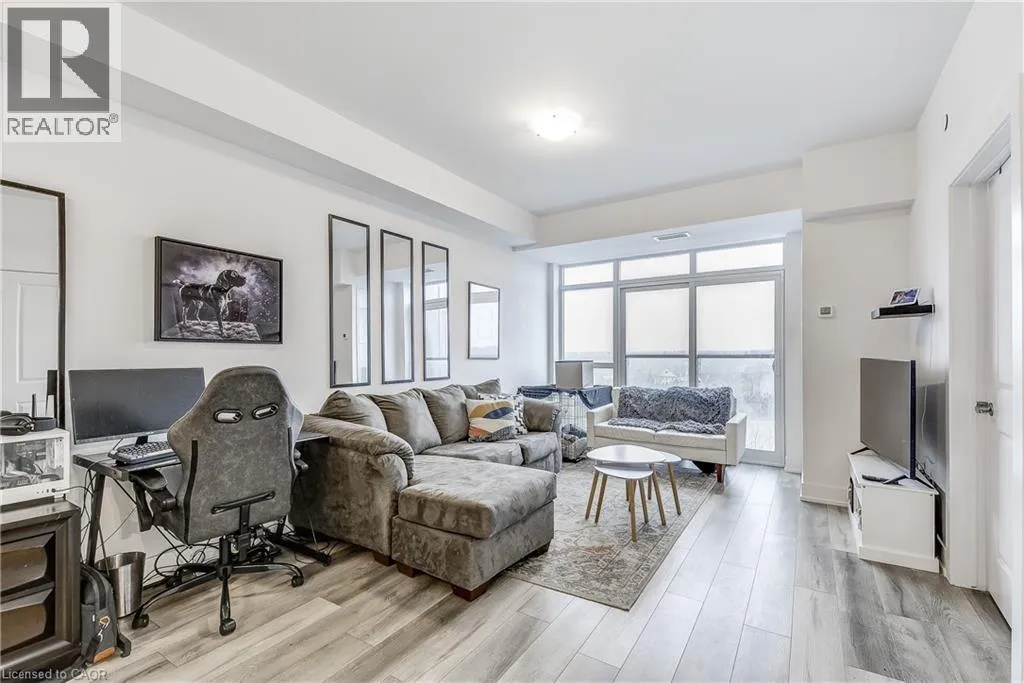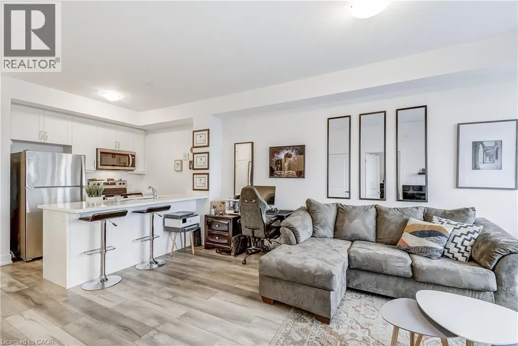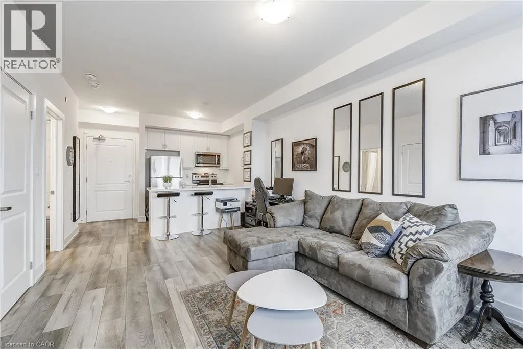 Welcome to the highly sought-after Trend 3 community in the heart of Waterdown! This bright and inviting 1-bedroom condo offers an open-concept layout that seamlessly connects the modern kitchen and living area. The kitchen features brand-new stainless steel appliances, quartz countertops, and a stylish breakfast bar, creating an ideal space for cooking and entertaining. A well-appointed 4-piece bathroom and the convenience of in-suite laundry complete this thoughtfully designed suite. Enjoy a lifestyle of comfort and convenience with exceptional building amenities, including vibrant party rooms, a state-of-the-art fitness centre, scenic rooftop patios, and secure bike storage. Situated just minutes from top-rated dining, shopping, schools, and picturesque parks, this location is perfect for those seeking walkable urban living. One owned surface parking space and an owned locker are included, providing added ease and extra storage. Experience contemporary living at its finest in this exceptional condo! (id:27476)