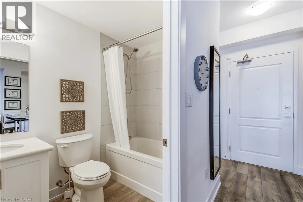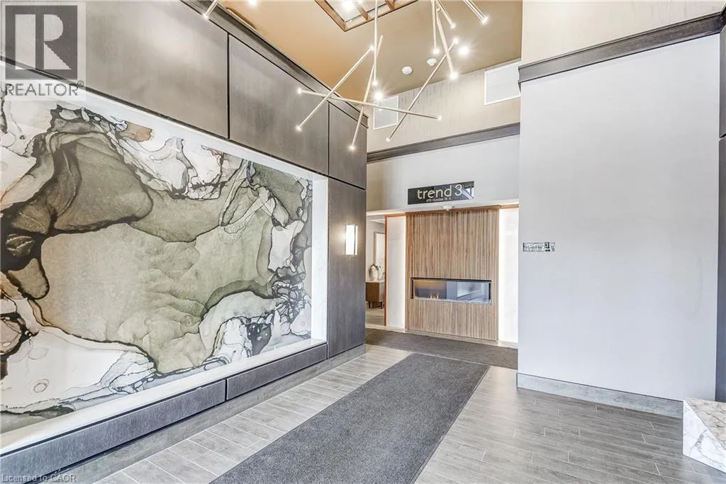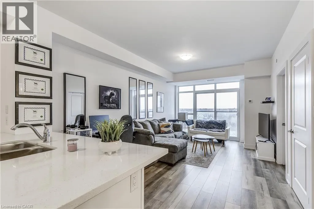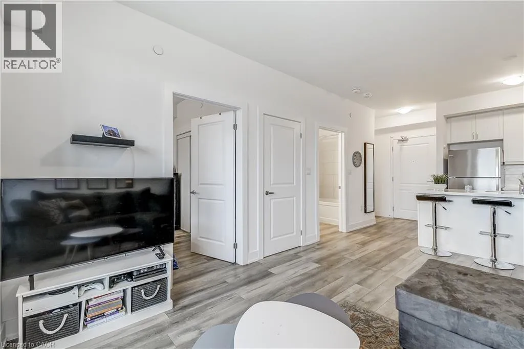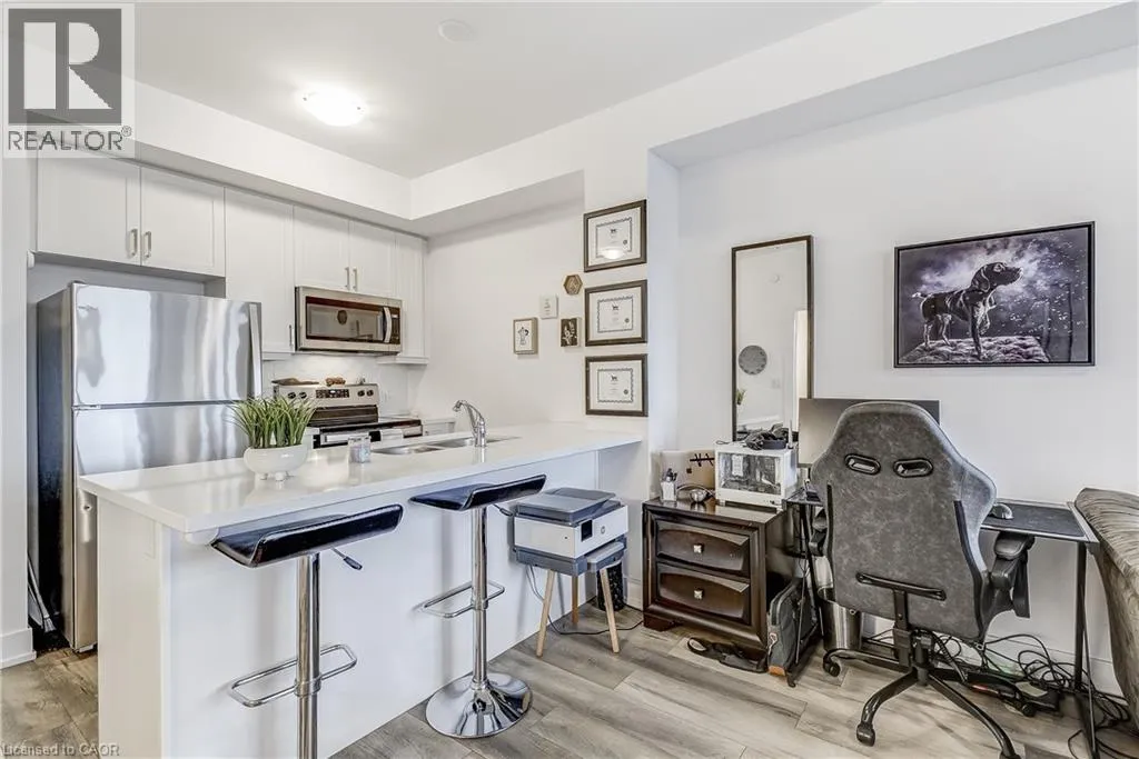 Welcome to the highly sought-after Trend 3 community in the heart of Waterdown! This bright and inviting 1-bedroom condo offers an open-concept layout that seamlessly connects the modern kitchen and living area. The kitchen features brand-new stainless steel appliances, quartz countertops, and a stylish breakfast bar, creating an ideal space for cooking and entertaining. A well-appointed 4-piece bathroom and the convenience of in-suite laundry complete this thoughtfully designed suite. Enjoy a lifestyle of comfort and convenience with exceptional building amenities, including vibrant party rooms, a state-of-the-art fitness centre, scenic rooftop patios, and secure bike storage. Situated just minutes from top-rated dining, shopping, schools, and picturesque parks, this location is perfect for those seeking walkable urban living. One owned surface parking space and an owned locker are included, providing added ease and extra storage. Experience contemporary living at its finest in this exceptional condo! (id:27476)