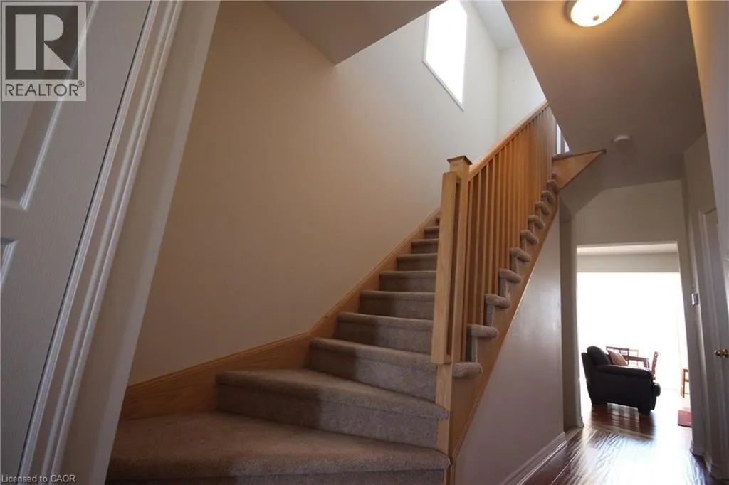 Hamilton St N becomes Centre Rd, Nisbet Blvd Modern 3-bedroom end-unit with lots of windows for plenty of natural light. Great room with hardwood flooring, potlights and gas fireplace. Large eat-in kitchen with loads of cupboards and countertop space. Walkout to deck and fully fenced yard with garden shed. Primary bedroom with walk-in closet and 5-pc ensuite with separate shower. Main floor laundry and single car garage with inside entry. Great walking location close to trails, outdoor skating loop, park, schools, amenities. Easy access to HWYs and transit to Aldershot GO station. Rental application, Equifax credit report, references and letter of employment required. 1st & last. Tenant pays utilities. No smoking. (id:27476)