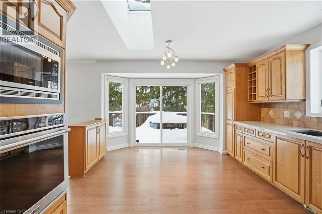 From Dundas Street - turn South on Howard (across from Hello Iris); at the stop sign turn right on Mays - follow to the bottom of the bend. Tucked away on a quiet court in desirable Waterdown, this well-maintained 3+1 bedroom bungalow offers space, privacy, and convenience. Situated on grade with wheelchair accessibility, the home features three full bathrooms and a bright open-concept main floor layout connecting the family room and eat-in kitchen. Walk out to the deck overlooking a fully fenced yard, ideal for relaxing or entertaining. The finished lower level includes a fourth bedroom, full bath, and spacious recreation area providing excellent additional living space for extended family, guests, or a home office setup. Double car garage with inside entry to mudroom/laundry for added functionality. Enjoy a lifestyle surrounded by nature while still being steps to everyday amenities. Walking distance to shopping, restaurants, parks, and scenic trails. Close to excellent local schools and offering easy access to Aldershot GO, Hwy 403/407, and downtown Waterdown. A rare opportunity to lease a bungalow in one of Waterdownâs most established neighbourhoods. Hot tub on property is not included in lease. (id:27476)